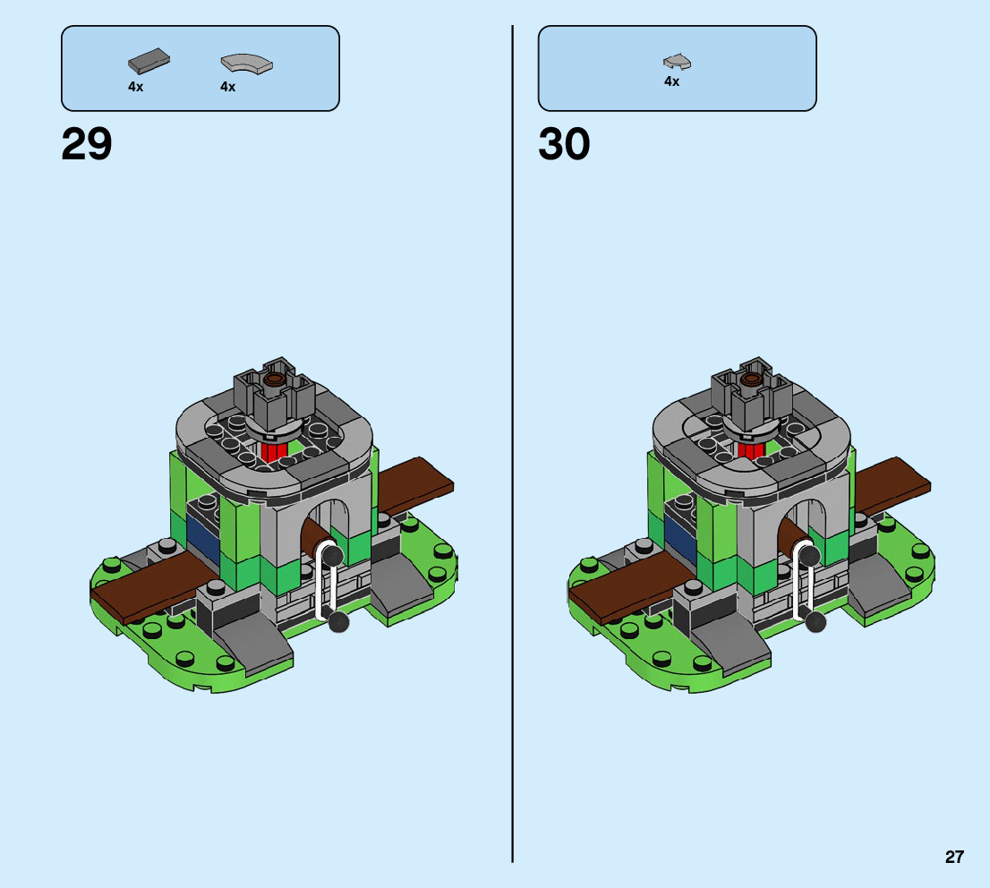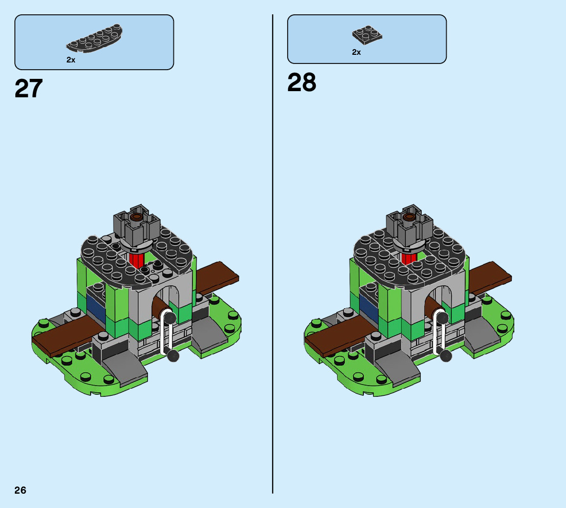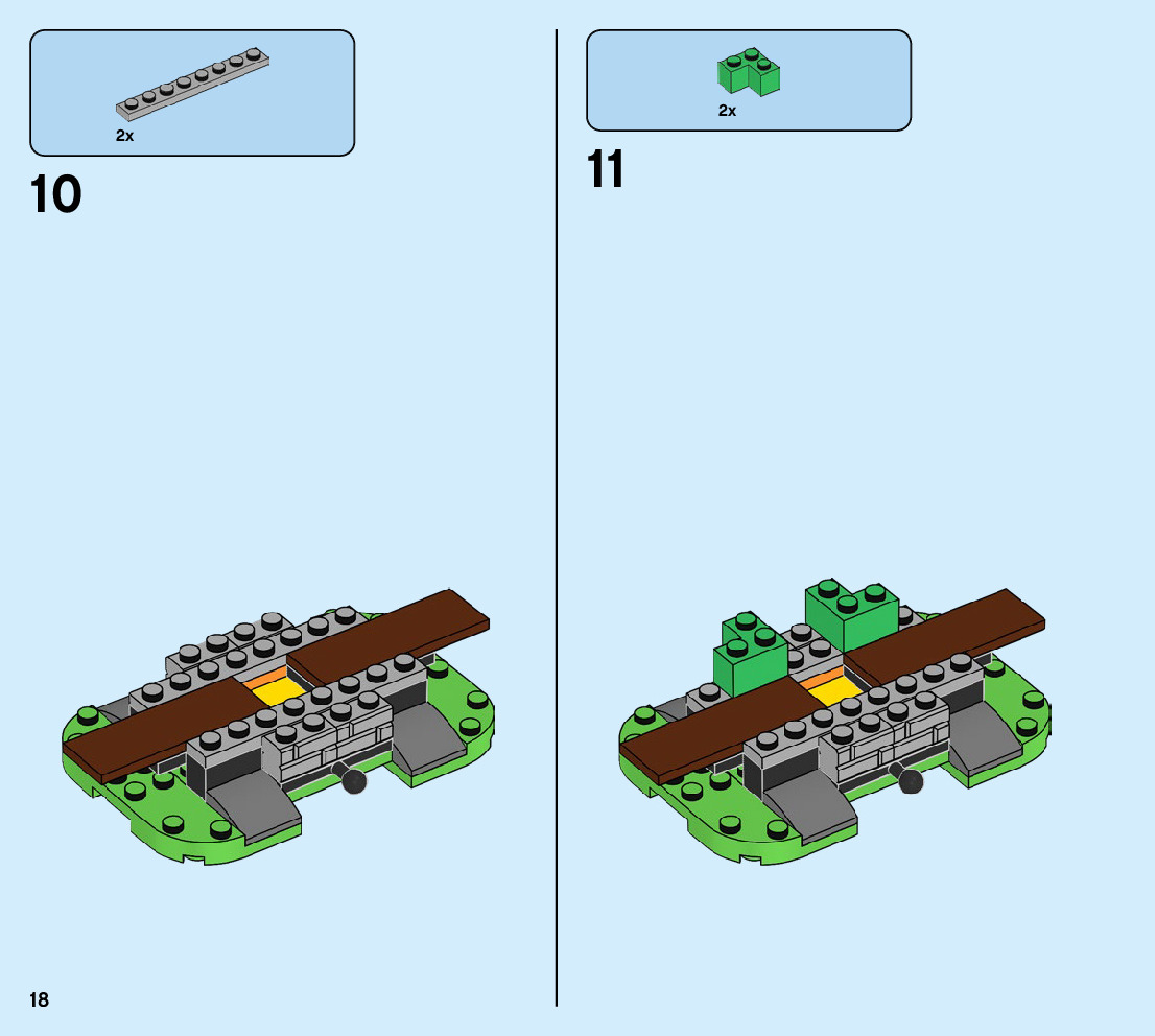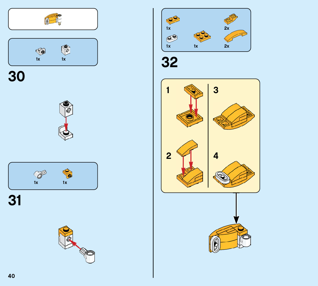 The assembly guide is prepared in a very understandable way for children and adult LEGO enthusiasts. A total of 66 picture galleries are shown, explaining the step-by-step construction stages for 2 different structures.