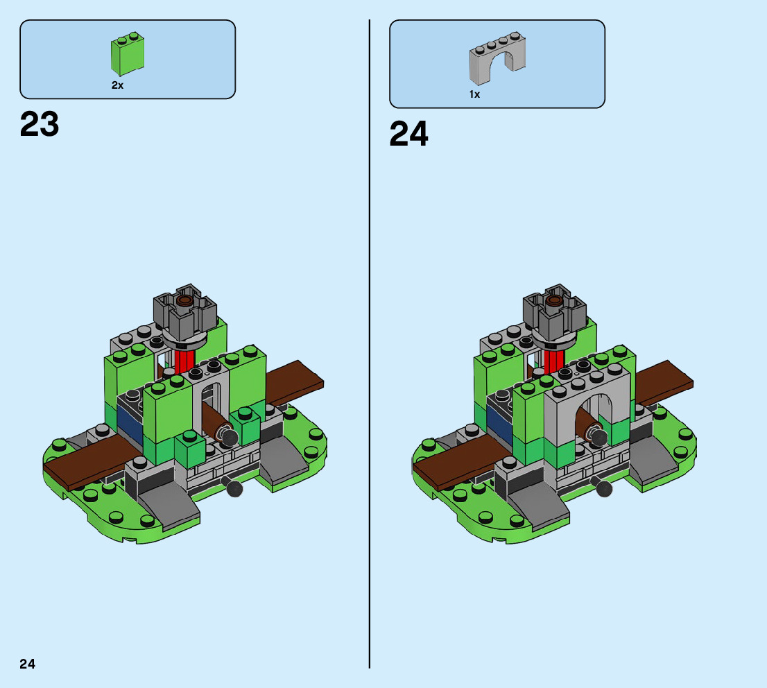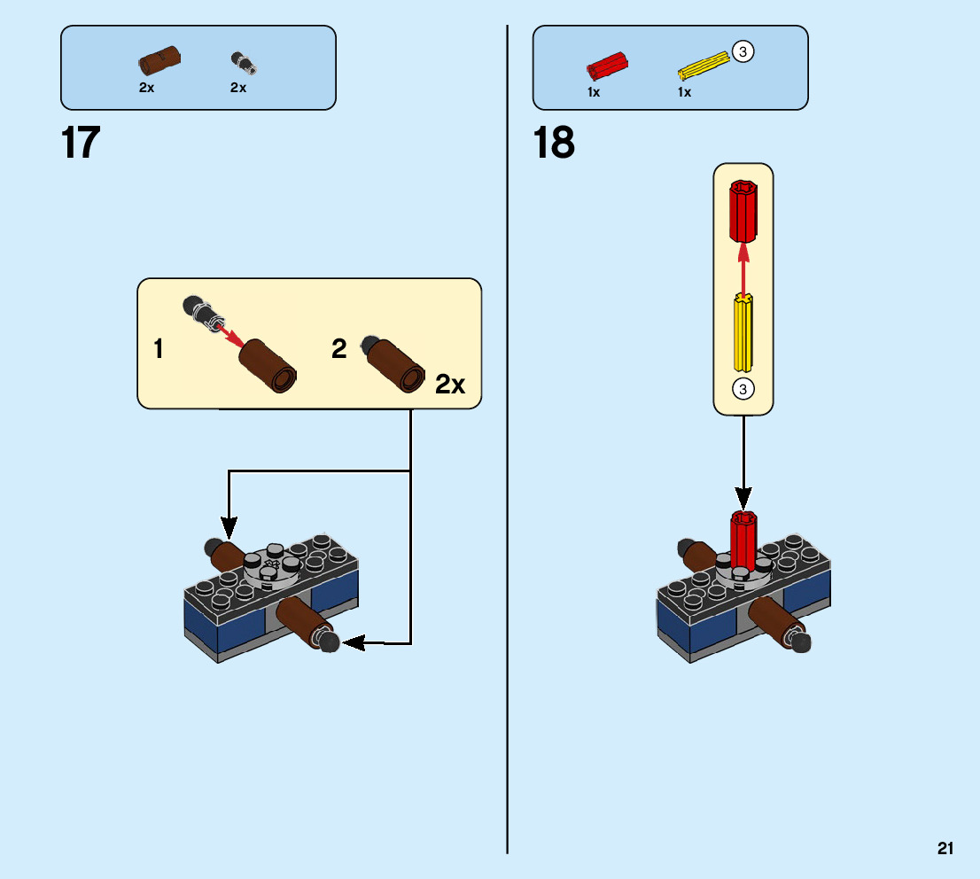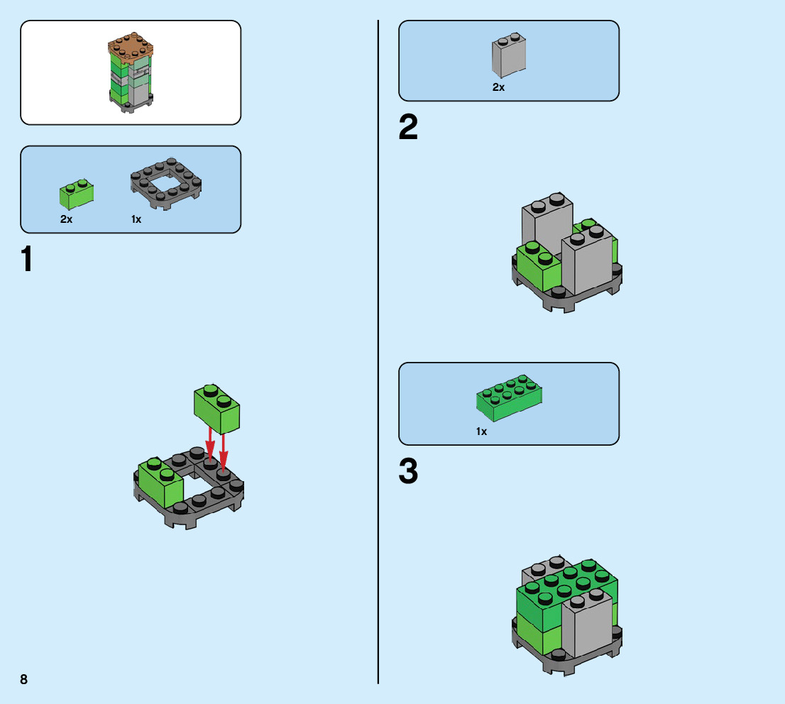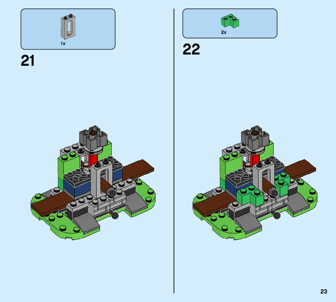 The assembly guide is prepared in a very understandable way for children and adult LEGO enthusiasts. A total of 66 picture galleries are shown, explaining the step-by-step construction stages for 2 different structures.
