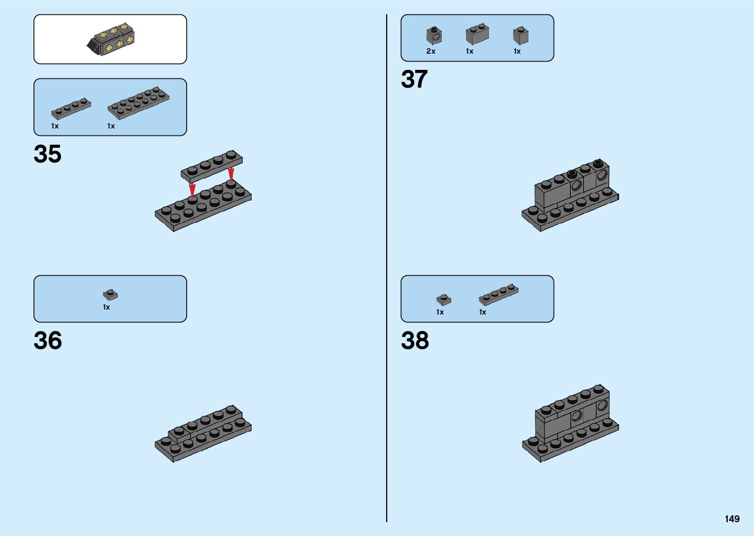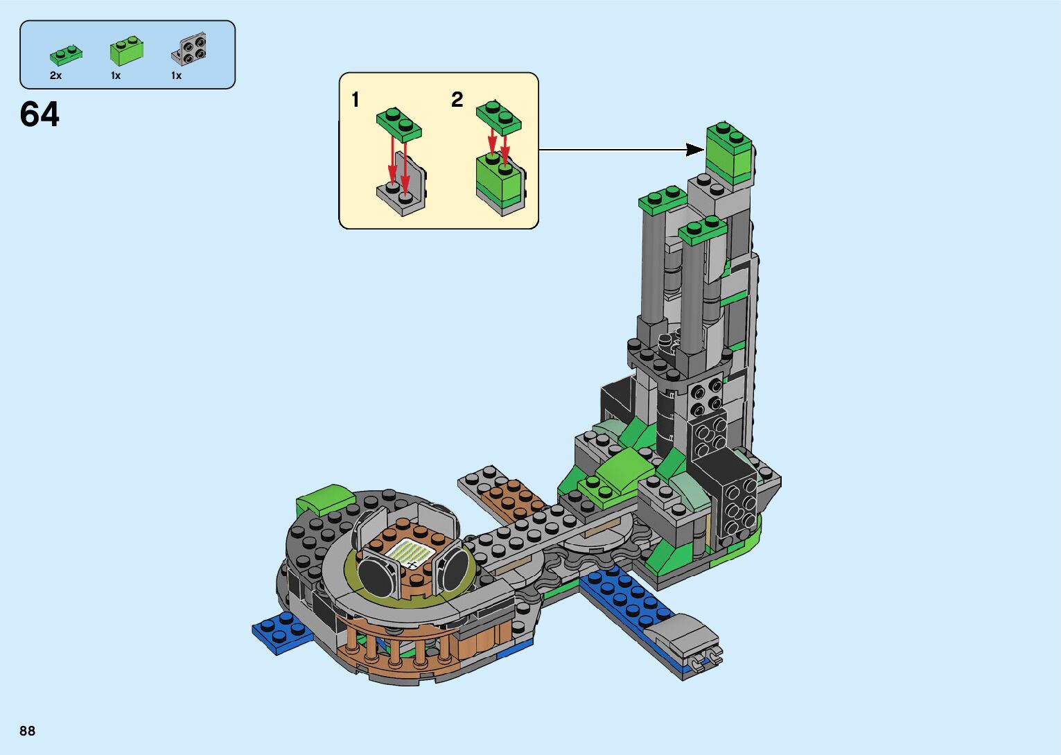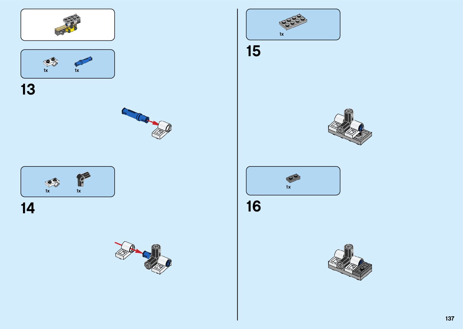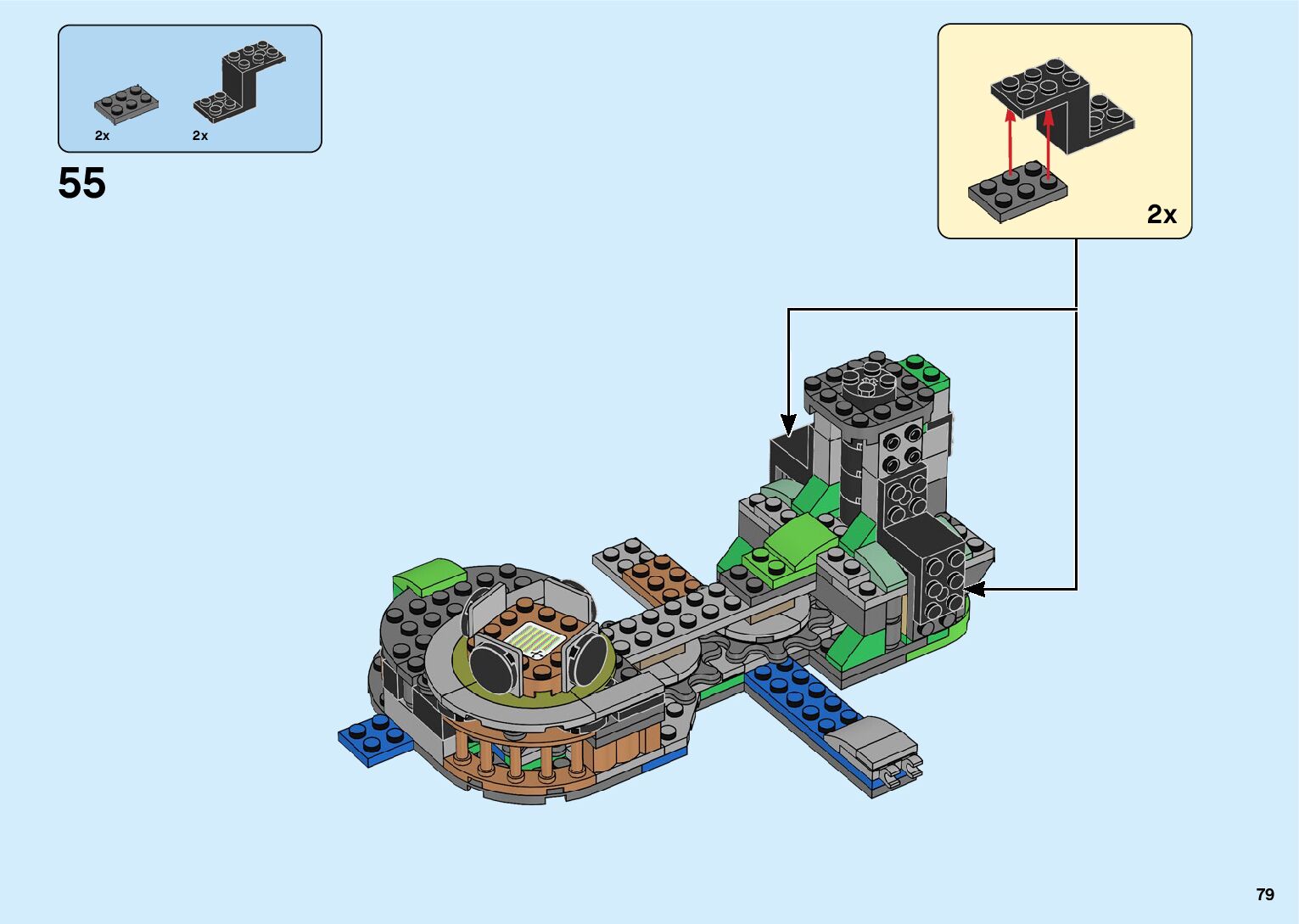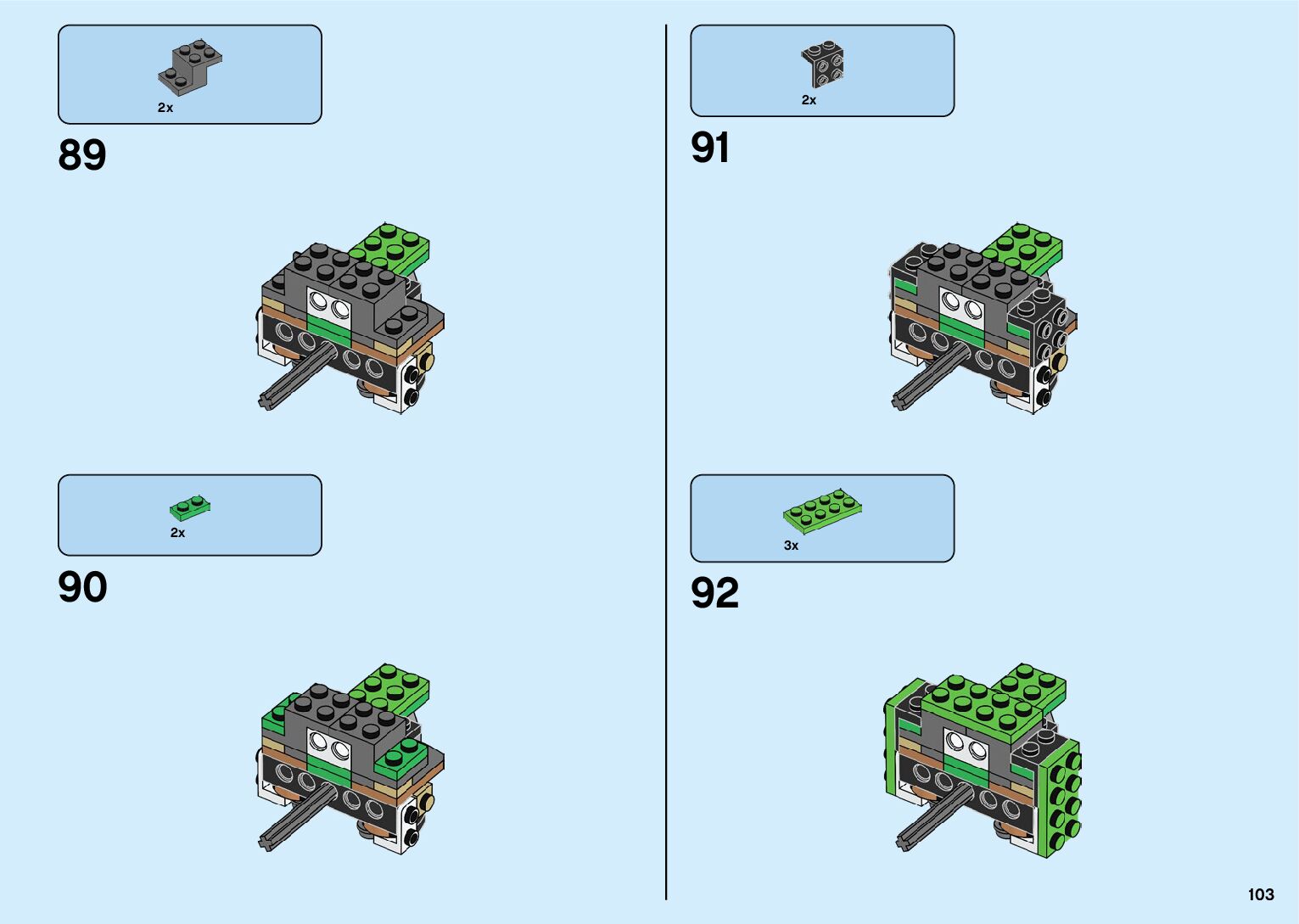 The assembly guide is prepared in a very understandable way for children and adult LEGO enthusiasts. A total of 182 picture galleries are shown, explaining the step-by-step construction stages for 2 different structures.