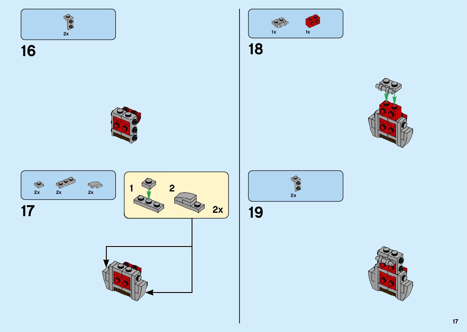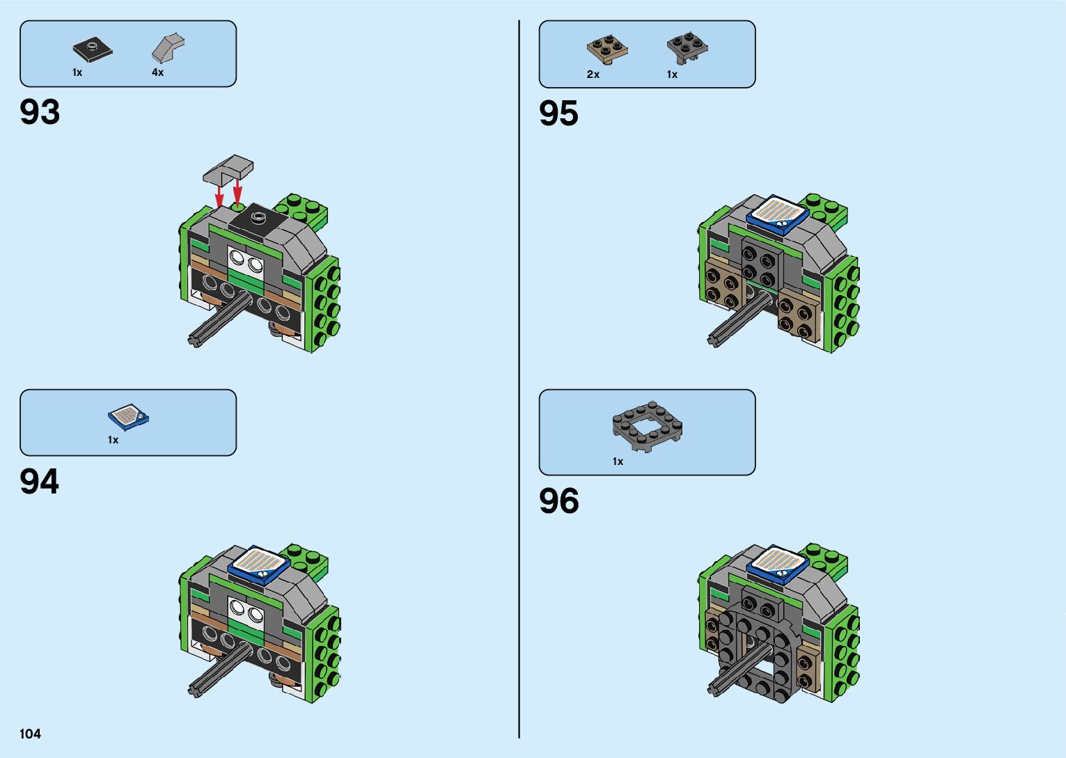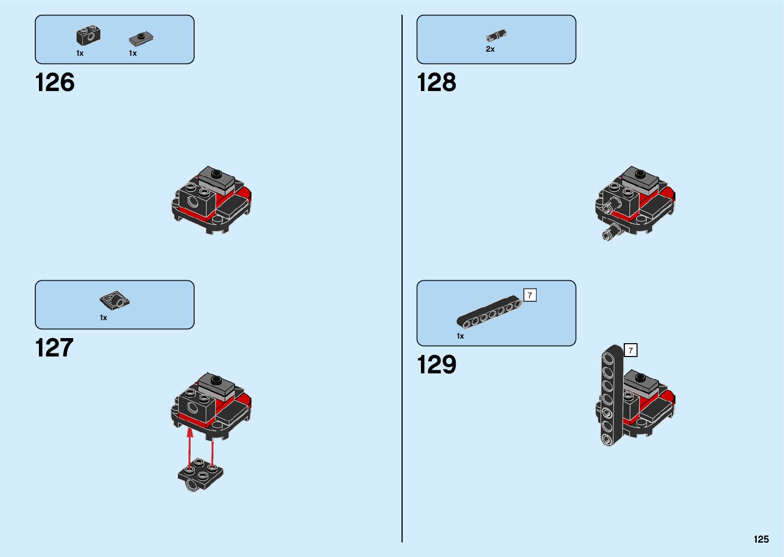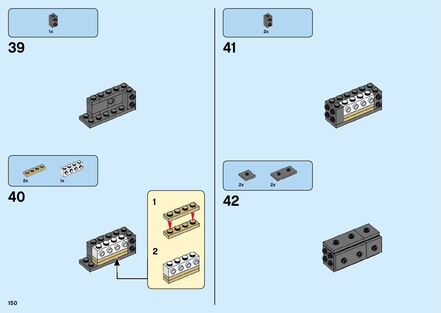 The assembly guide is prepared in a very understandable way for children and adult LEGO enthusiasts. A total of 182 picture galleries are shown, explaining the step-by-step construction stages for 2 different structures.
