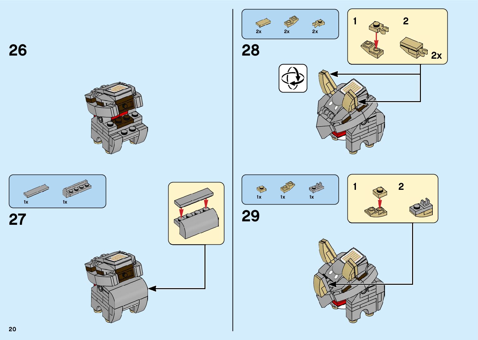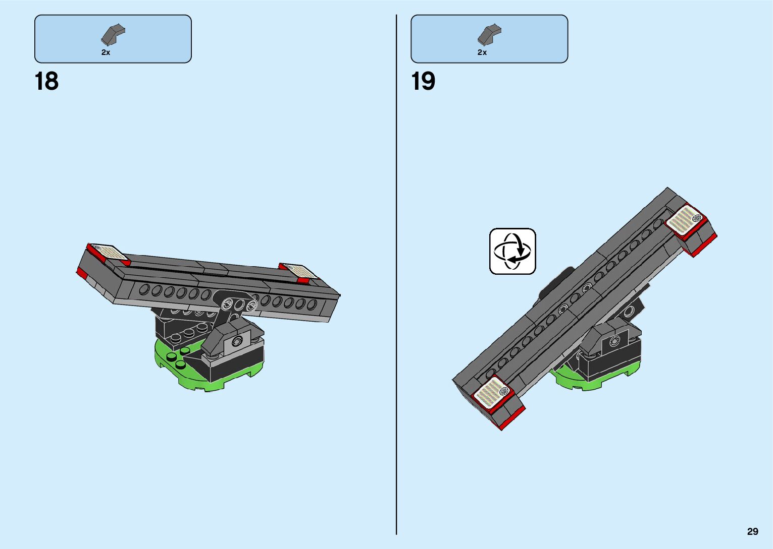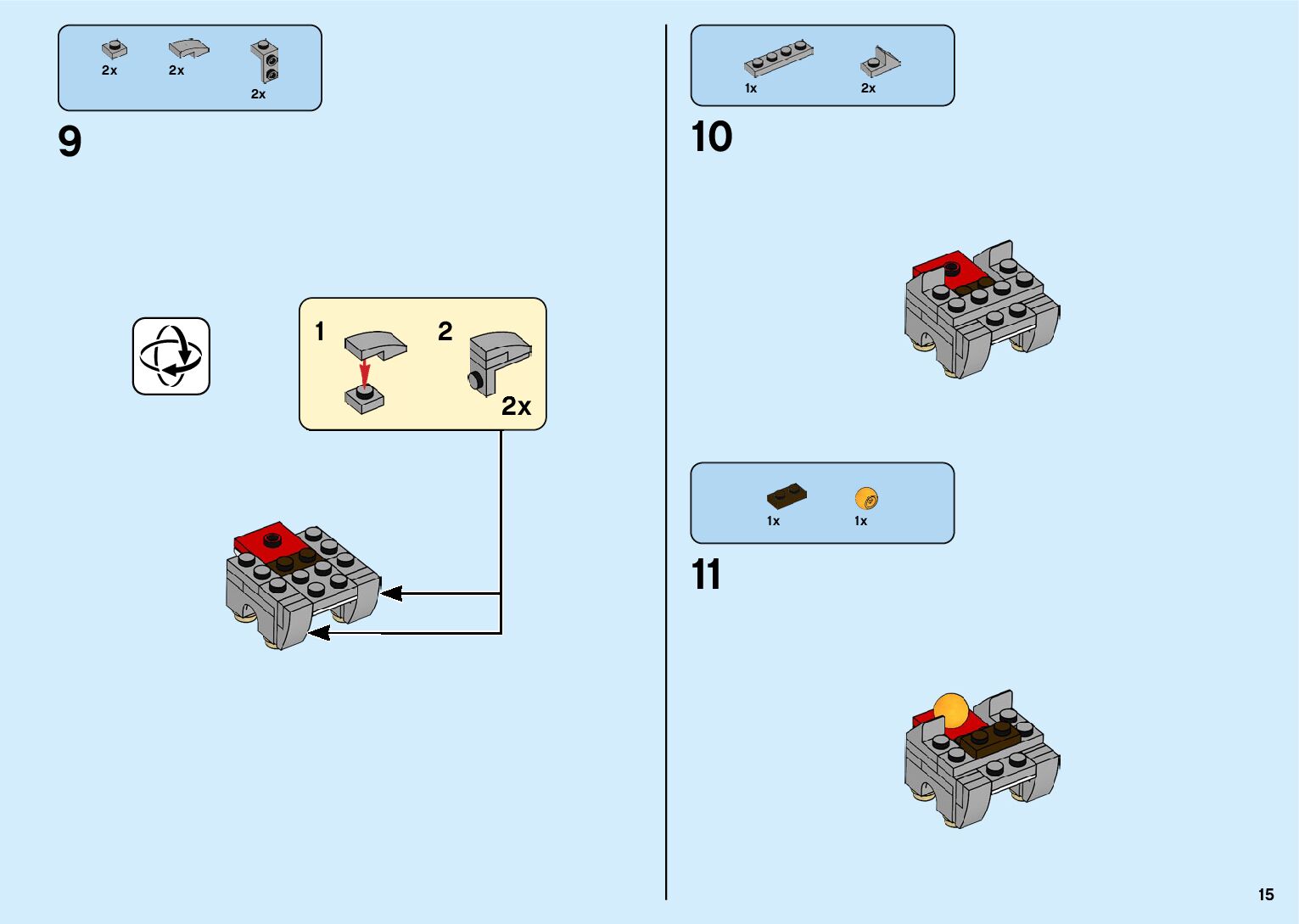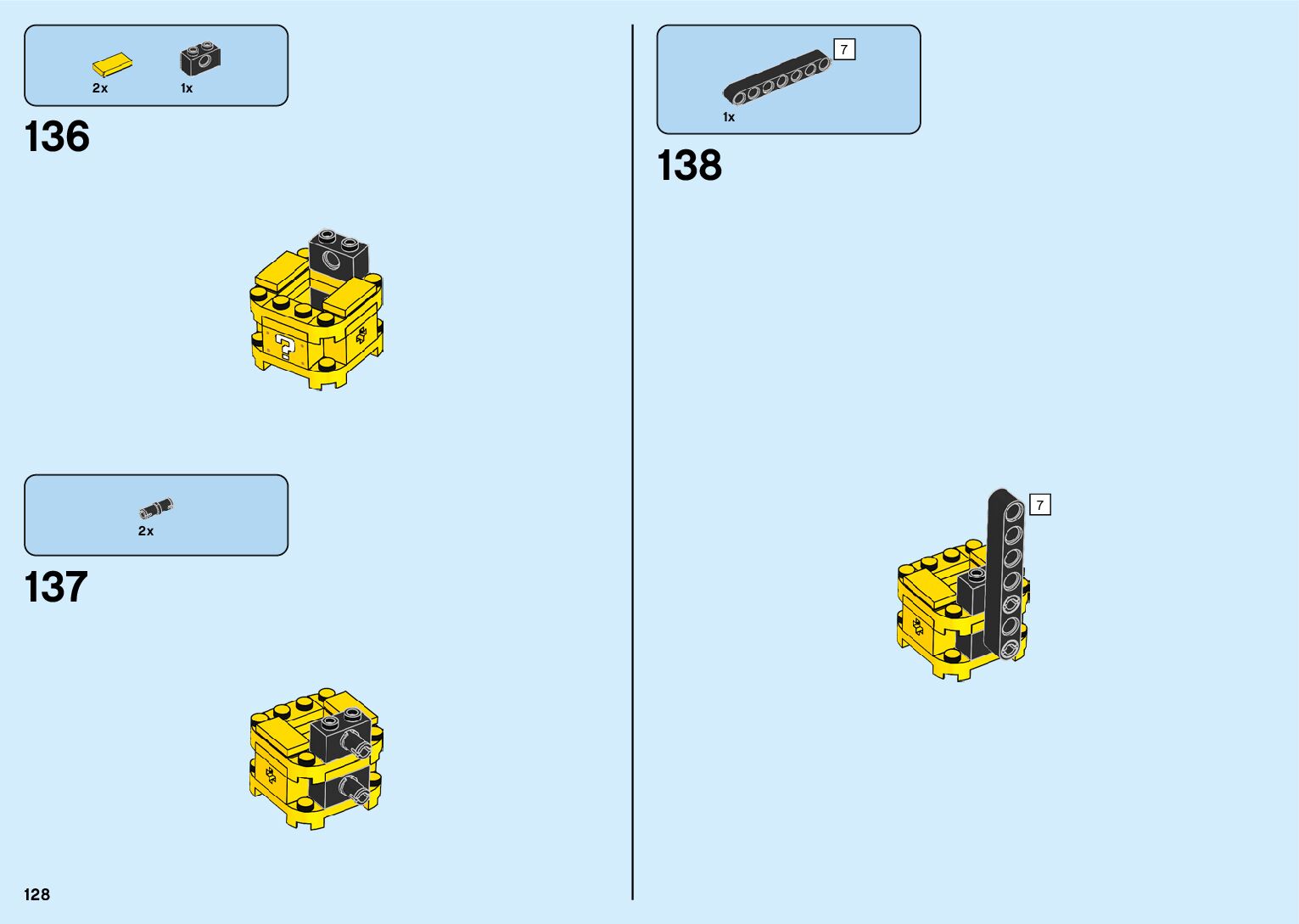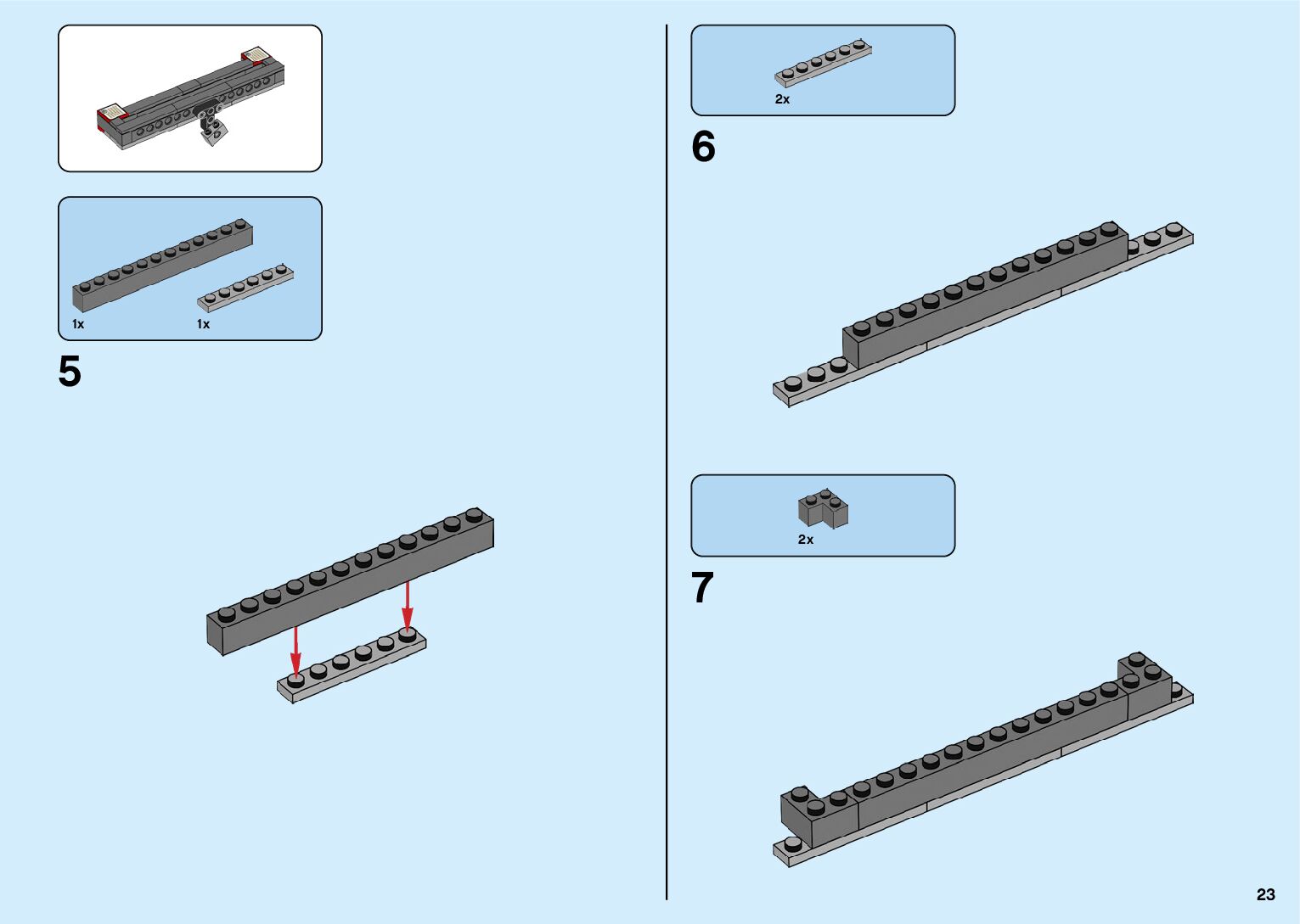 The assembly guide is prepared in a very understandable way for children and adult LEGO enthusiasts. A total of 182 picture galleries are shown, explaining the step-by-step construction stages for 2 different structures.
