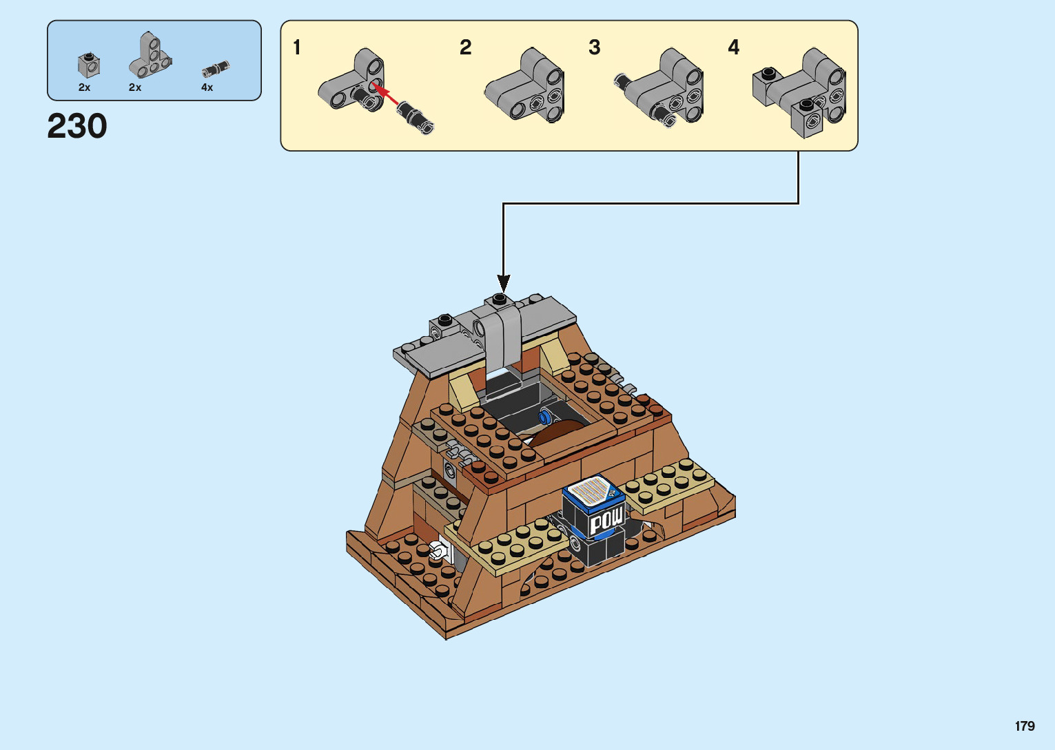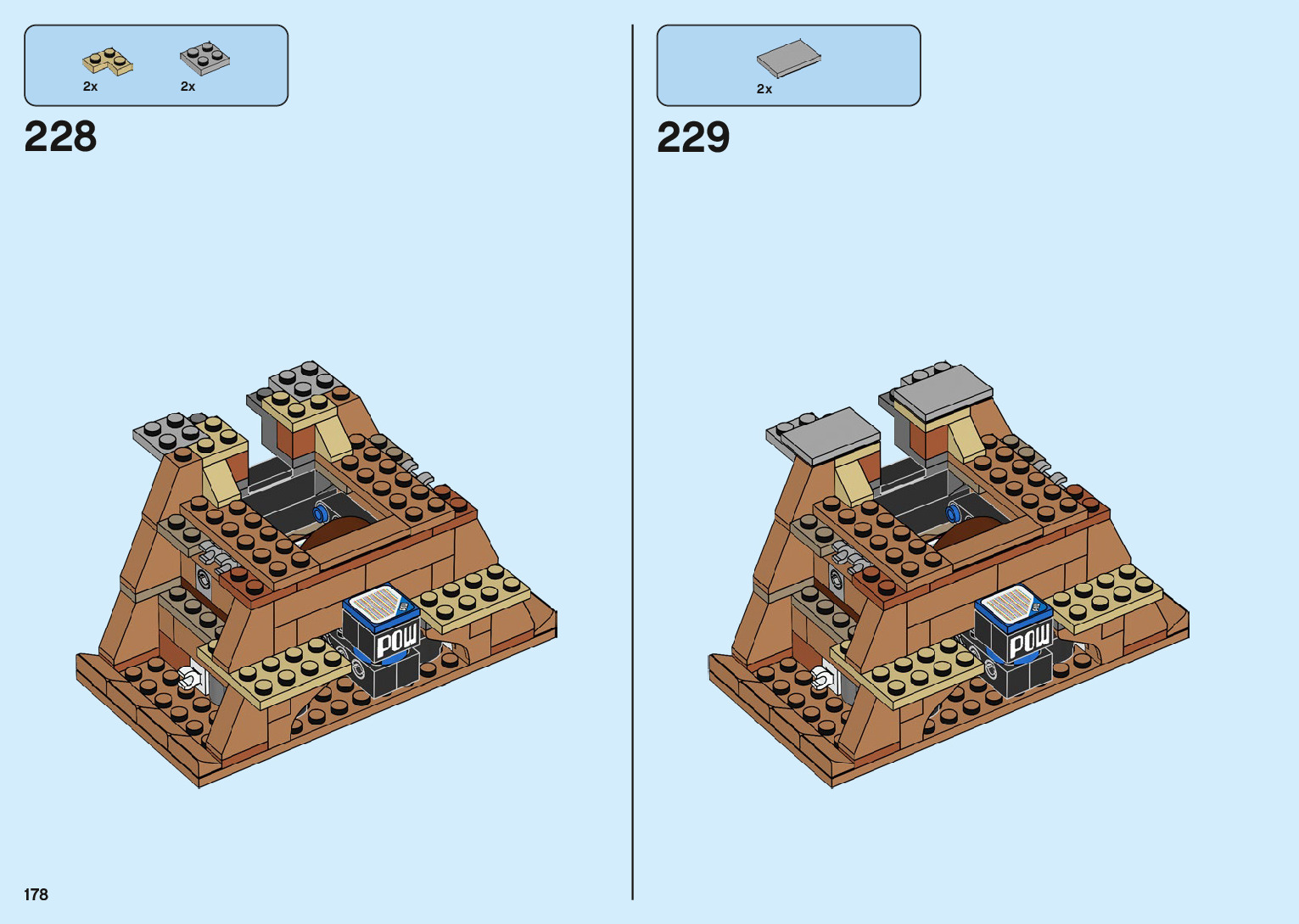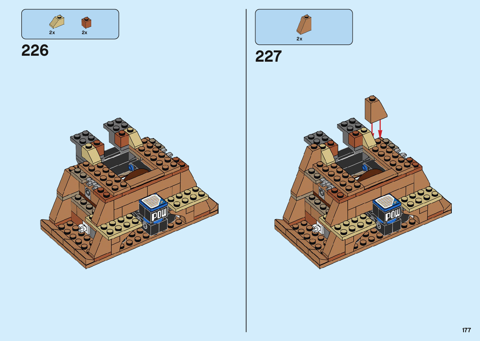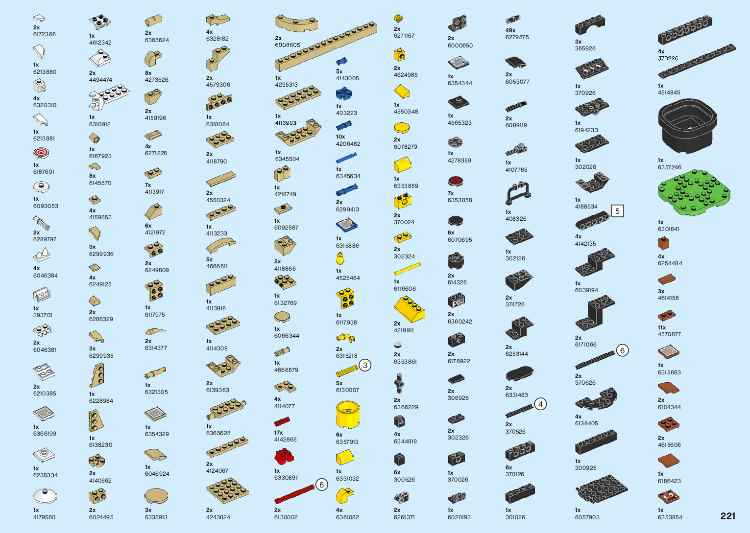 The assembly guide is prepared in a very understandable way for children and adult LEGO enthusiasts. A total of 232 picture galleries are shown, explaining the step-by-step construction stages for 2 different structures.