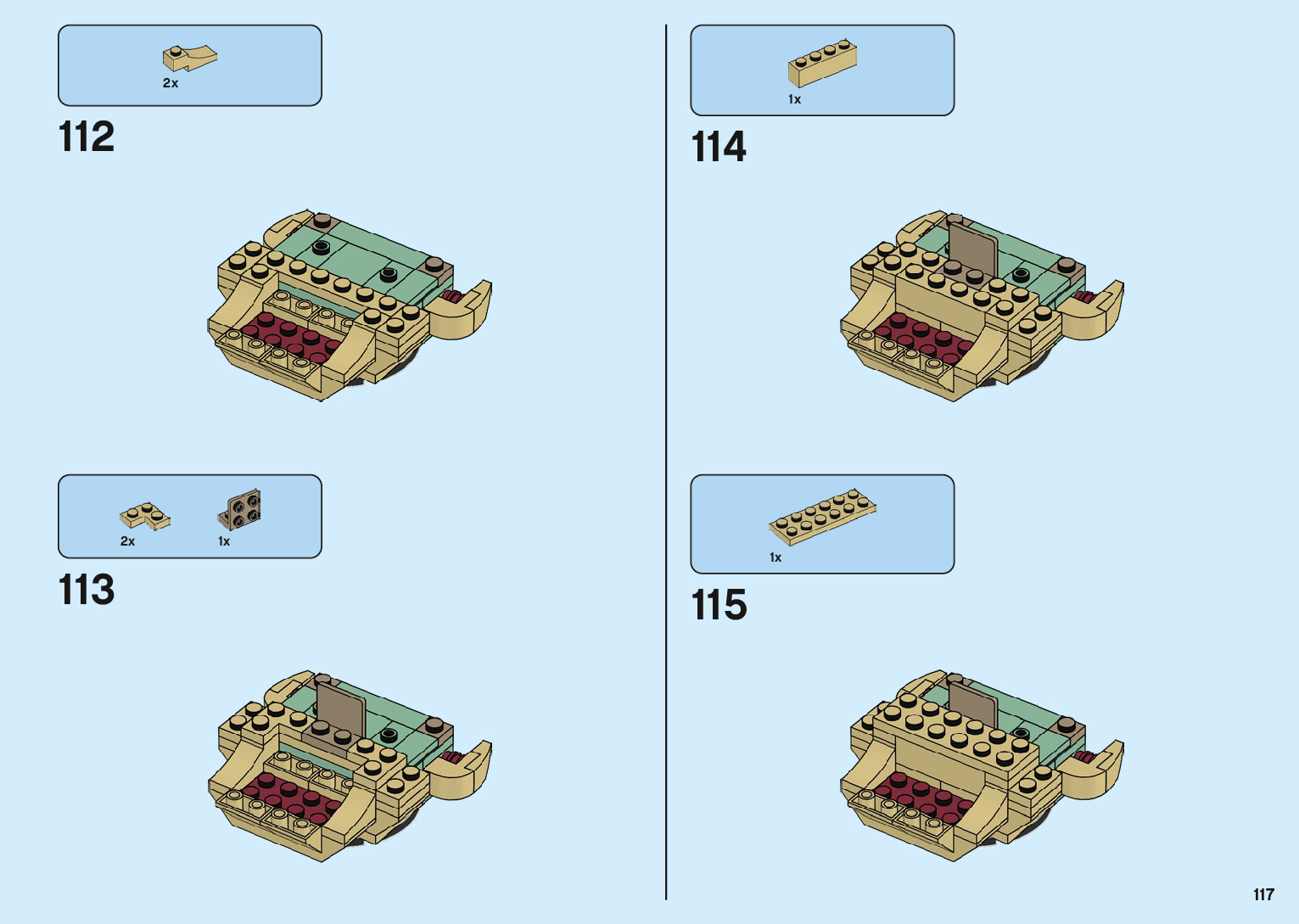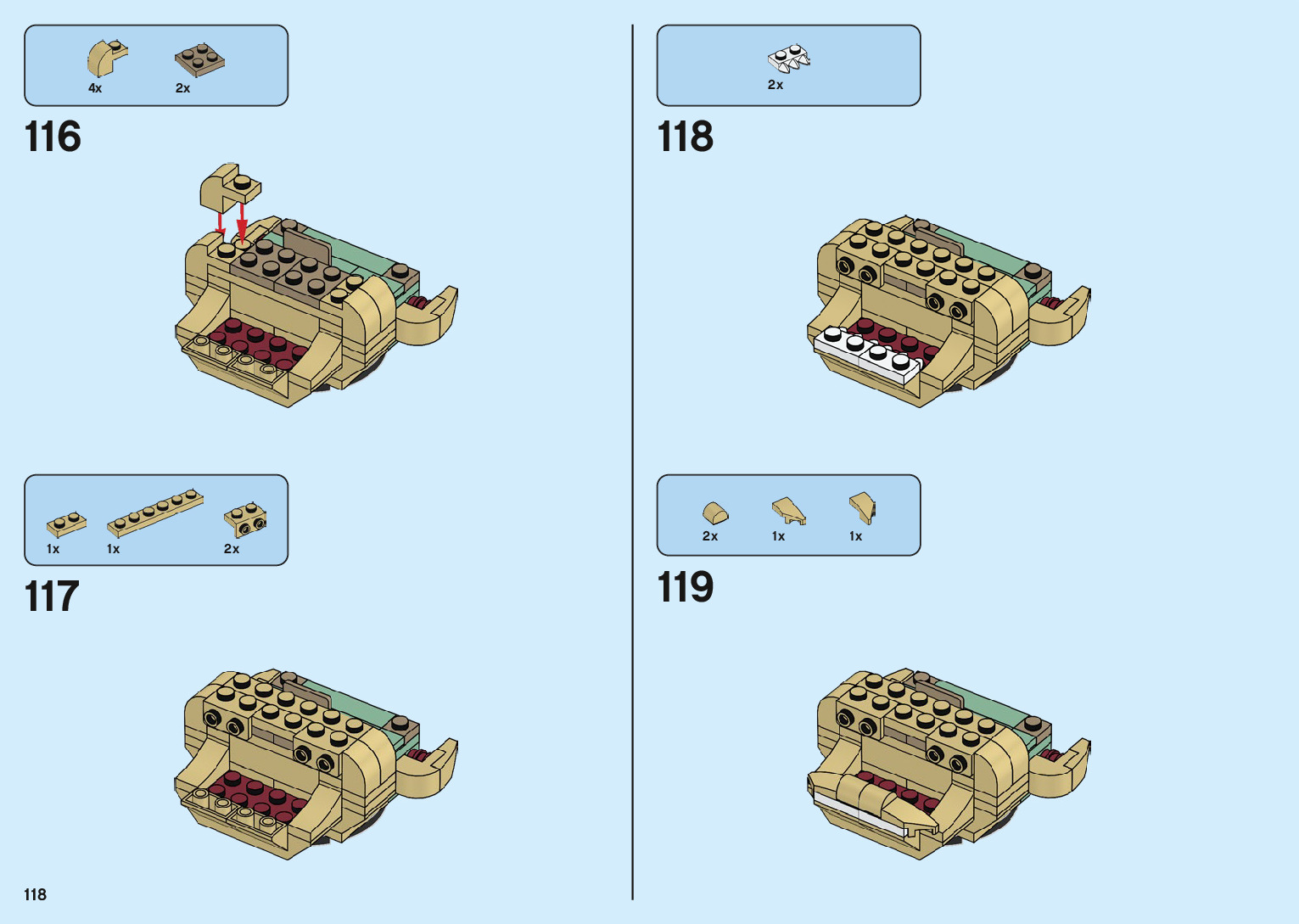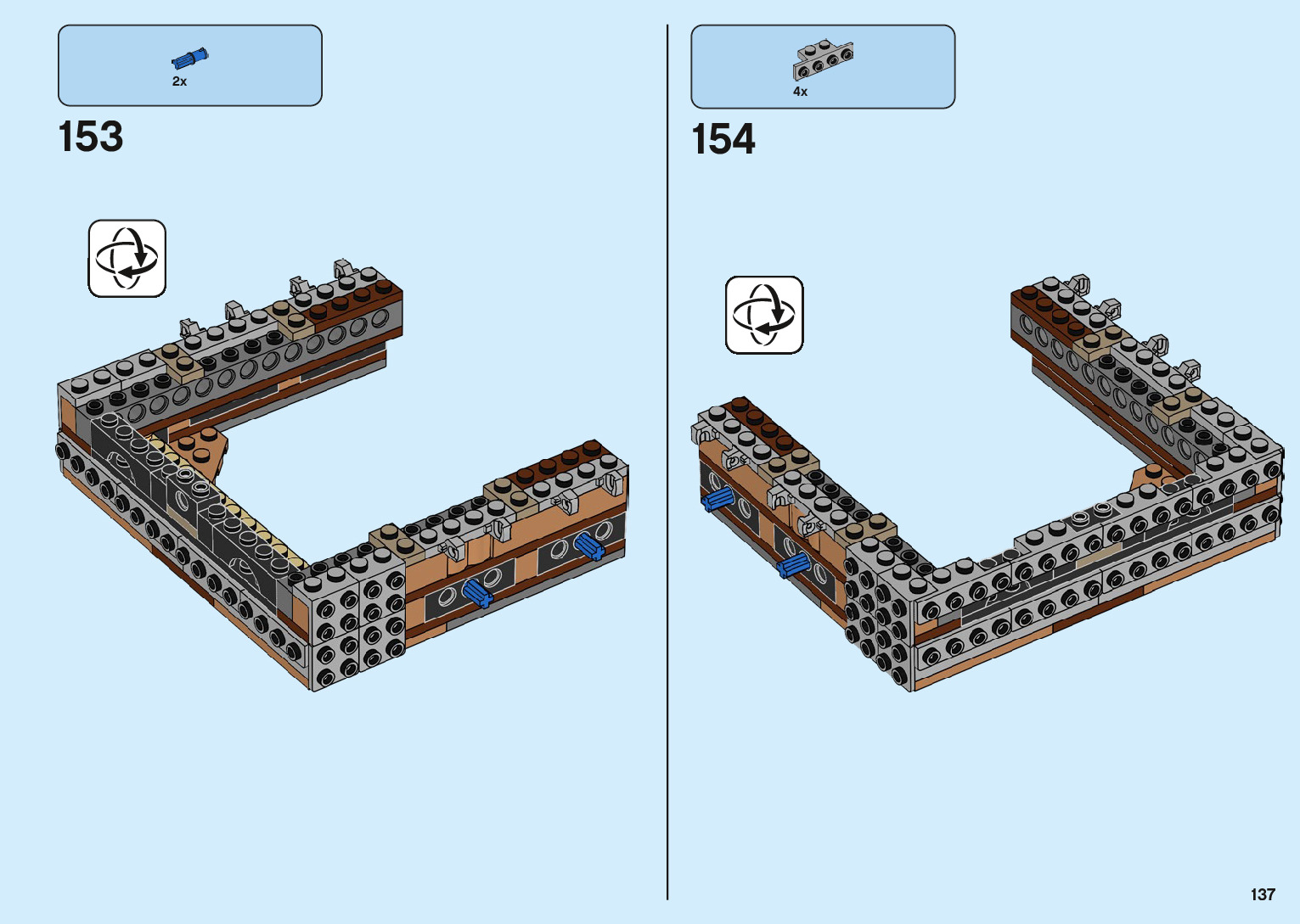 The assembly guide is prepared in a very understandable way for children and adult LEGO enthusiasts. A total of 232 picture galleries are shown, explaining the step-by-step construction stages for 2 different structures.
