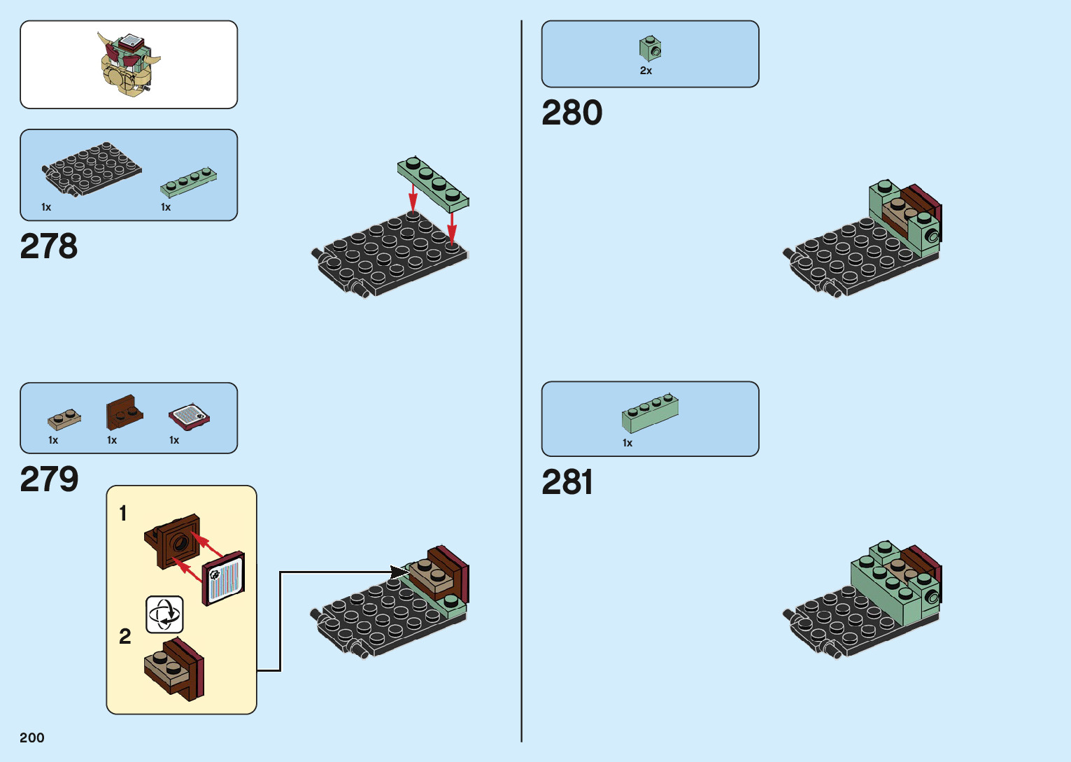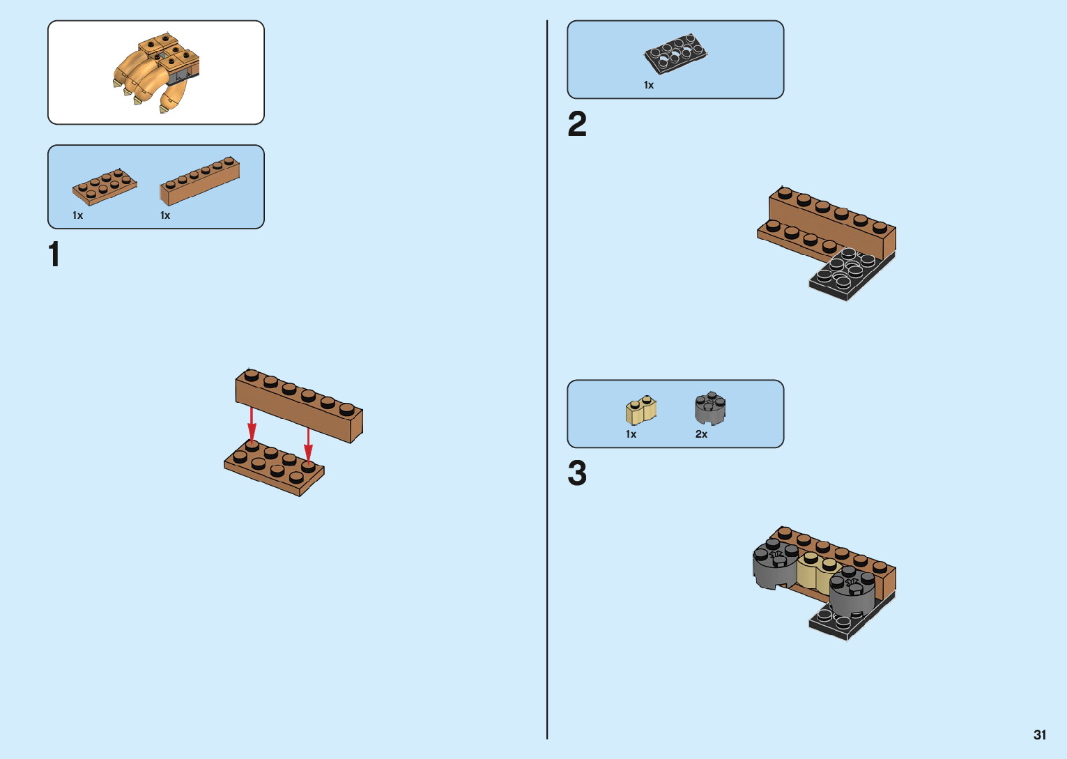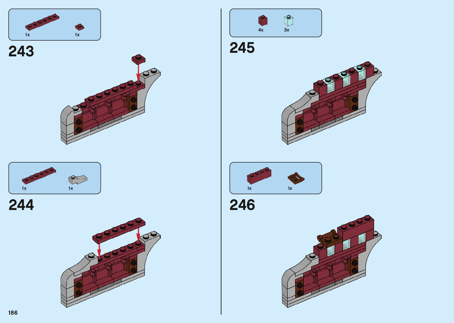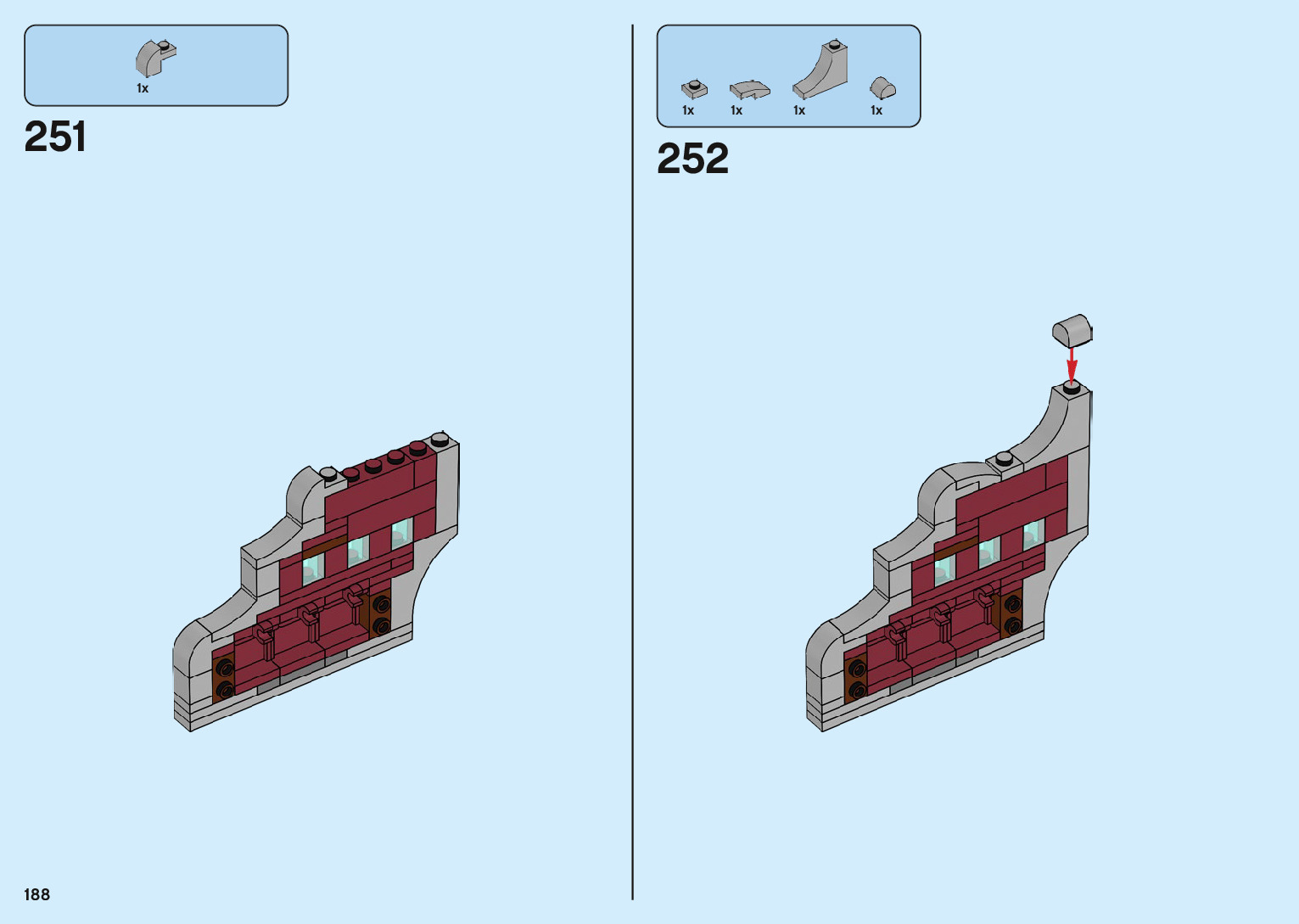 The assembly guide is prepared in a very understandable way for children and adult LEGO enthusiasts. A total of 232 picture galleries are shown, explaining the step-by-step construction stages for 2 different structures.