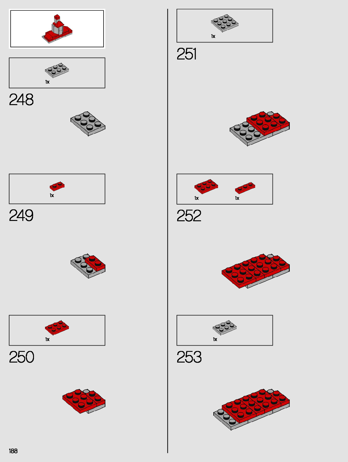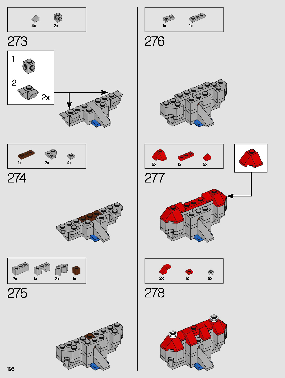 The assembly guide is prepared in a very understandable way for children and adult LEGO enthusiasts. A total of 276 picture galleries are shown, explaining the step-by-step construction stages for 1 different structures.