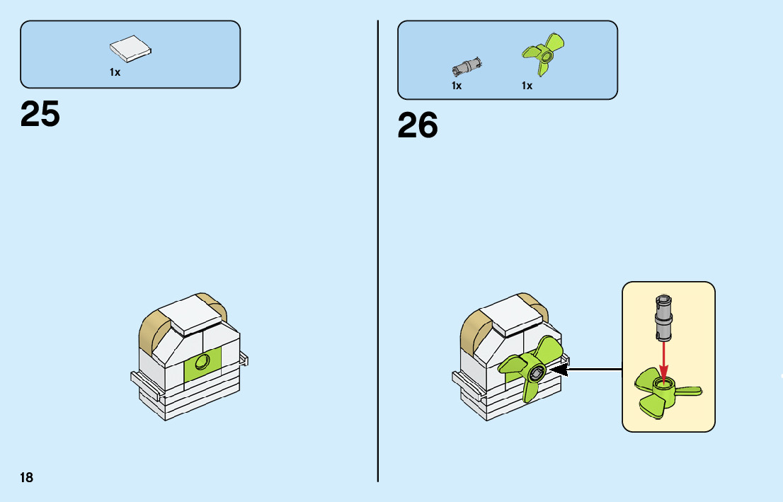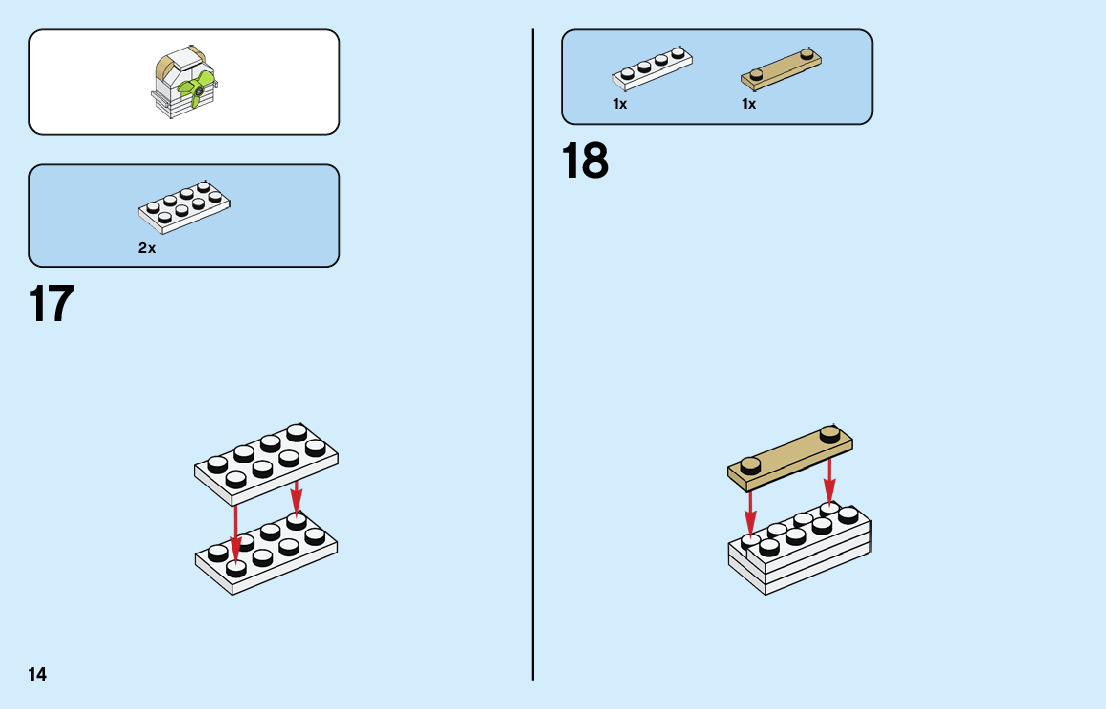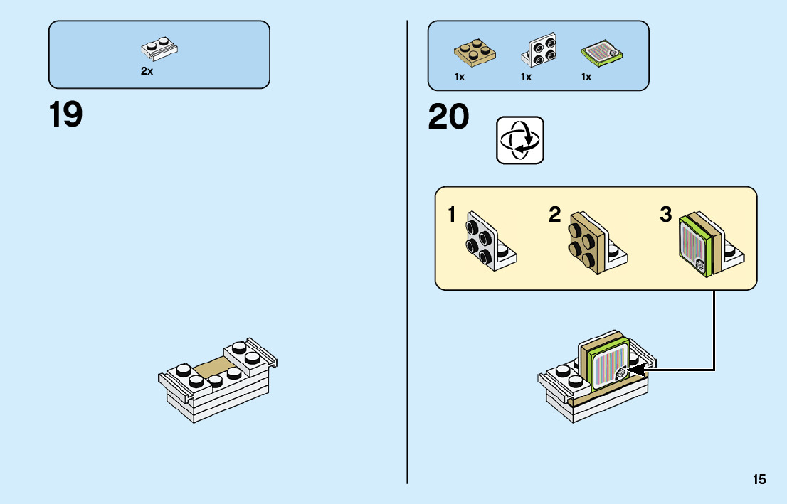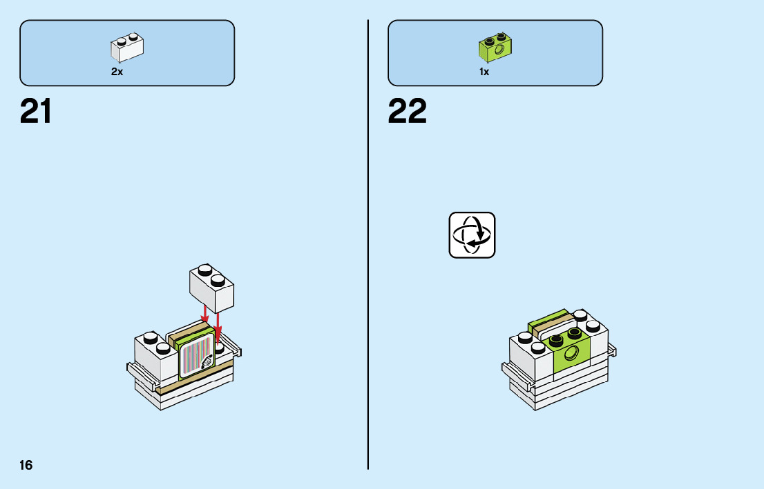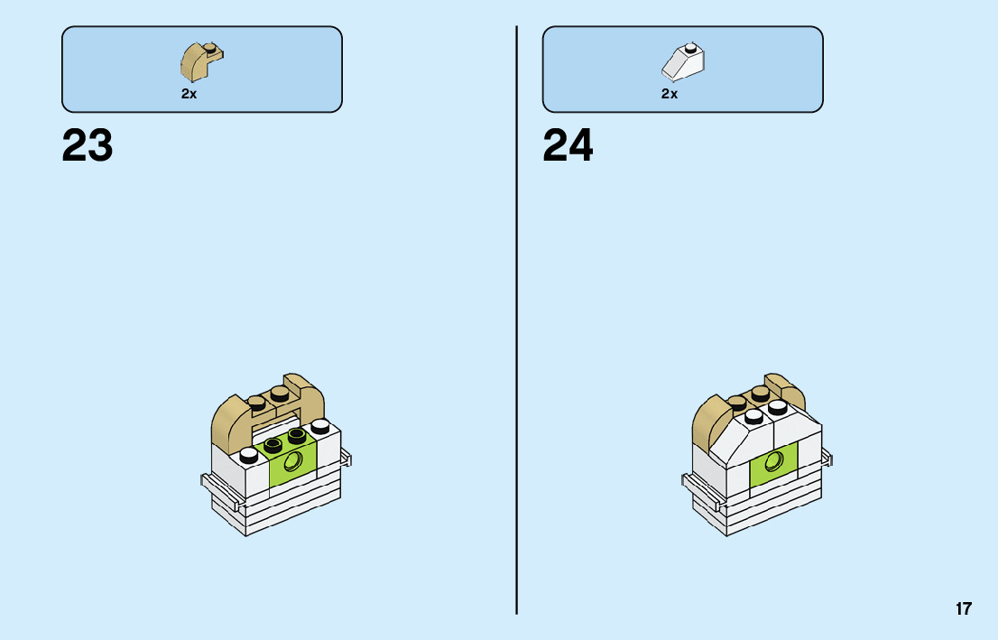 The assembly guide is prepared in a very understandable way for children and adult LEGO enthusiasts. A total of 38 picture galleries are shown, explaining the step-by-step construction stages for 2 different structures.