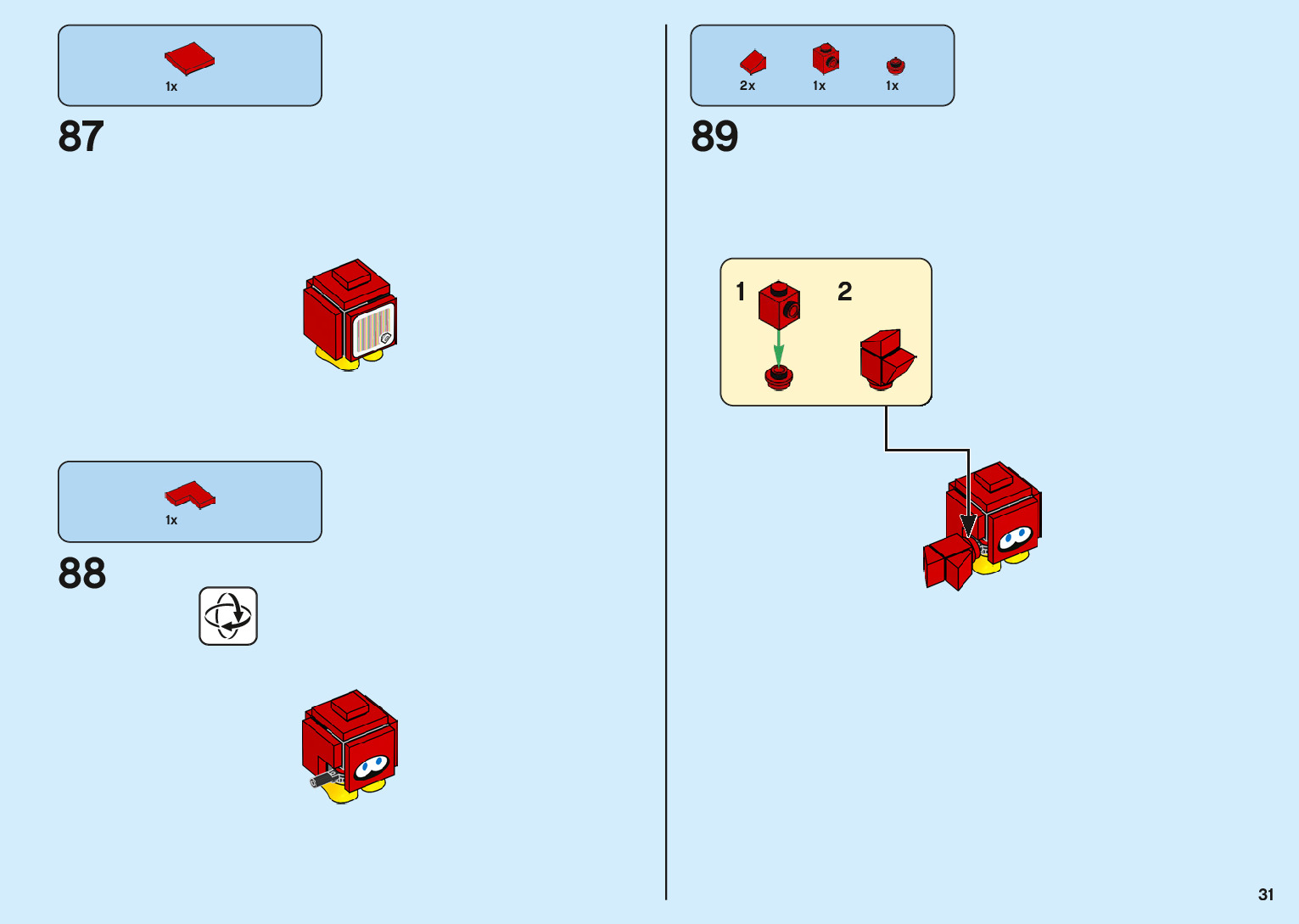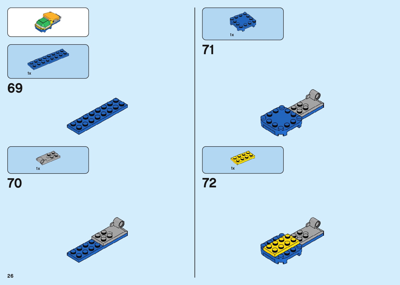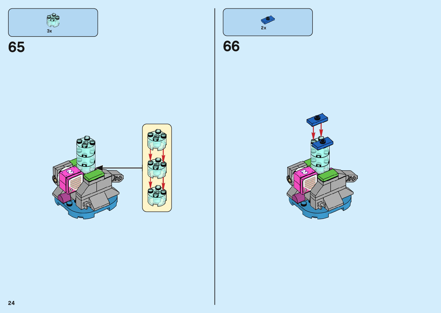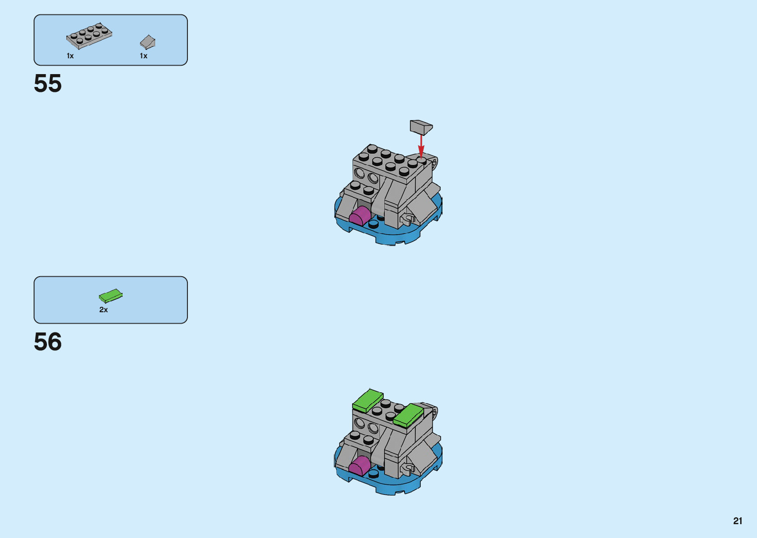 The assembly guide is prepared in a very understandable way for children and adult LEGO enthusiasts. A total of 66 picture galleries are shown, explaining the step-by-step construction stages for 2 different structures.