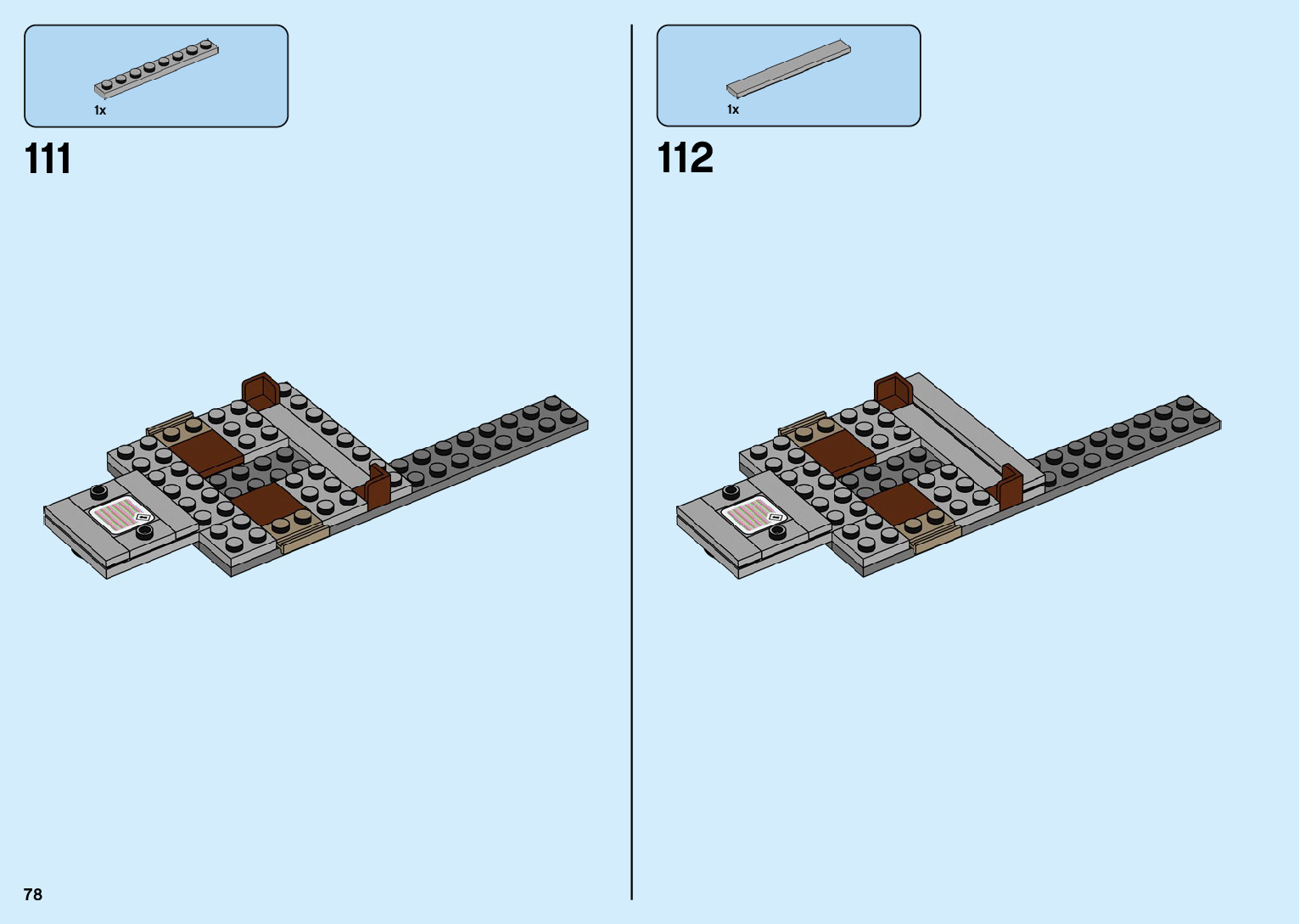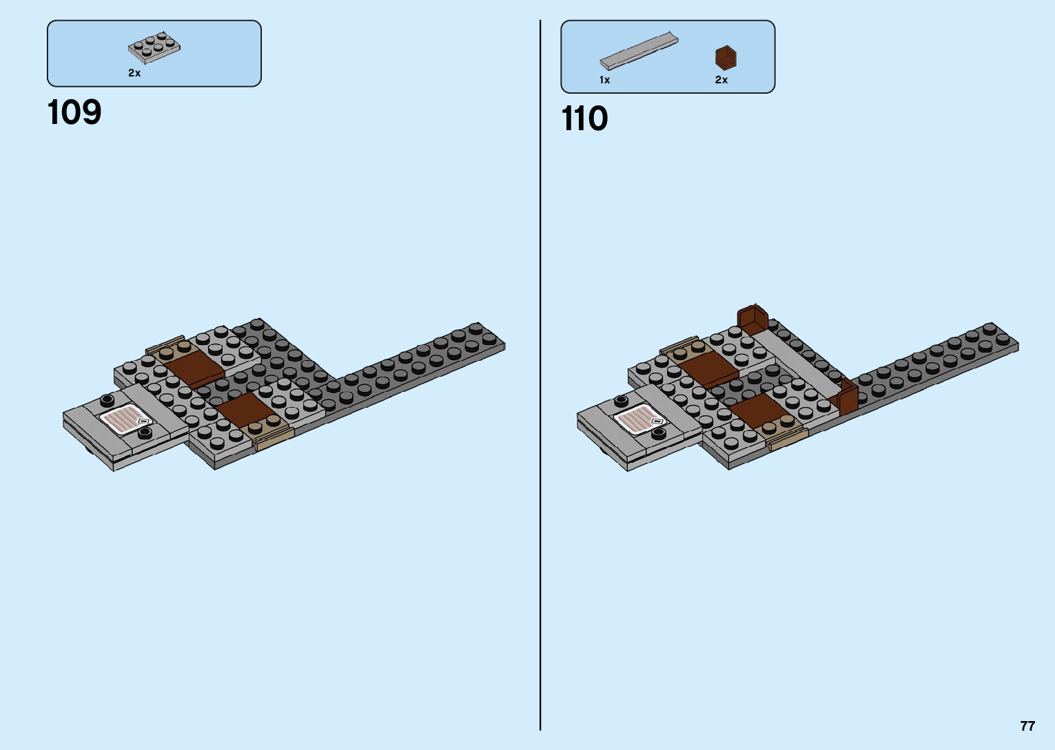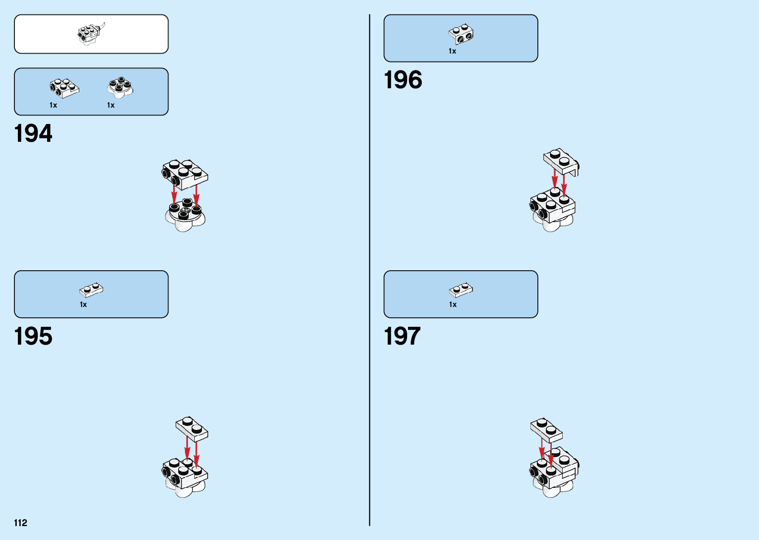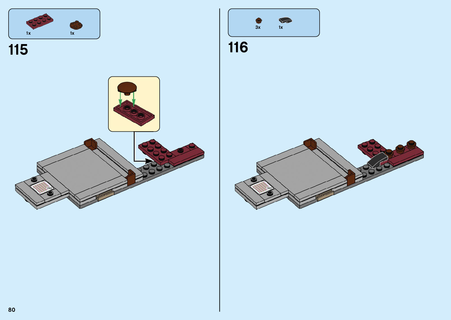 The assembly guide is prepared in a very understandable way for children and adult LEGO enthusiasts. A total of 136 picture galleries are shown, explaining the step-by-step construction stages for 2 different structures.