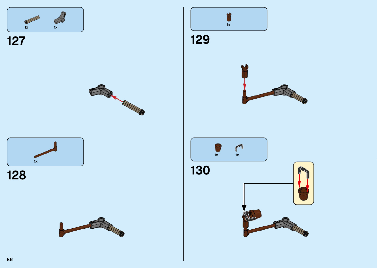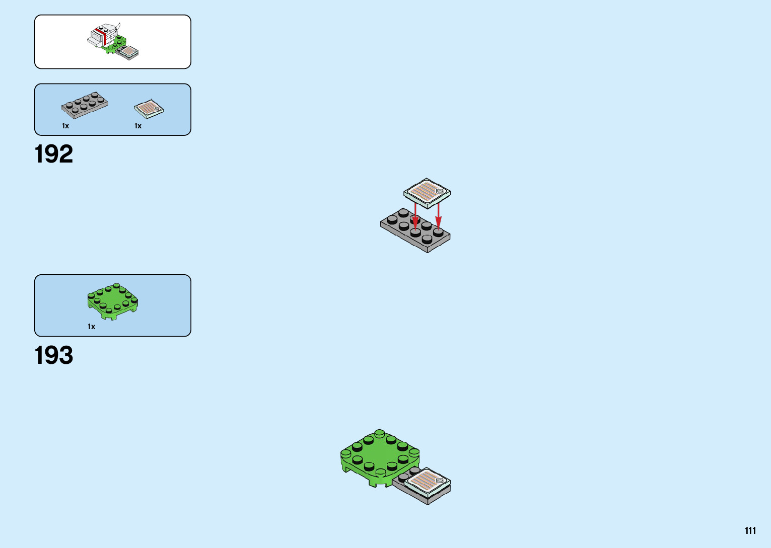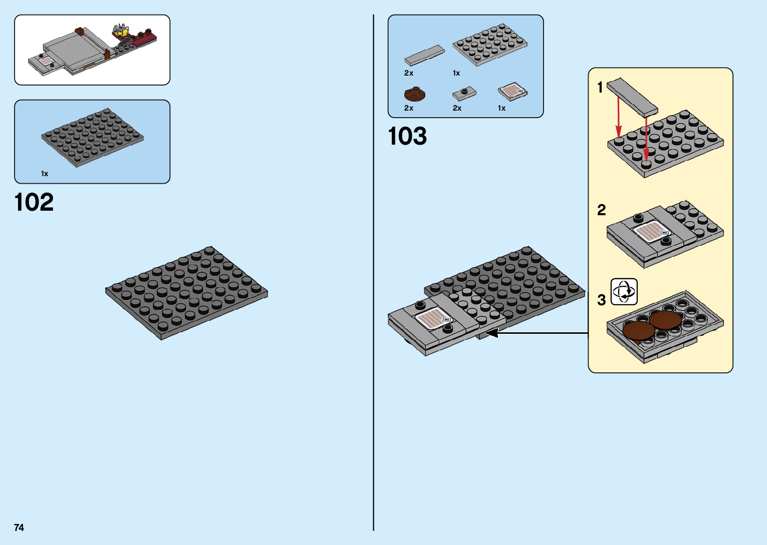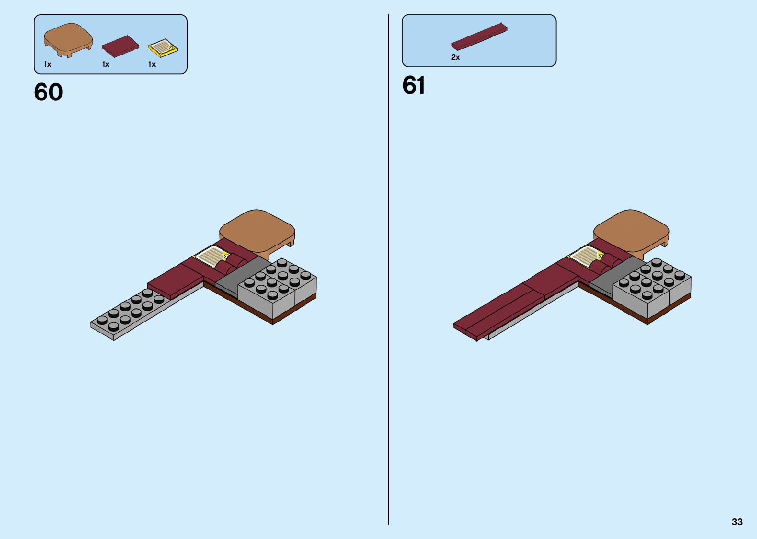 The assembly guide is prepared in a very understandable way for children and adult LEGO enthusiasts. A total of 136 picture galleries are shown, explaining the step-by-step construction stages for 2 different structures.
