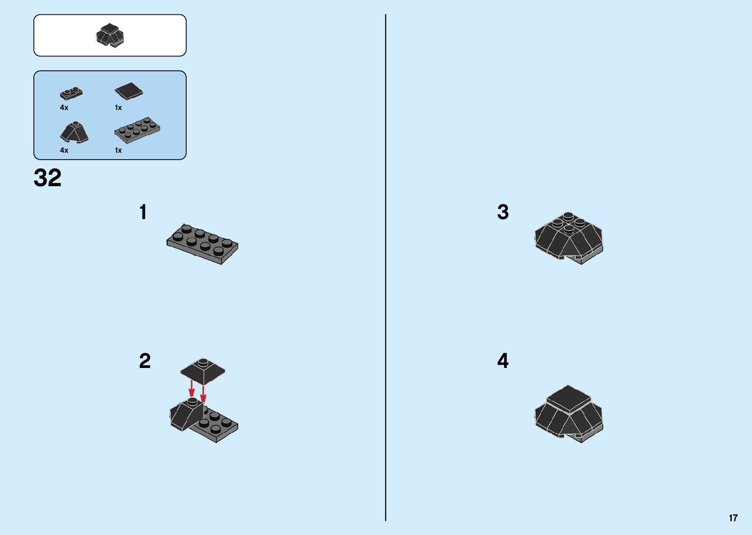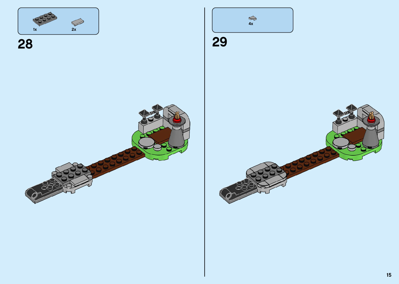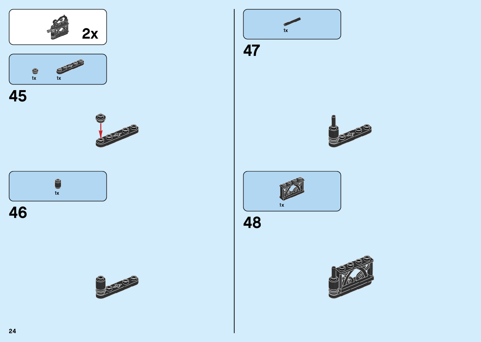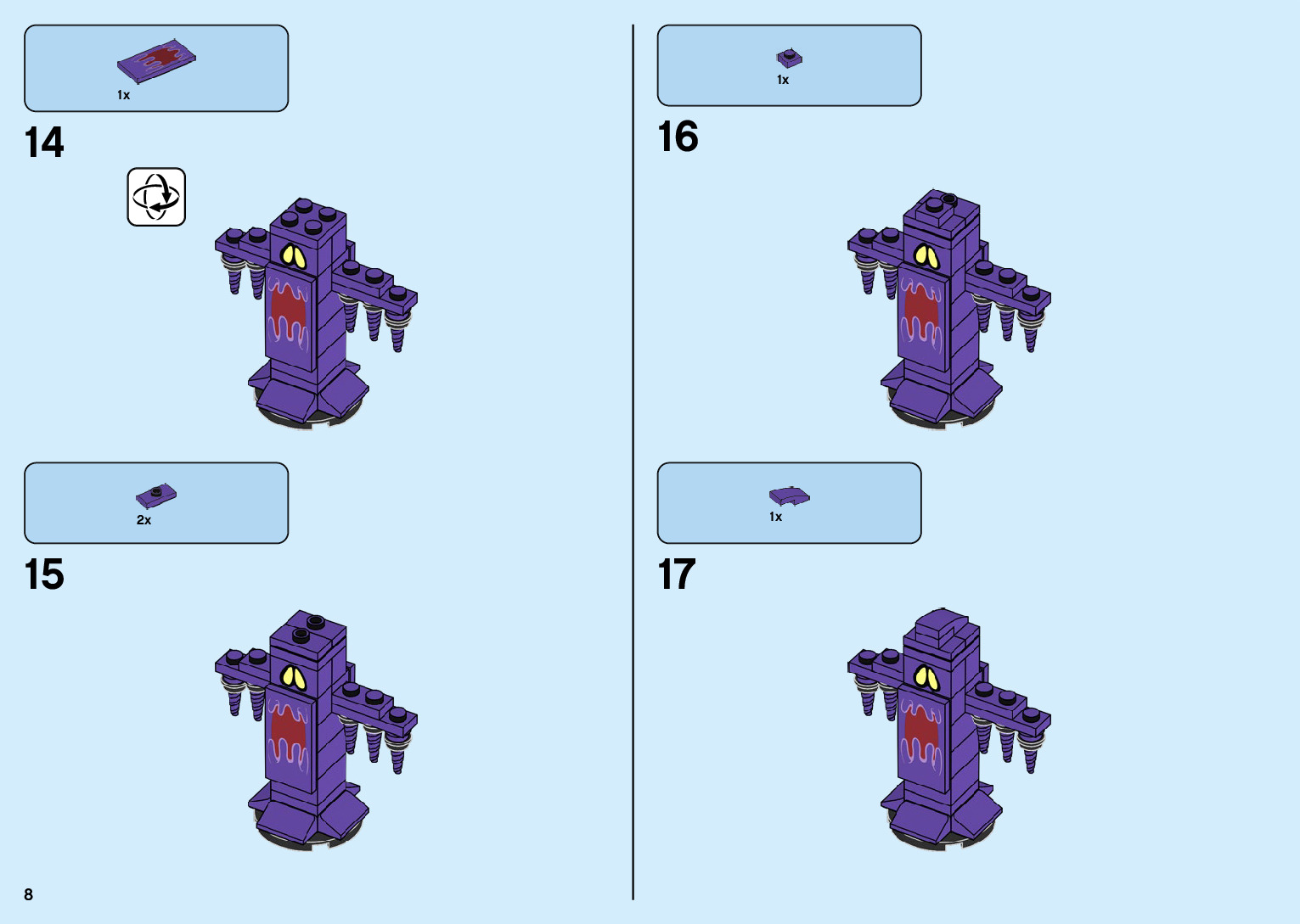 The assembly guide is prepared in a very understandable way for children and adult LEGO enthusiasts. A total of 136 picture galleries are shown, explaining the step-by-step construction stages for 2 different structures.
