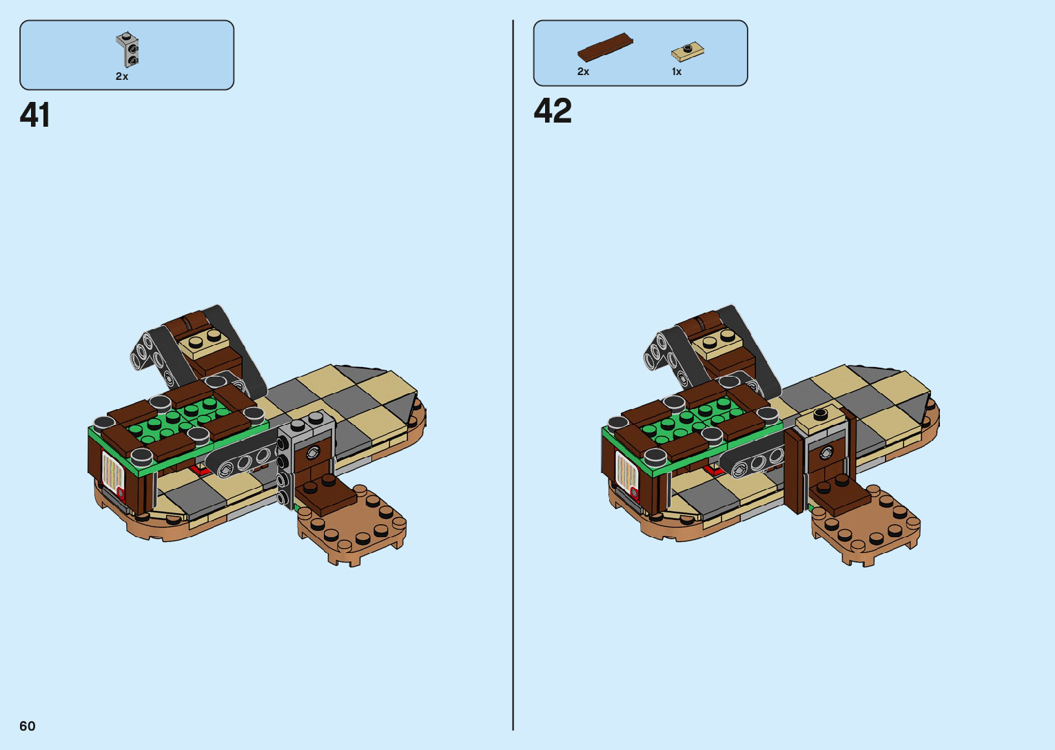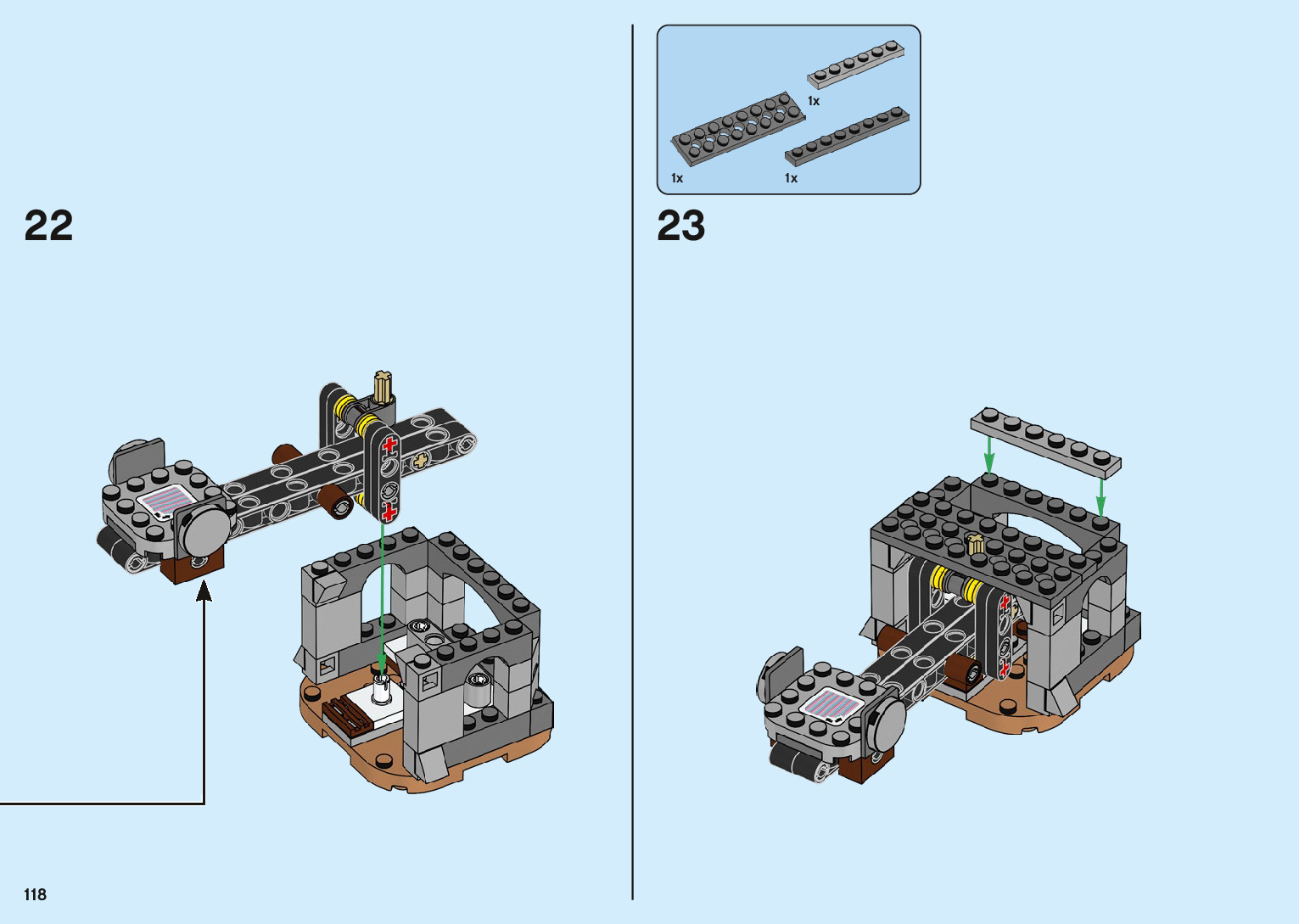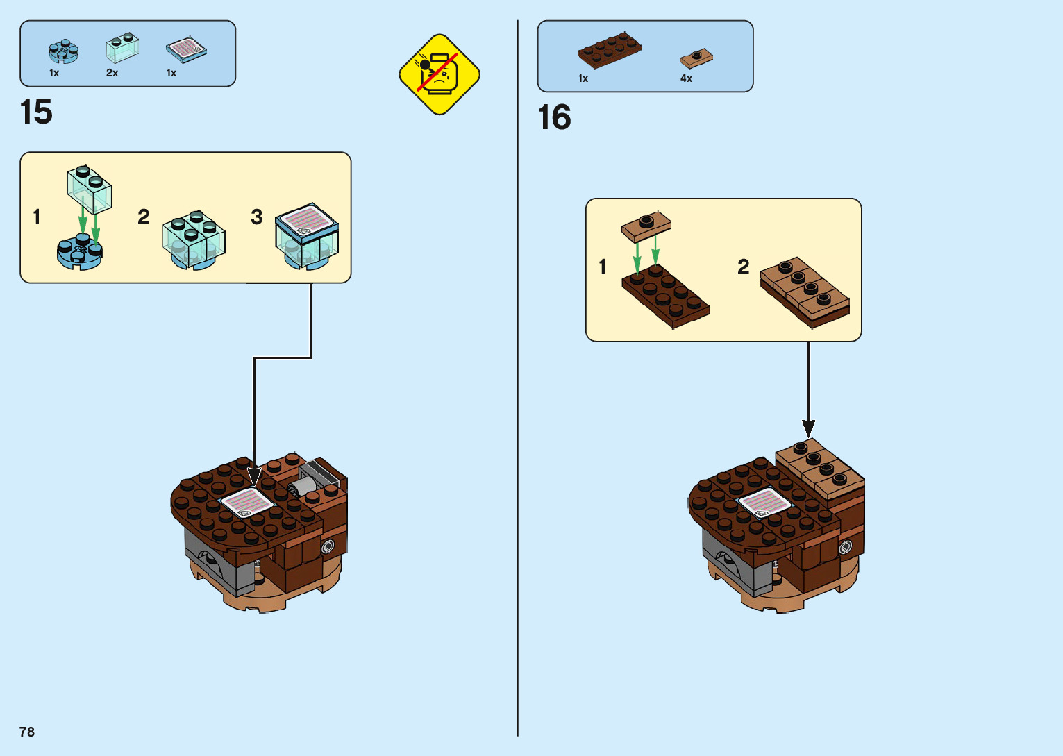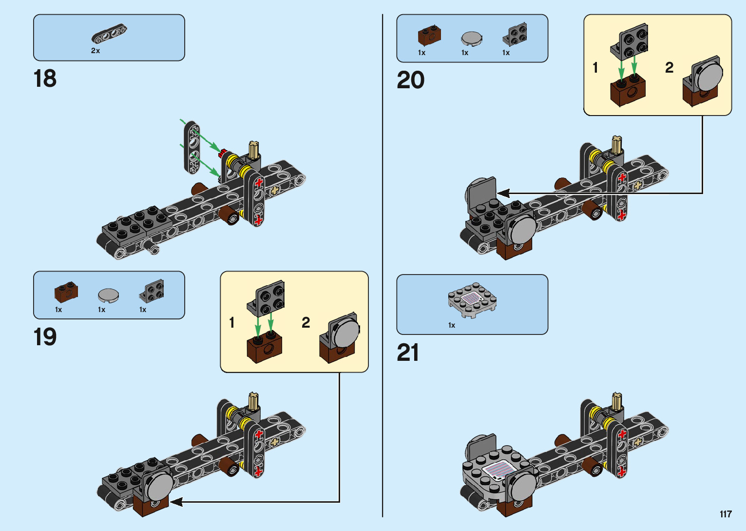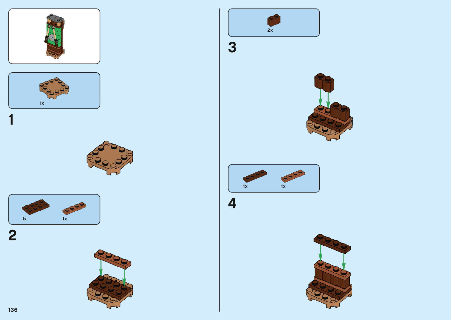 The assembly guide is prepared in a very understandable way for children and adult LEGO enthusiasts. A total of 182 picture galleries are shown, explaining the step-by-step construction stages for 2 different structures.