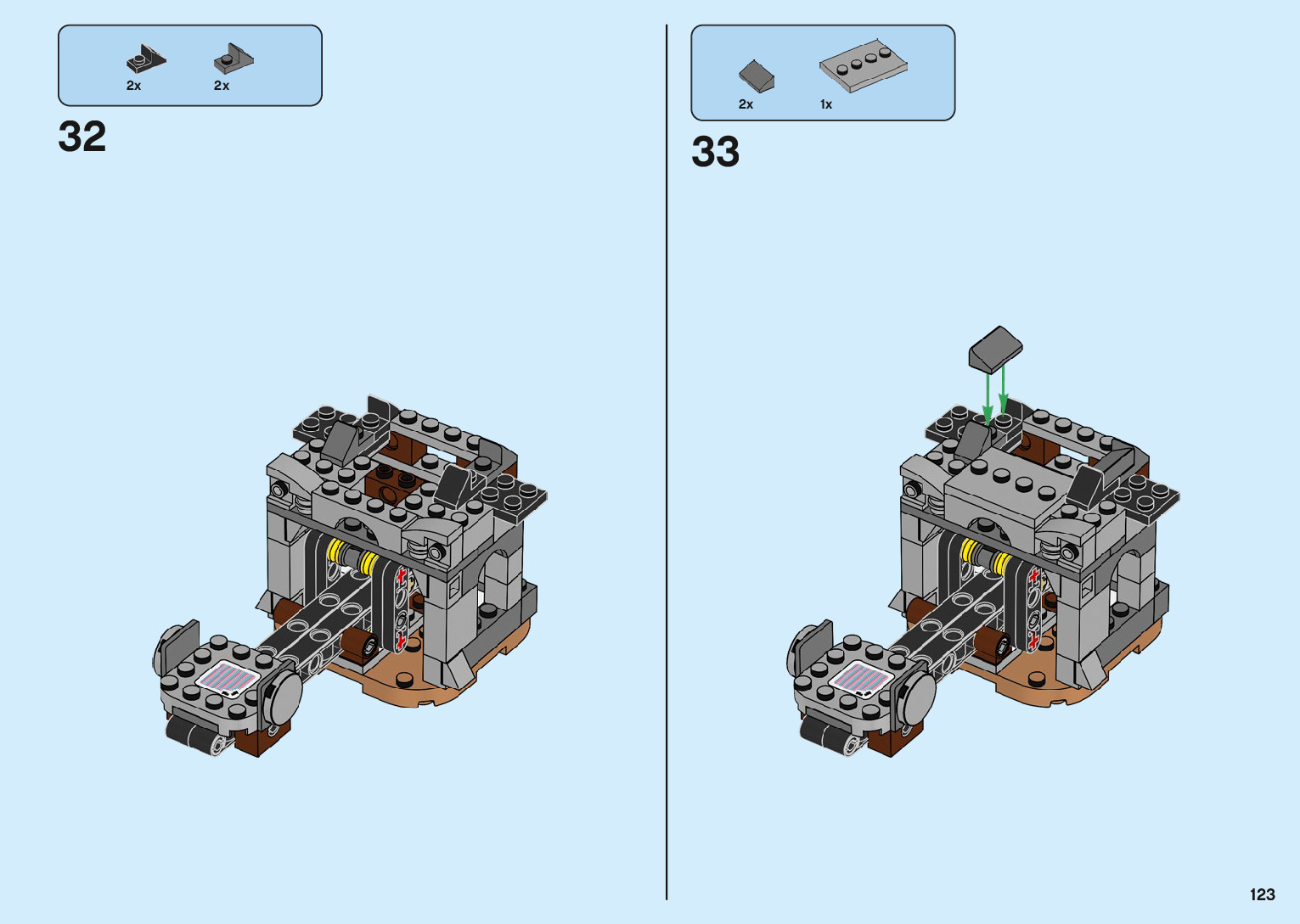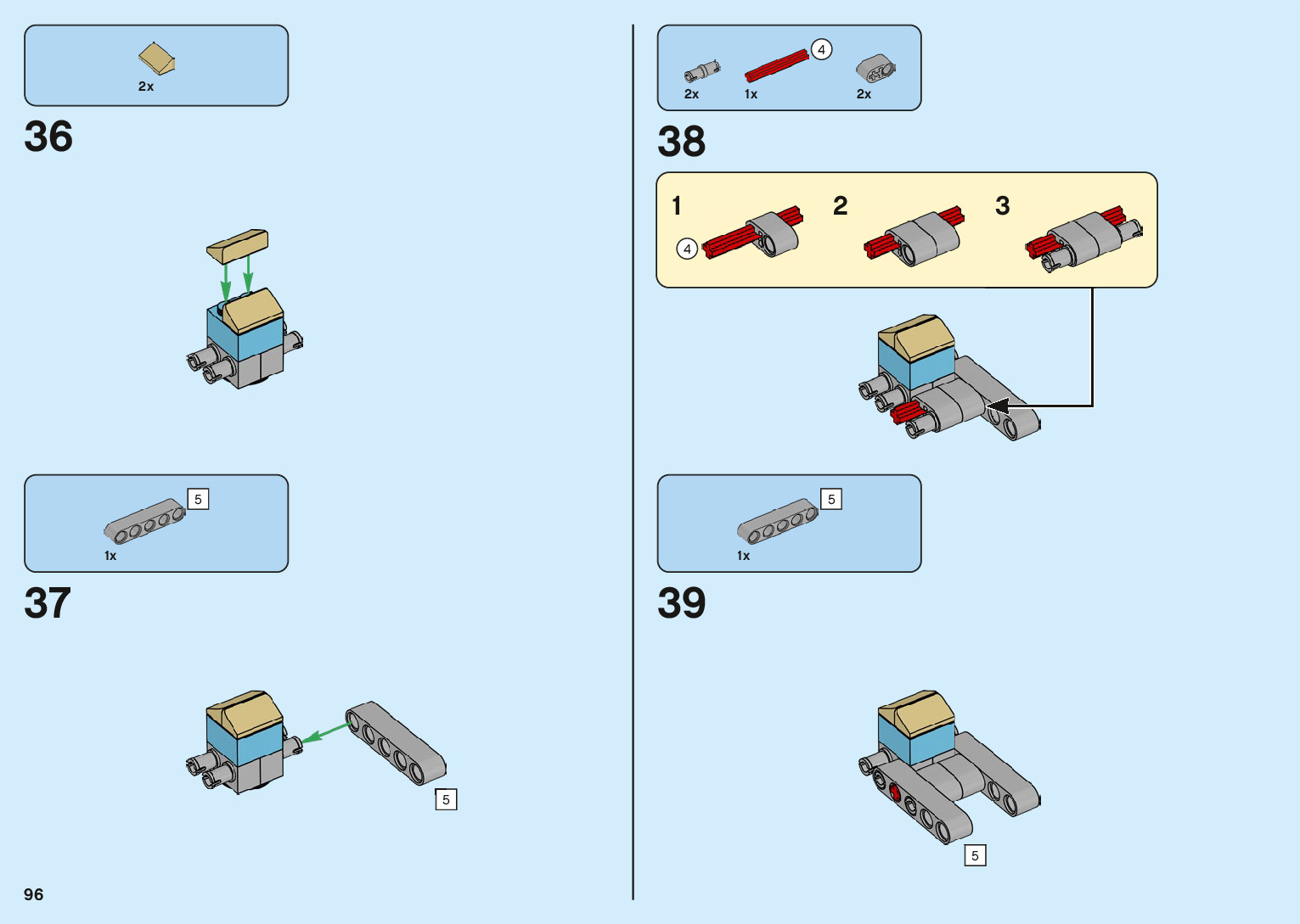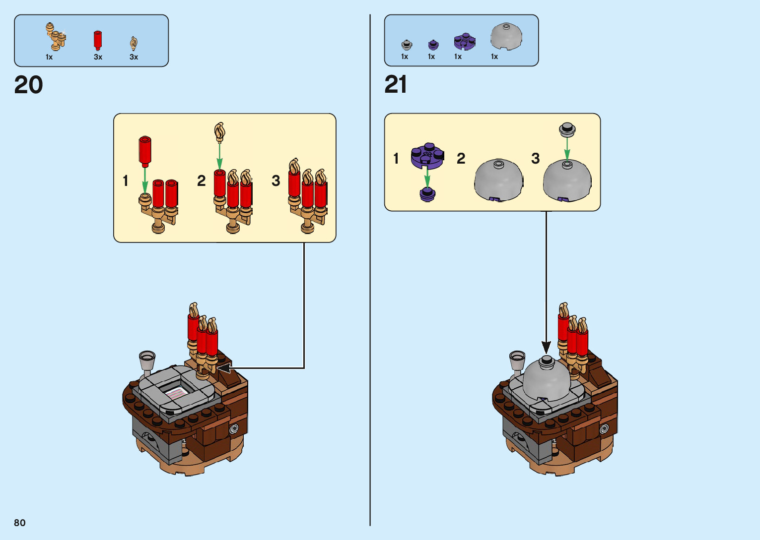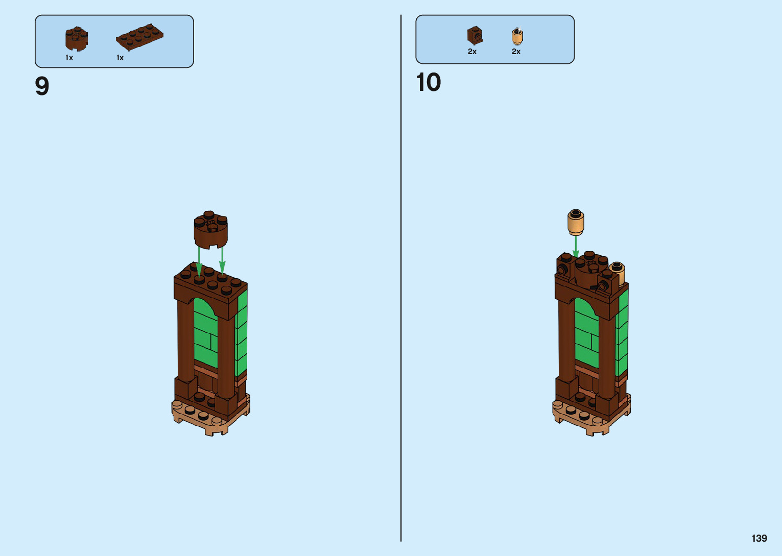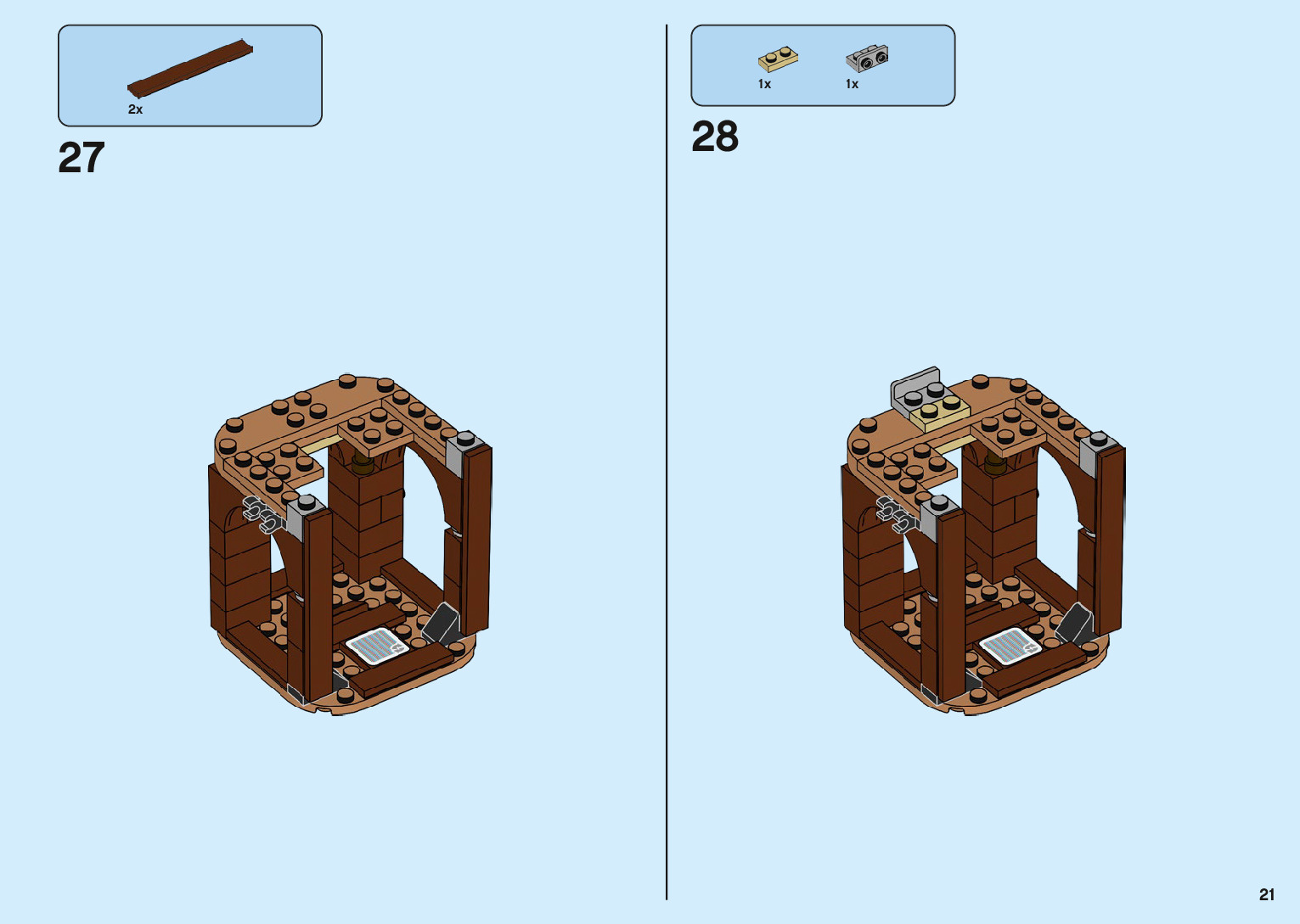 The assembly guide is prepared in a very understandable way for children and adult LEGO enthusiasts. A total of 182 picture galleries are shown, explaining the step-by-step construction stages for 2 different structures.