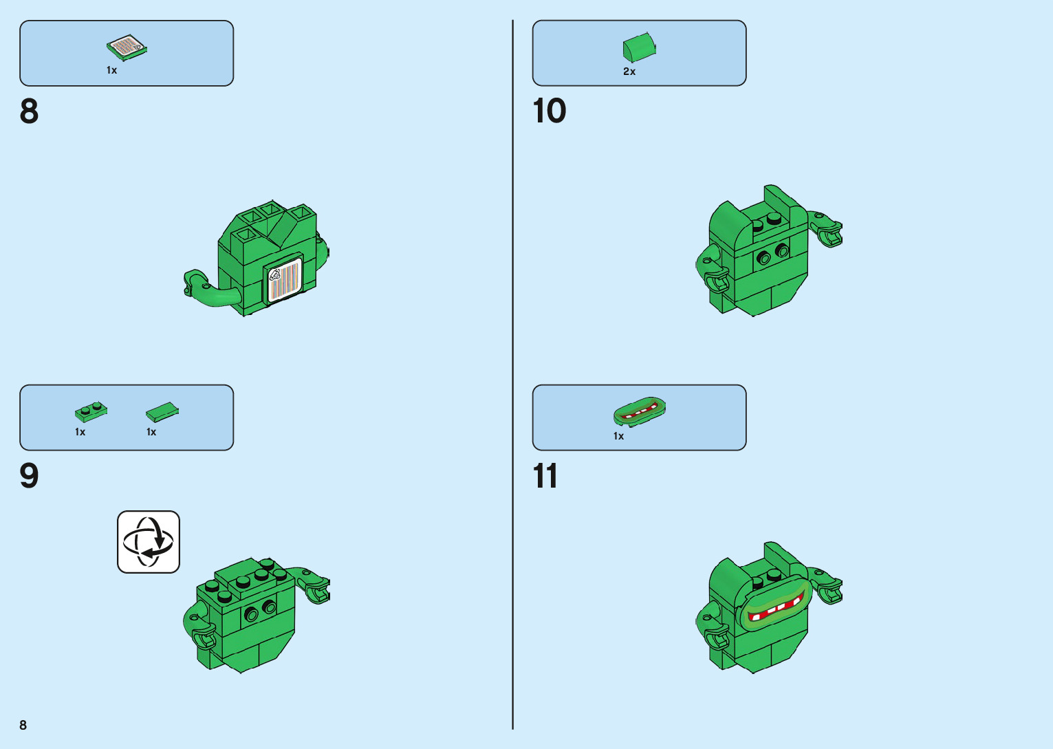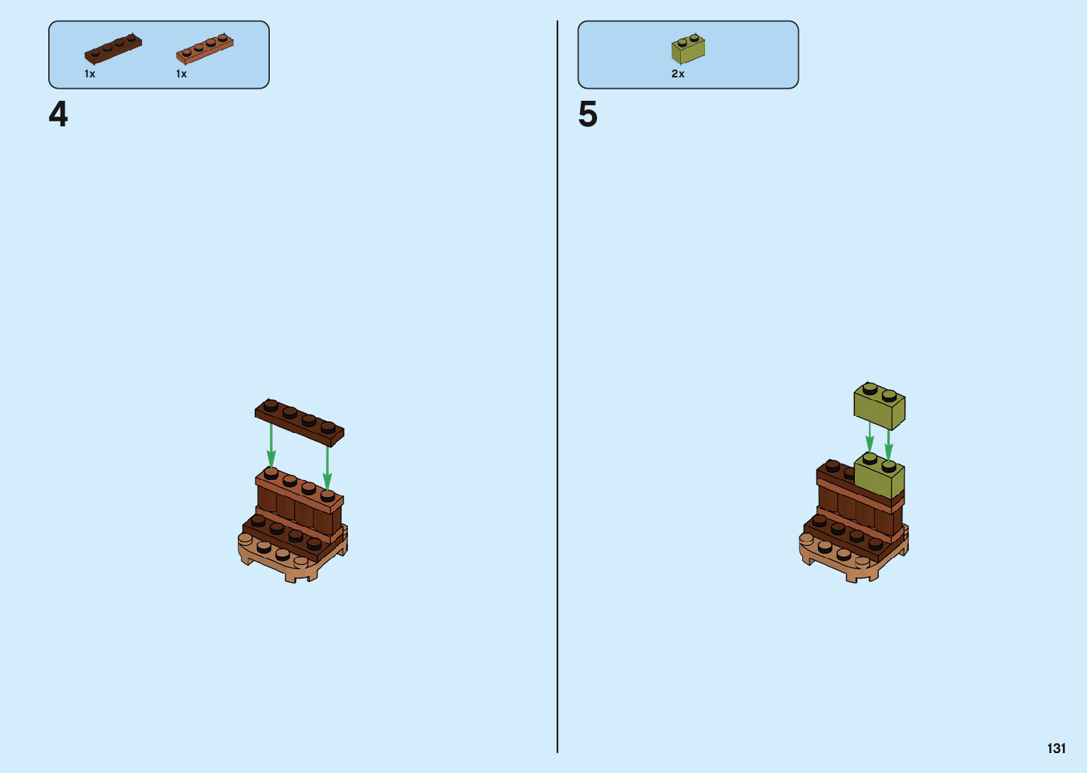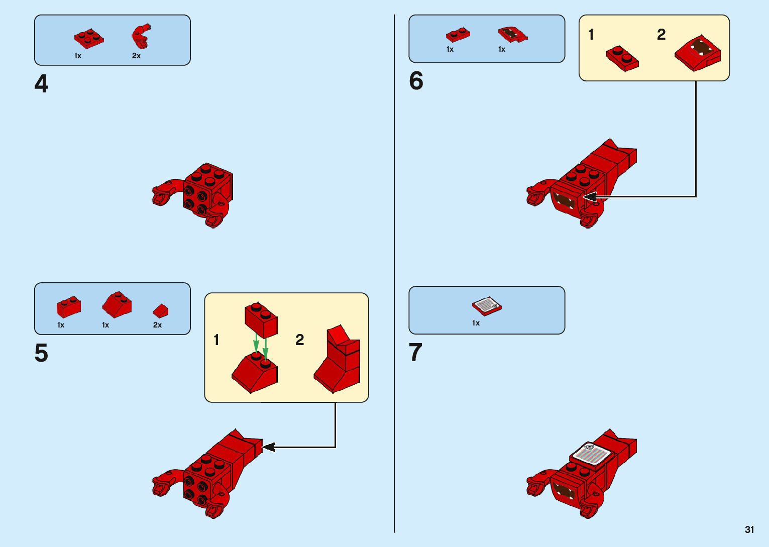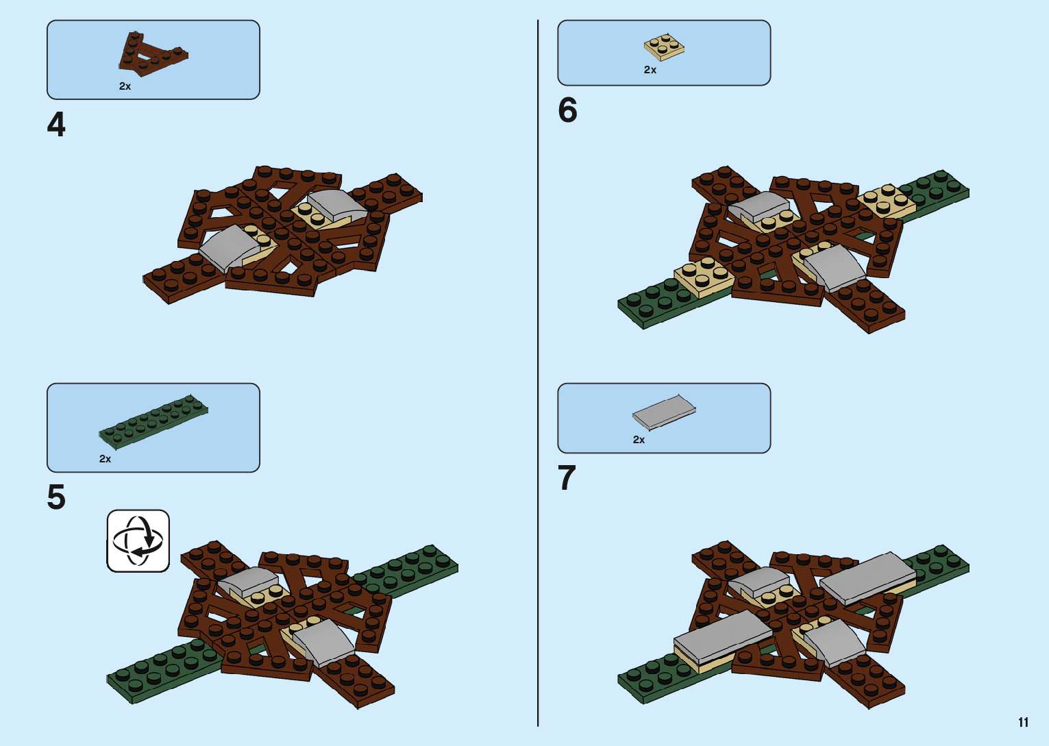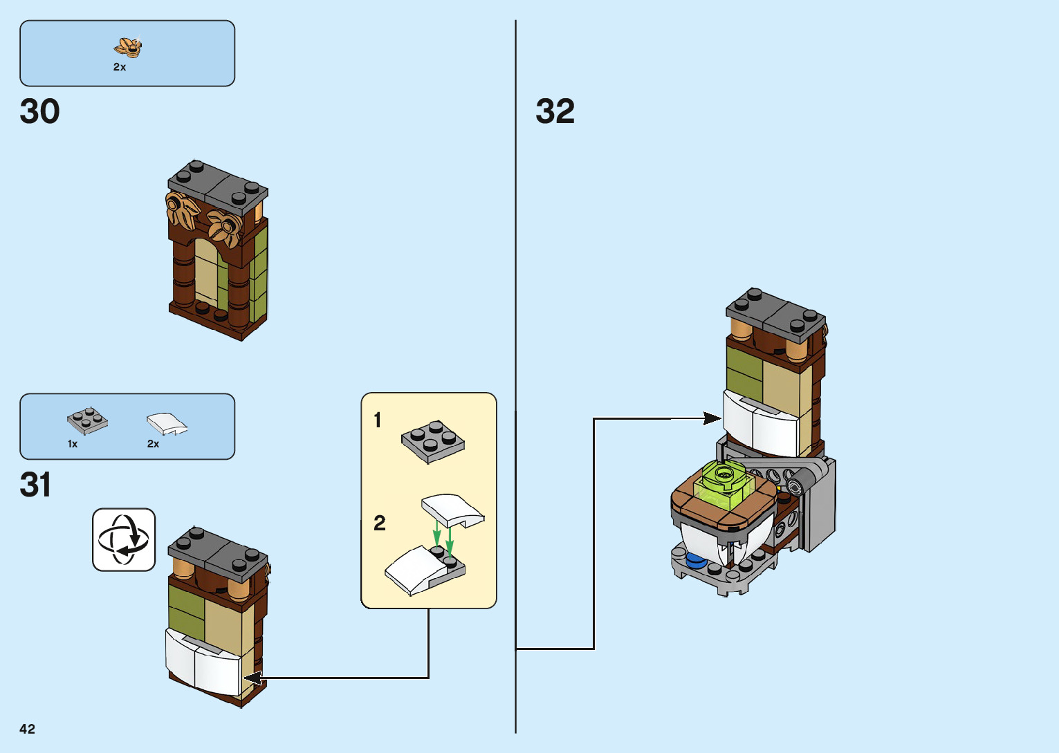 The assembly guide is prepared in a very understandable way for children and adult LEGO enthusiasts. A total of 182 picture galleries are shown, explaining the step-by-step construction stages for 2 different structures.