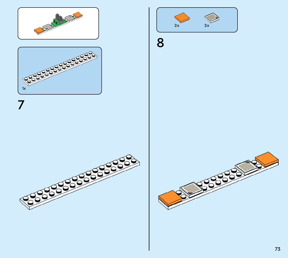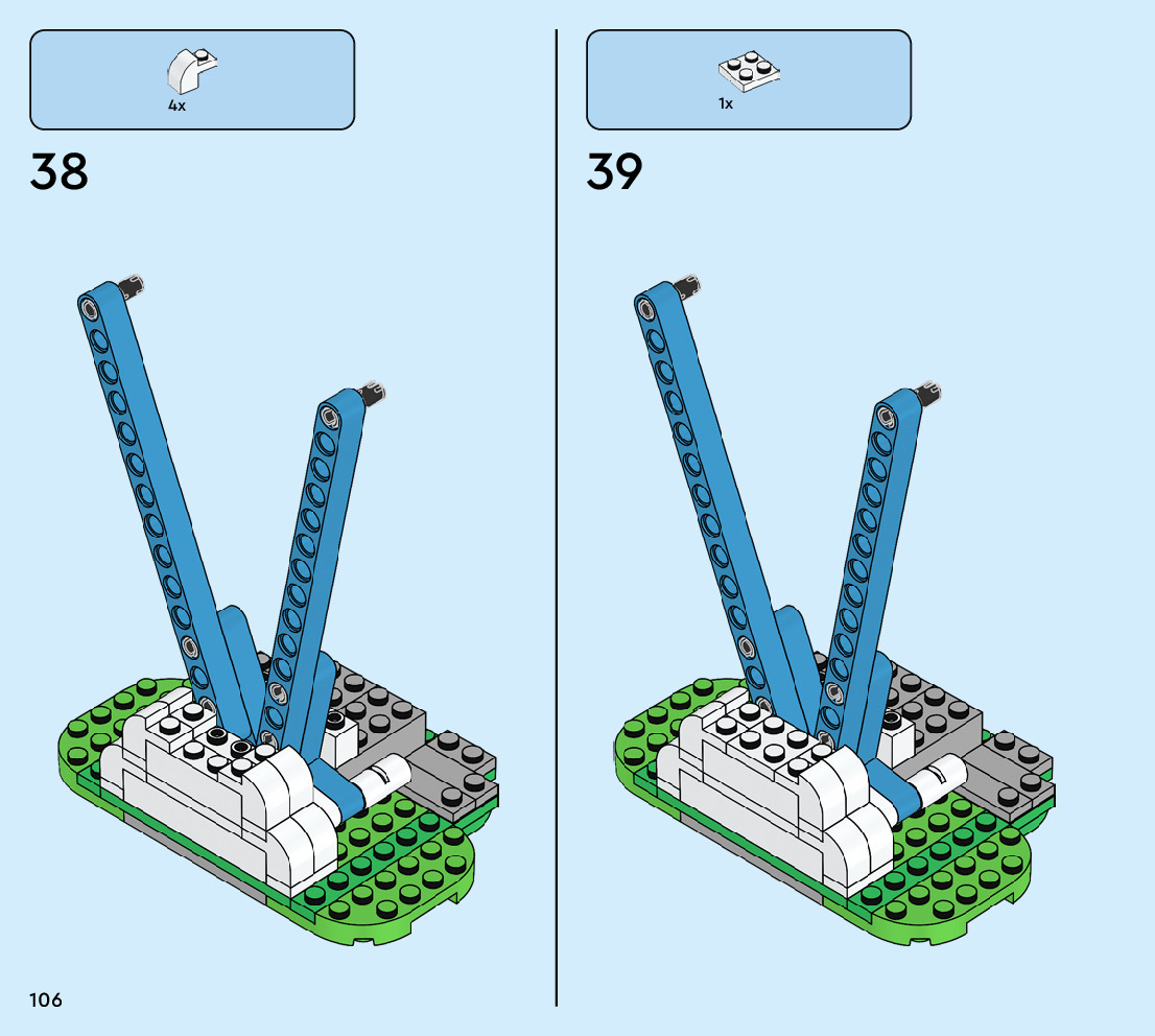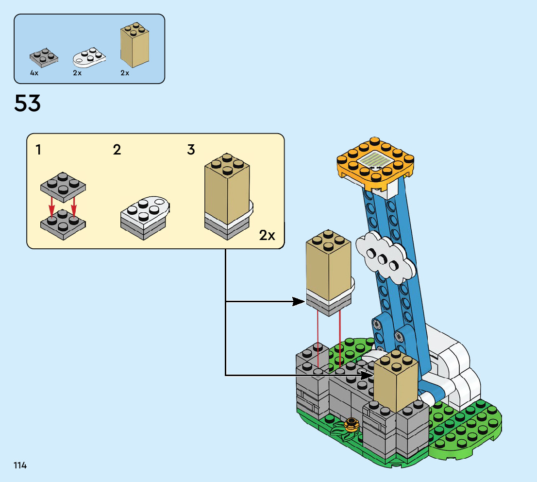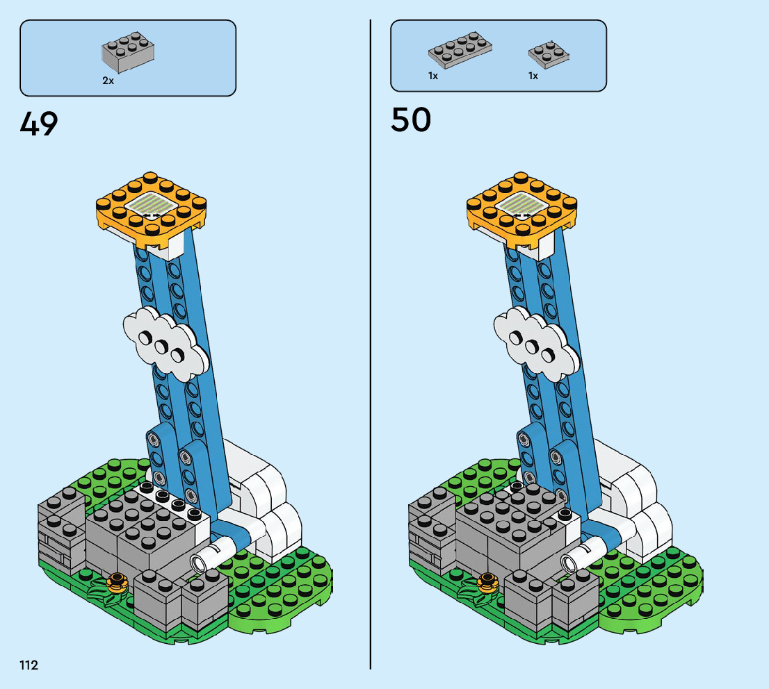 The assembly guide is prepared in a very understandable way for children and adult LEGO enthusiasts. A total of 156 picture galleries are shown, explaining the step-by-step construction stages for 2 different structures.