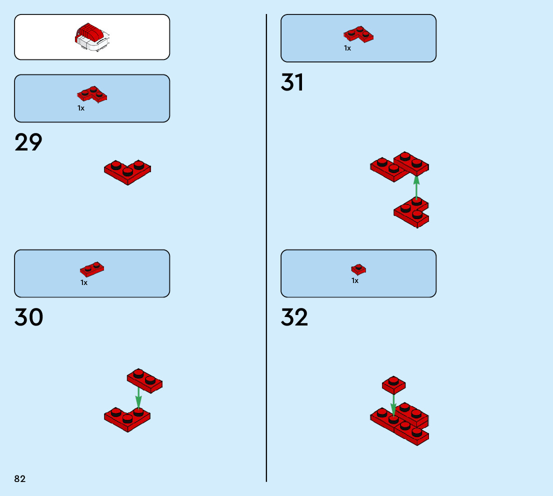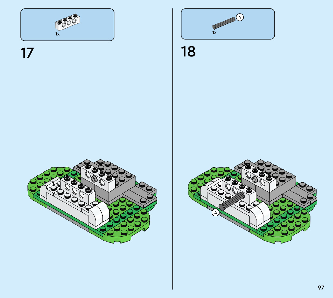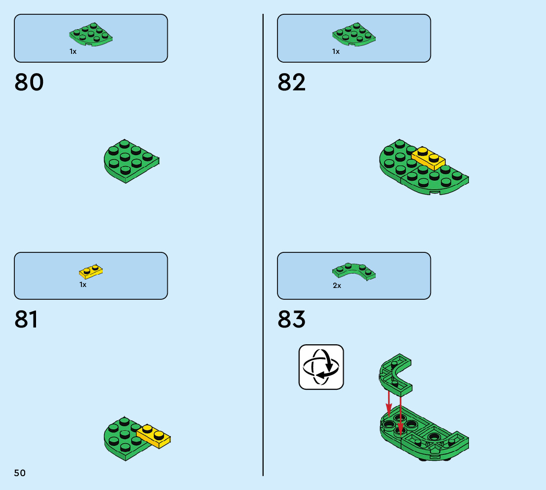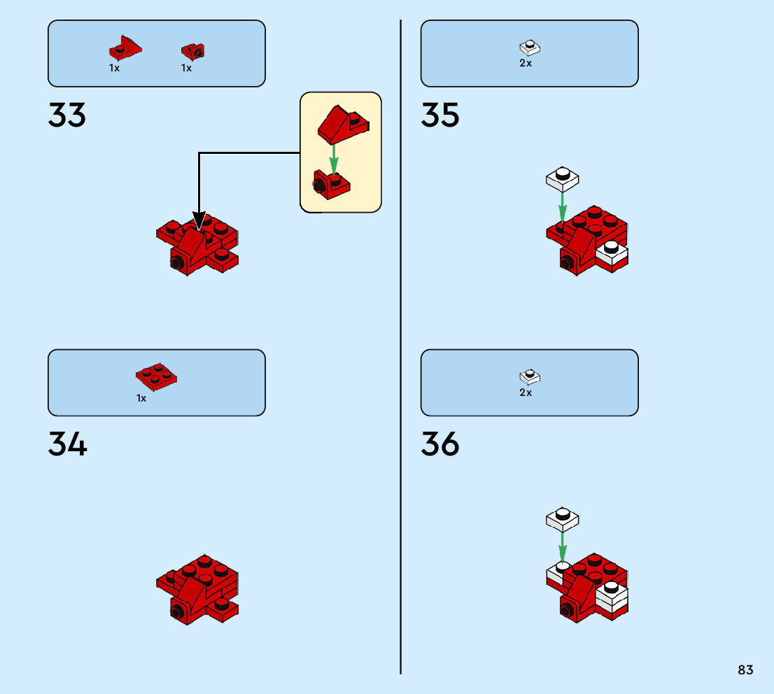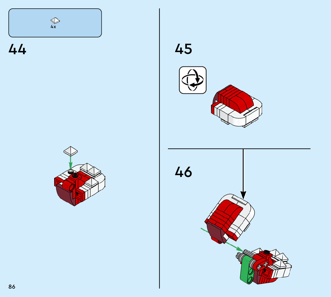 The assembly guide is prepared in a very understandable way for children and adult LEGO enthusiasts. A total of 156 picture galleries are shown, explaining the step-by-step construction stages for 2 different structures.