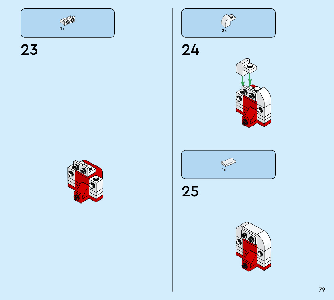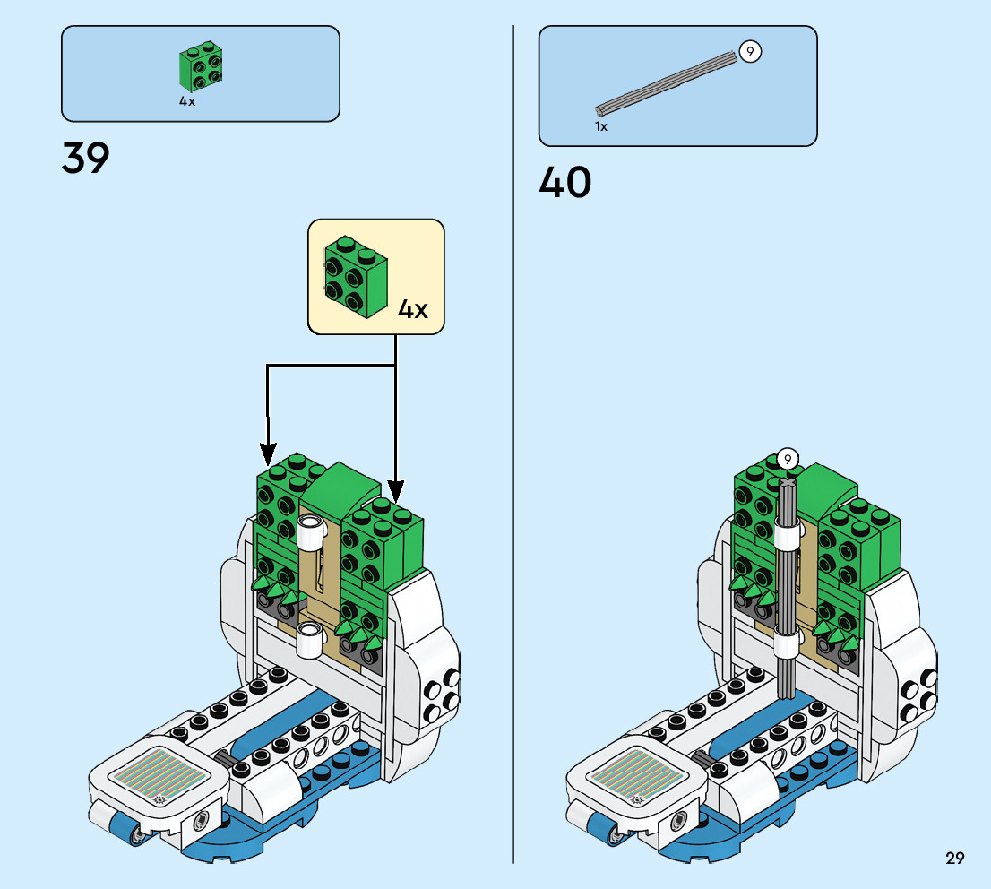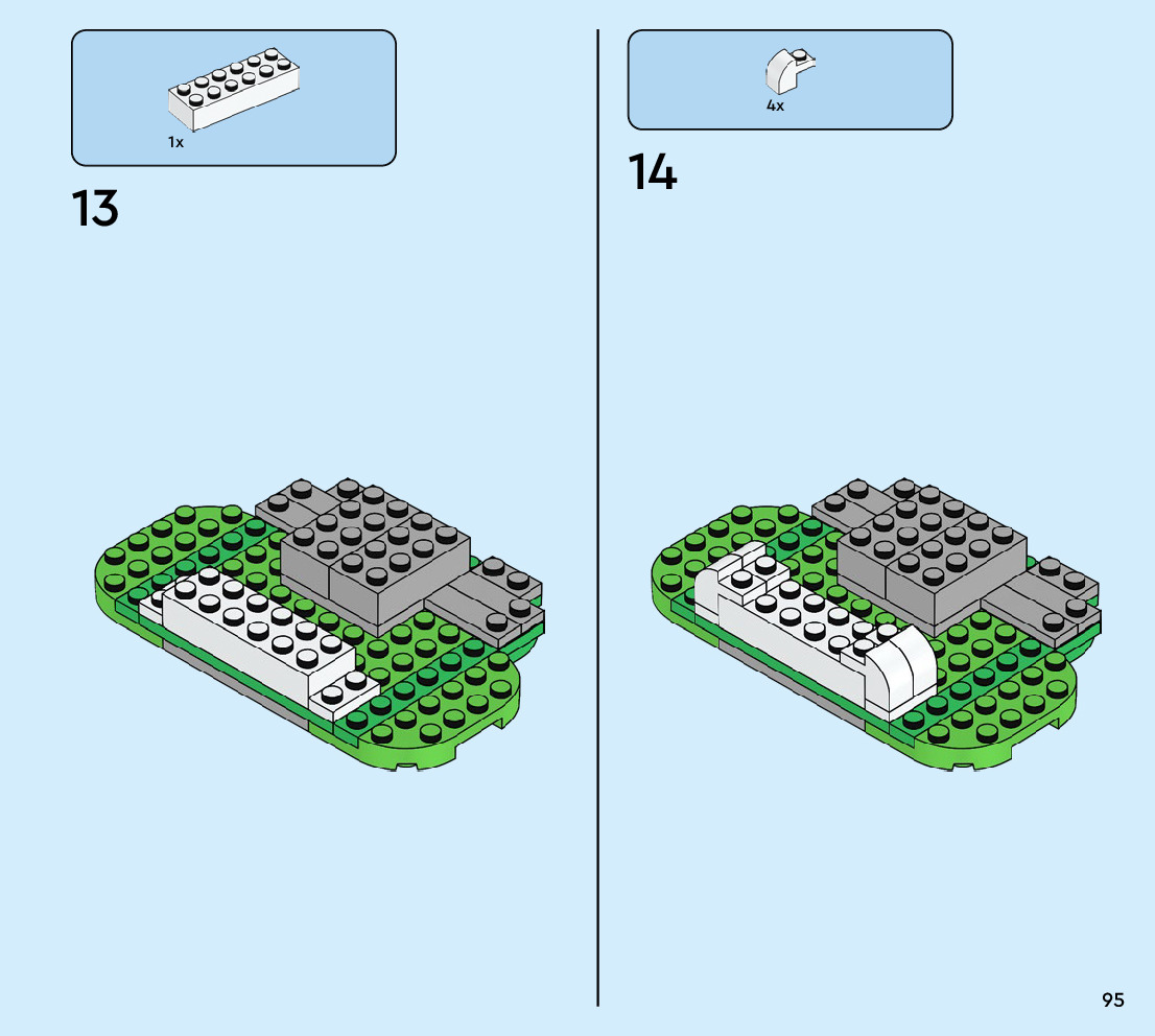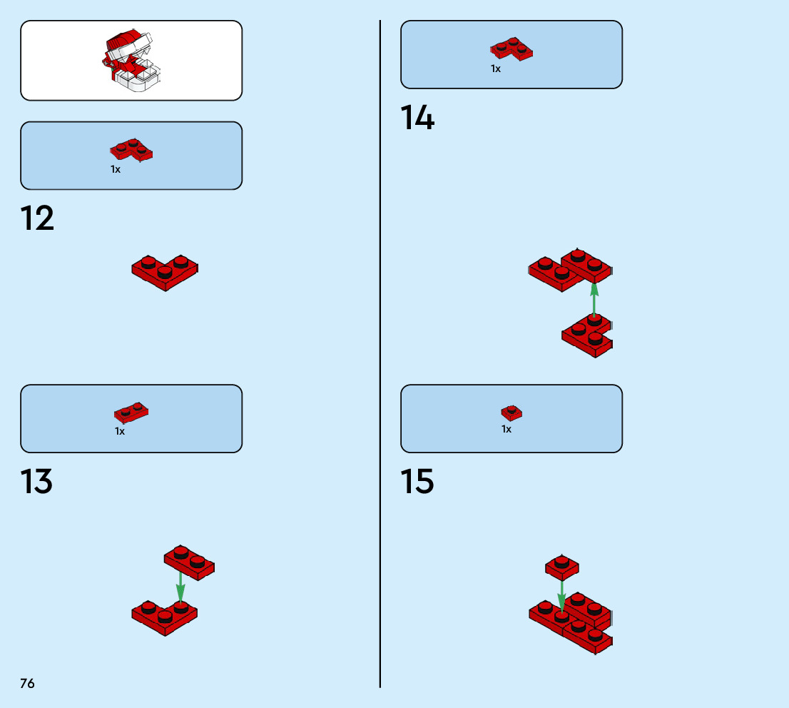 The assembly guide is prepared in a very understandable way for children and adult LEGO enthusiasts. A total of 156 picture galleries are shown, explaining the step-by-step construction stages for 2 different structures.