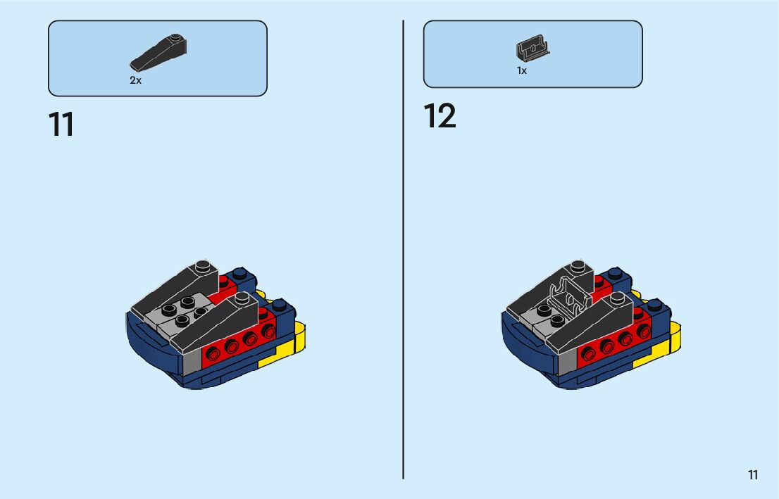 The assembly guide is prepared in a very understandable way for children and adult LEGO enthusiasts. A total of 63 picture galleries are shown, explaining the step-by-step construction stages for 2 different structures.