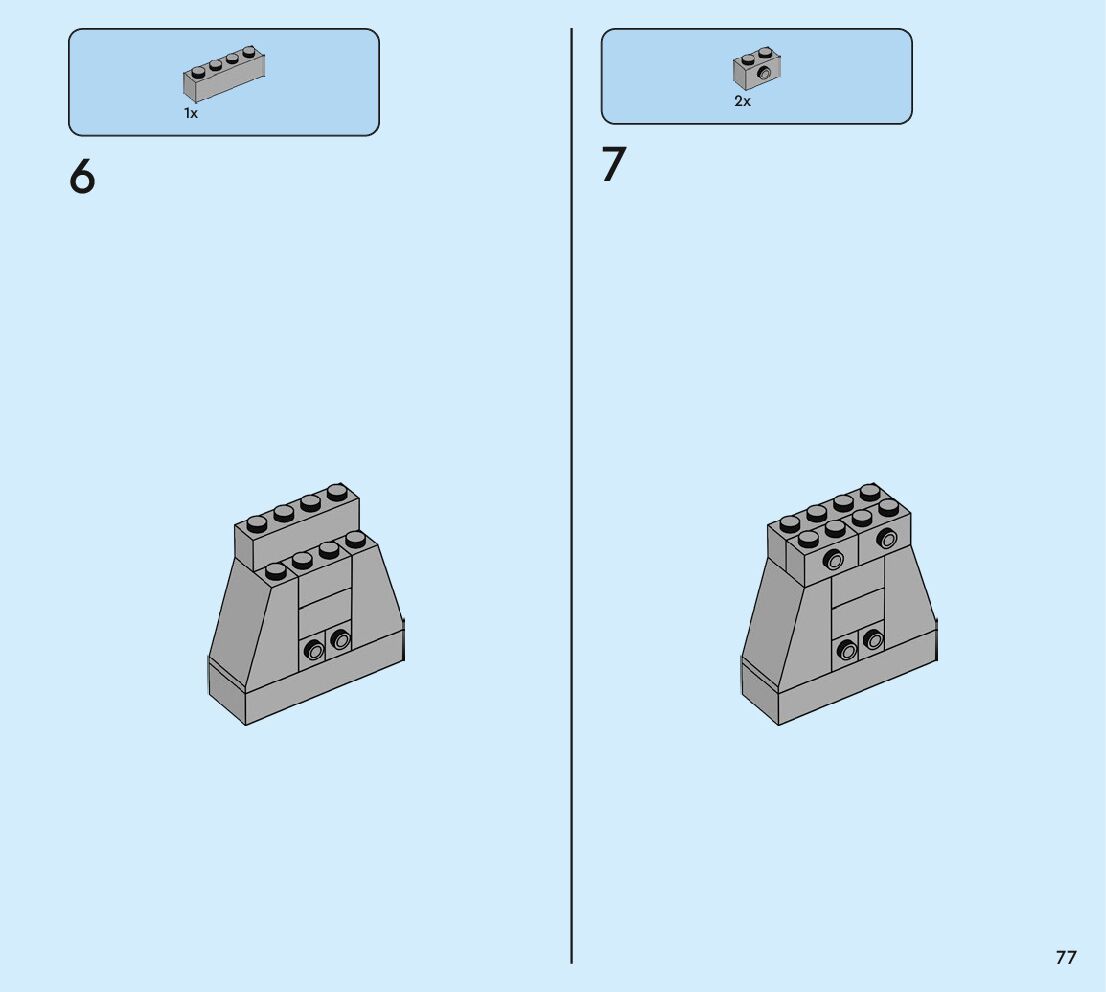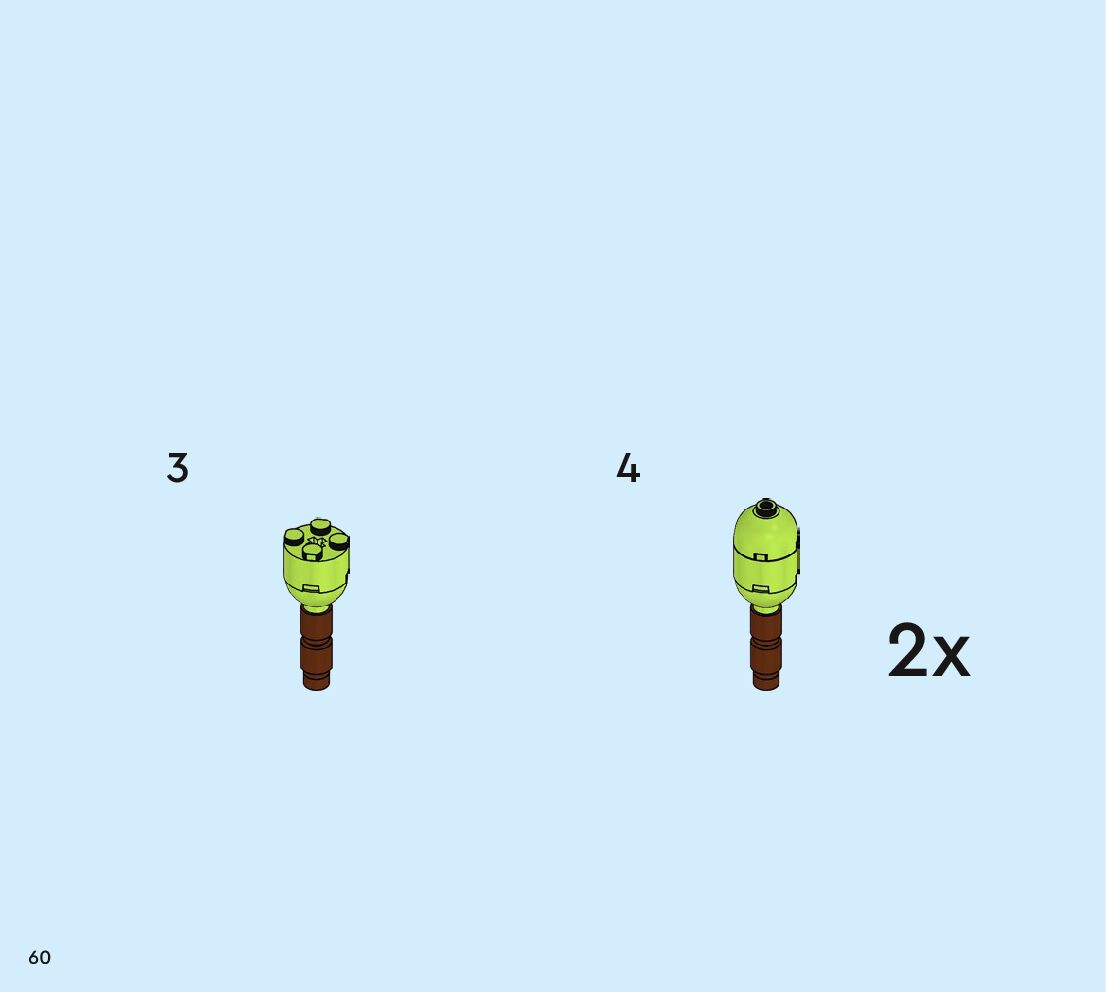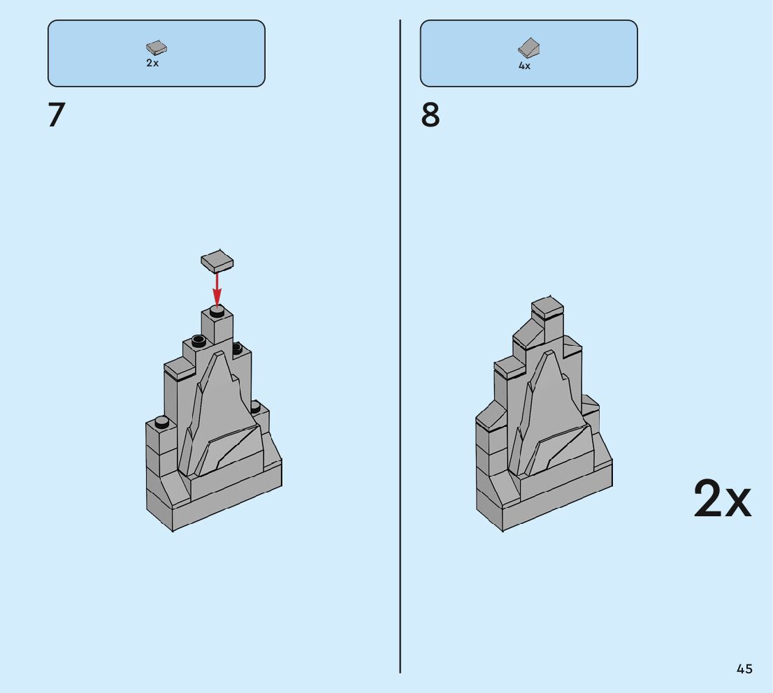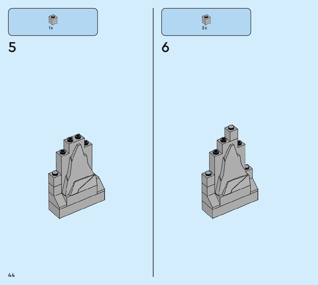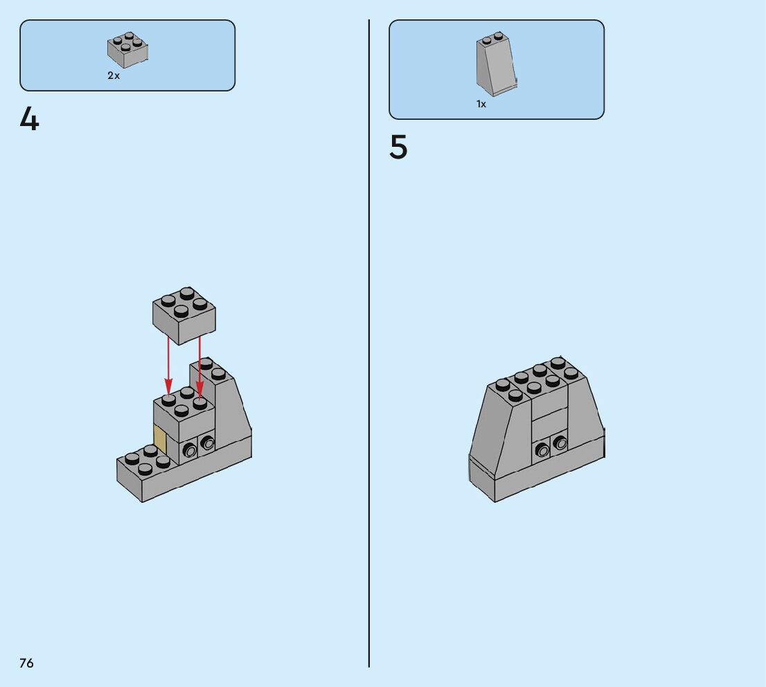 The assembly guide is prepared in a very understandable way for children and adult LEGO enthusiasts. A total of 160 picture galleries are shown, explaining the step-by-step construction stages for 2 different structures.