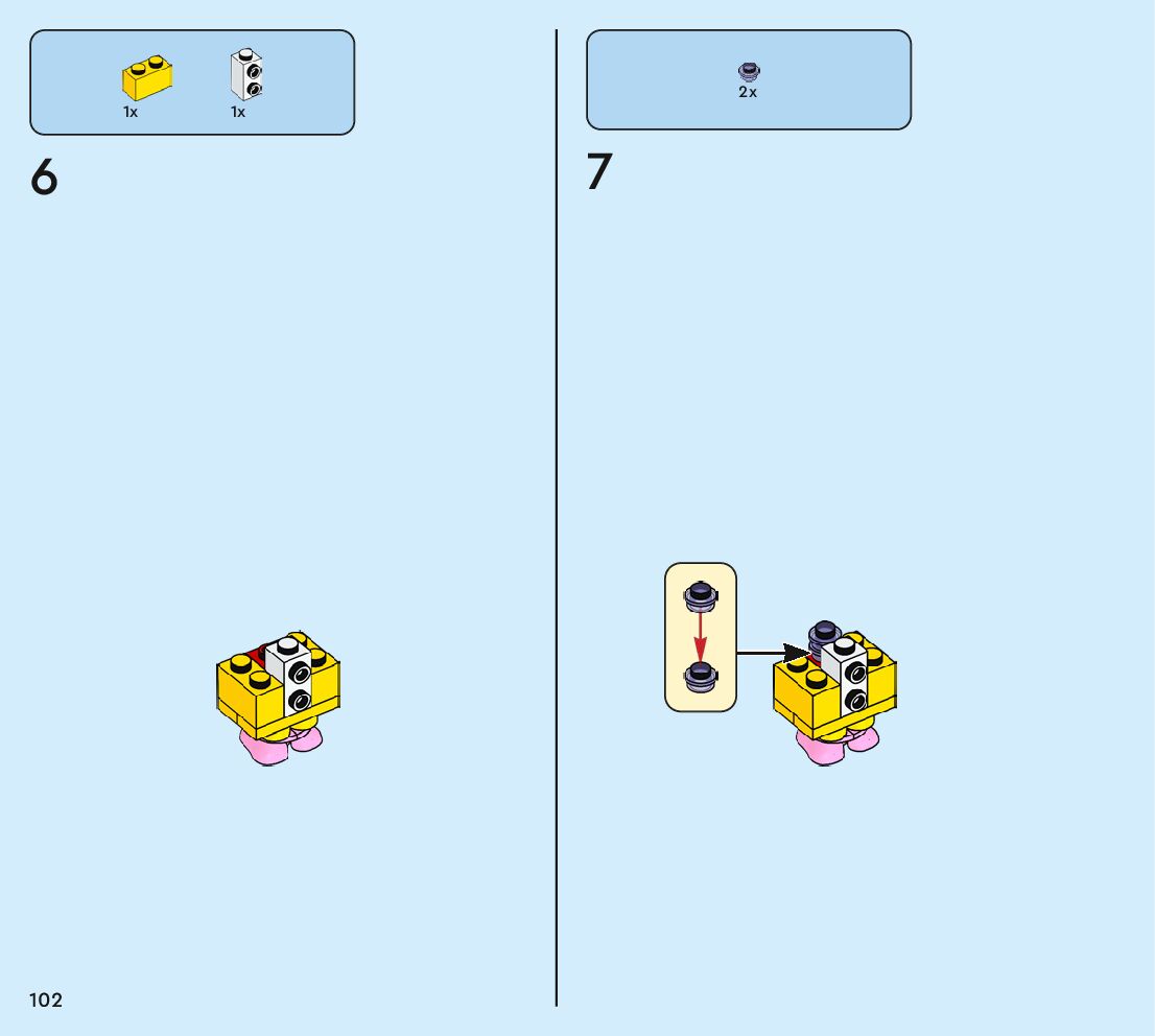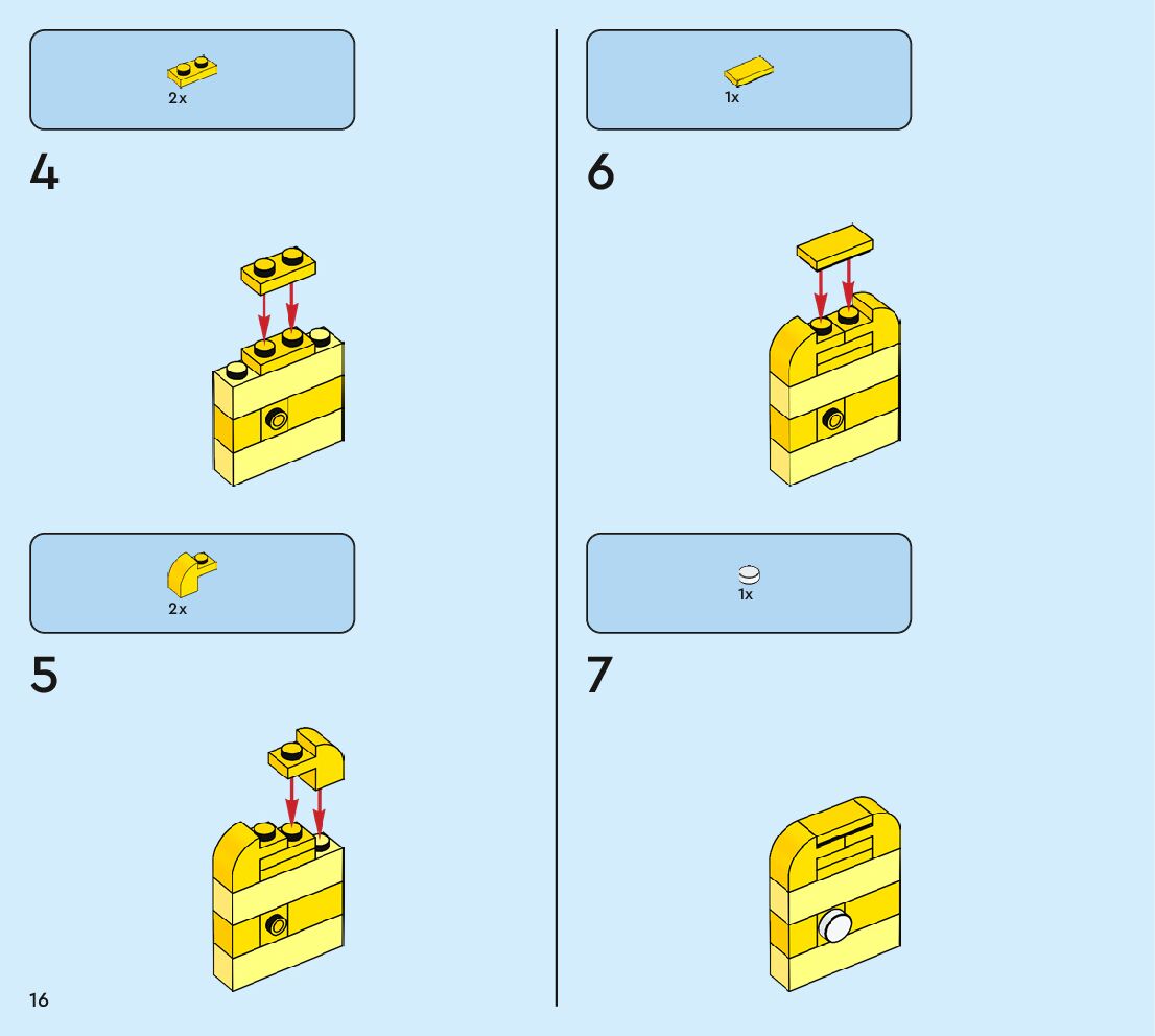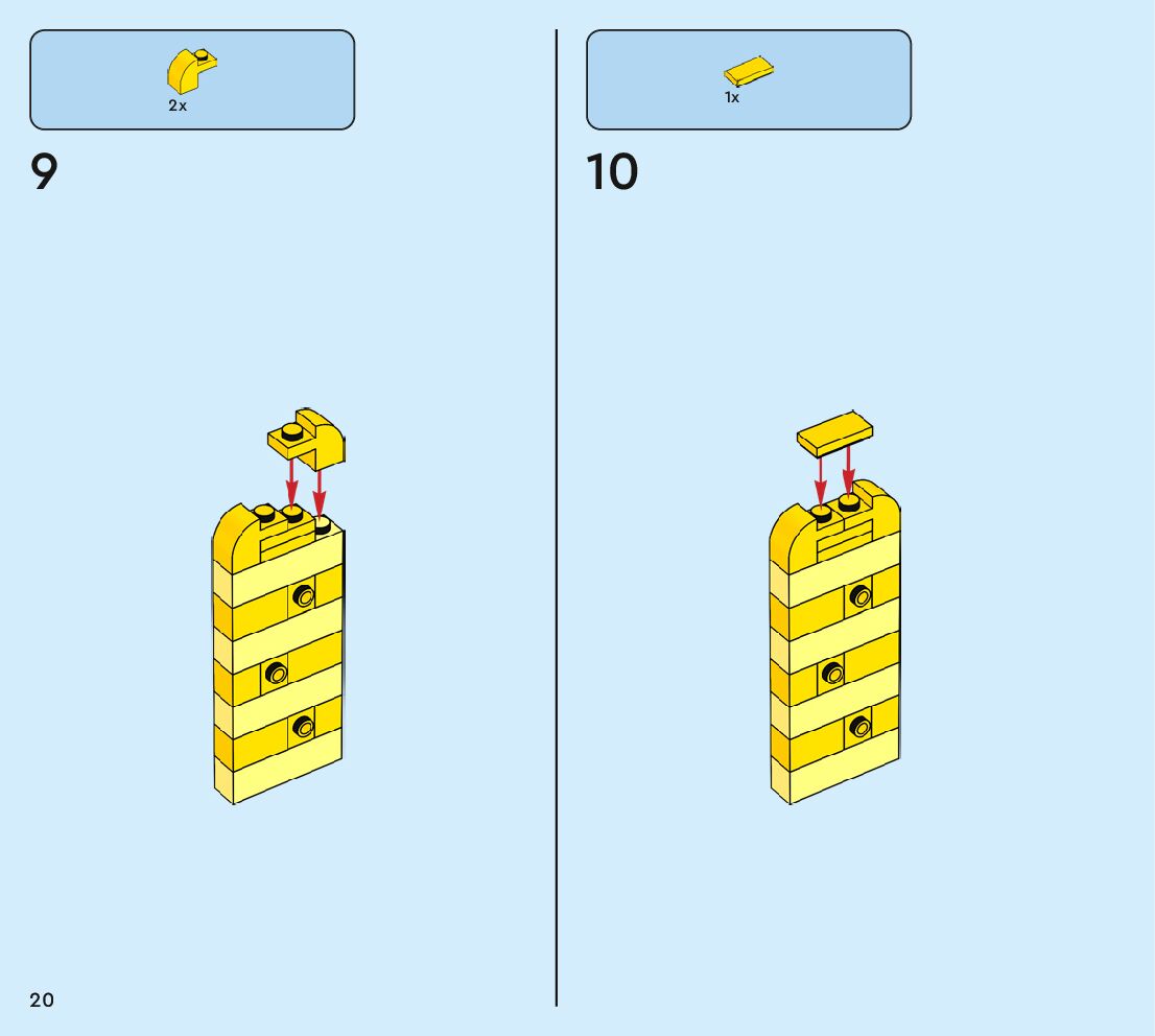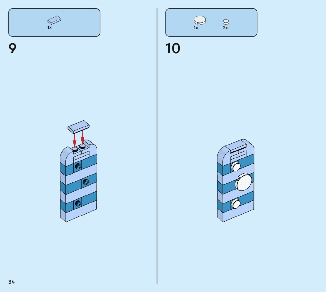 The assembly guide is prepared in a very understandable way for children and adult LEGO enthusiasts. A total of 160 picture galleries are shown, explaining the step-by-step construction stages for 2 different structures.