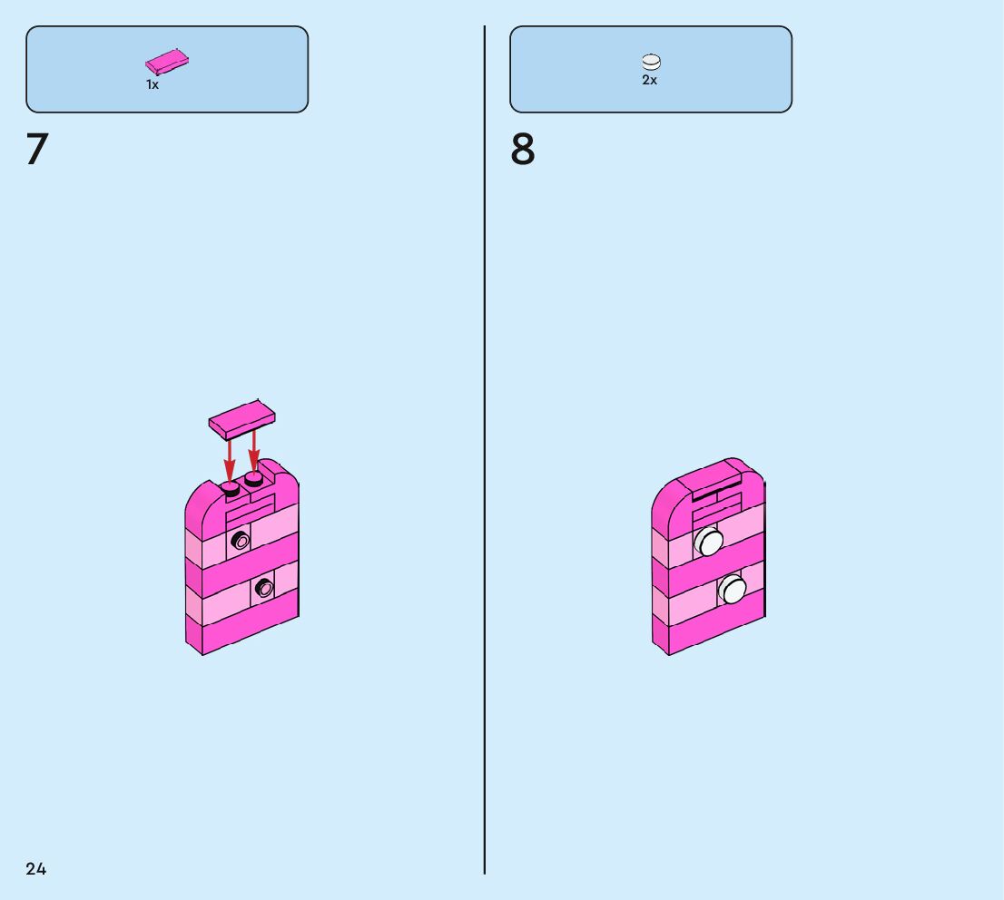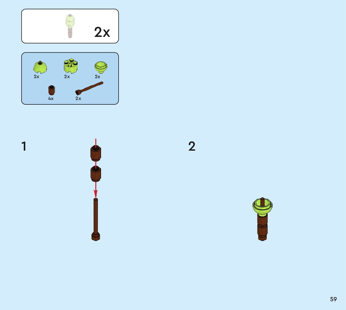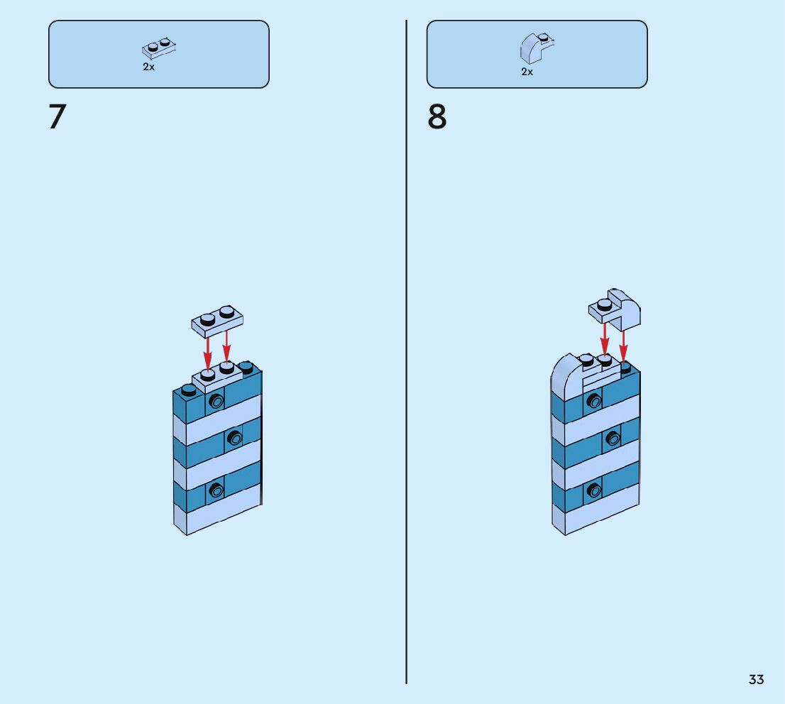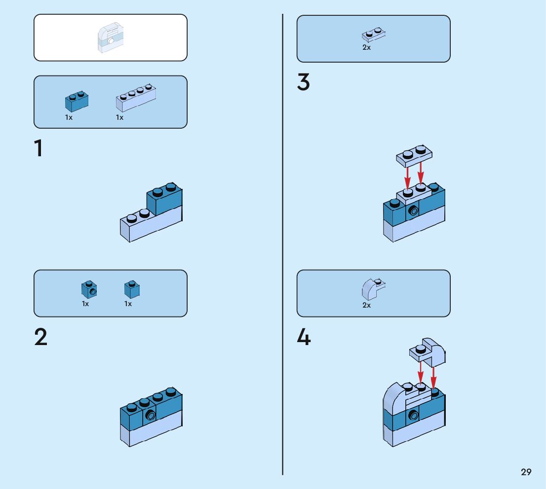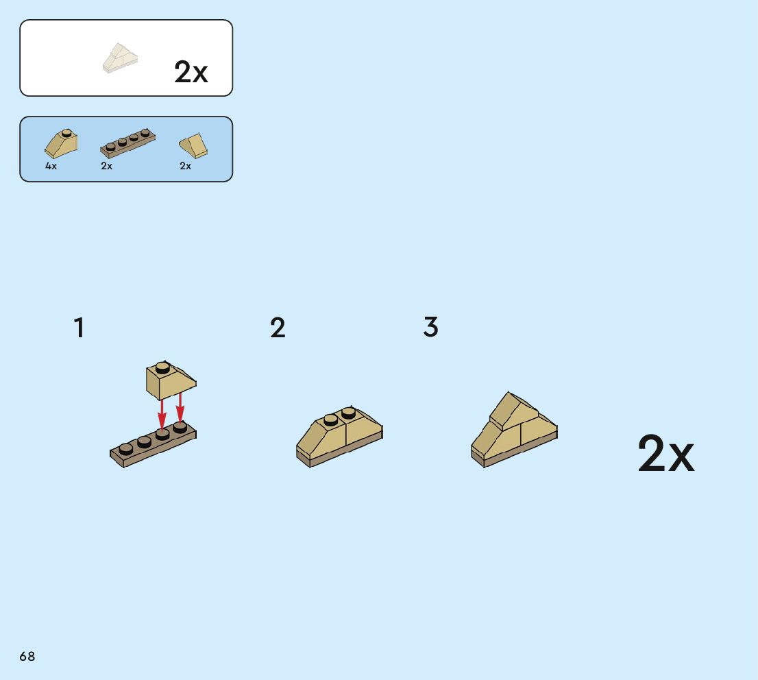 The assembly guide is prepared in a very understandable way for children and adult LEGO enthusiasts. A total of 160 picture galleries are shown, explaining the step-by-step construction stages for 2 different structures.