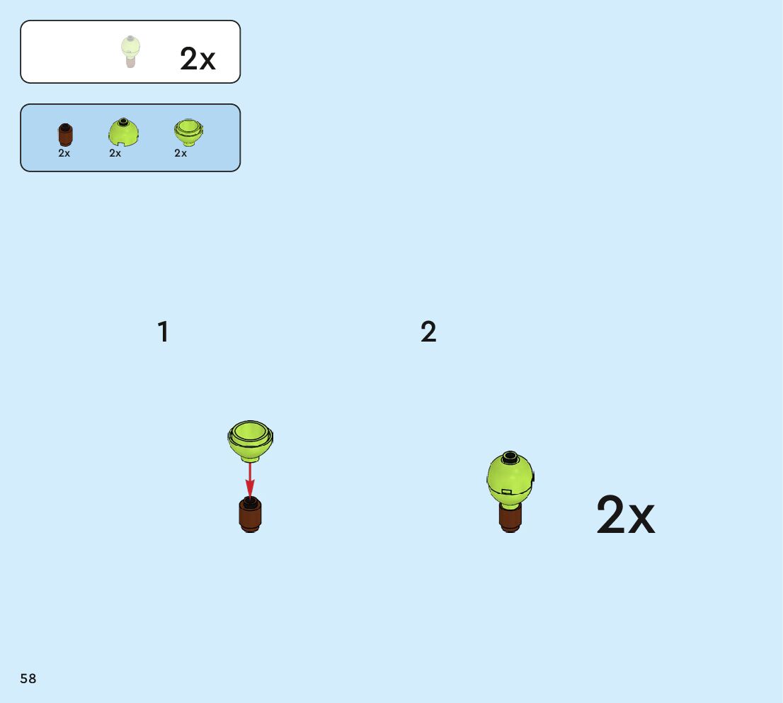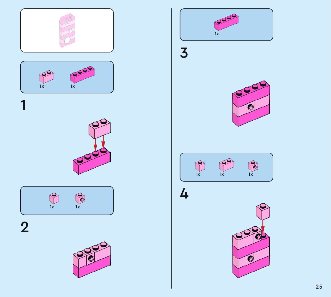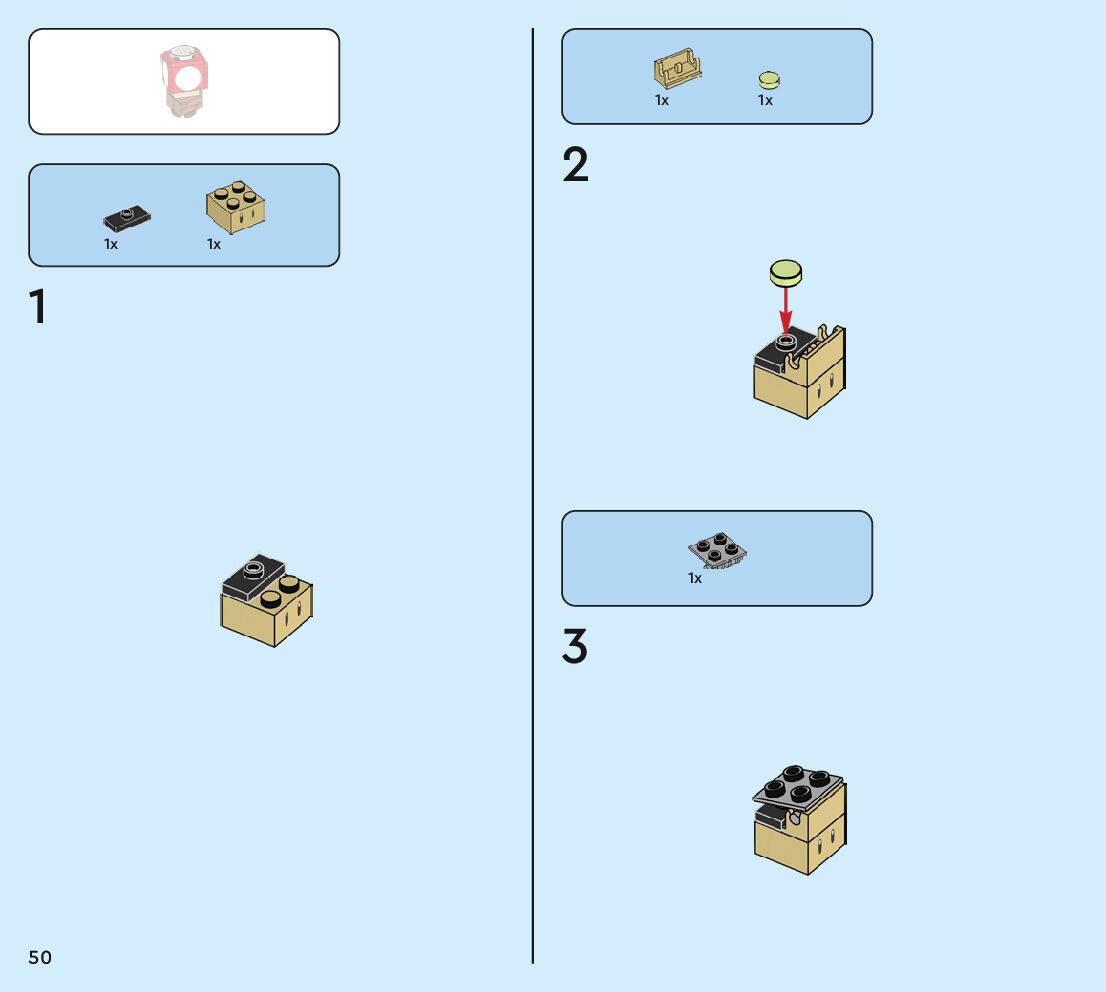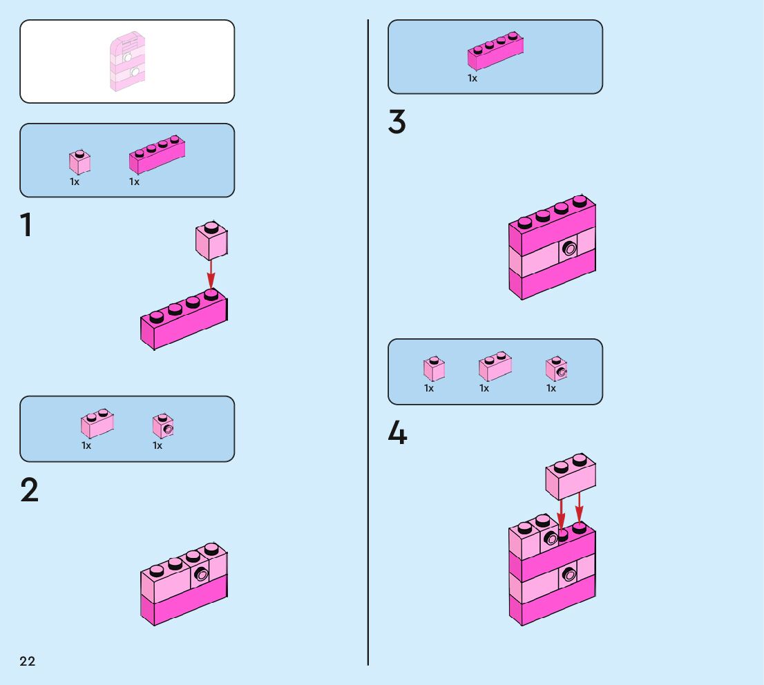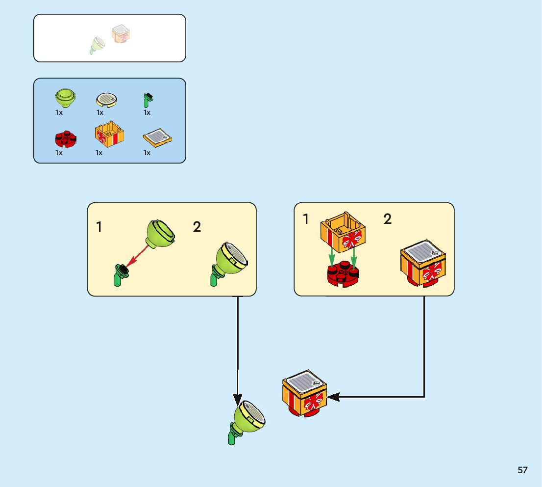 The assembly guide is prepared in a very understandable way for children and adult LEGO enthusiasts. A total of 160 picture galleries are shown, explaining the step-by-step construction stages for 2 different structures.