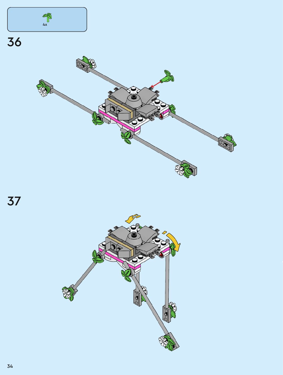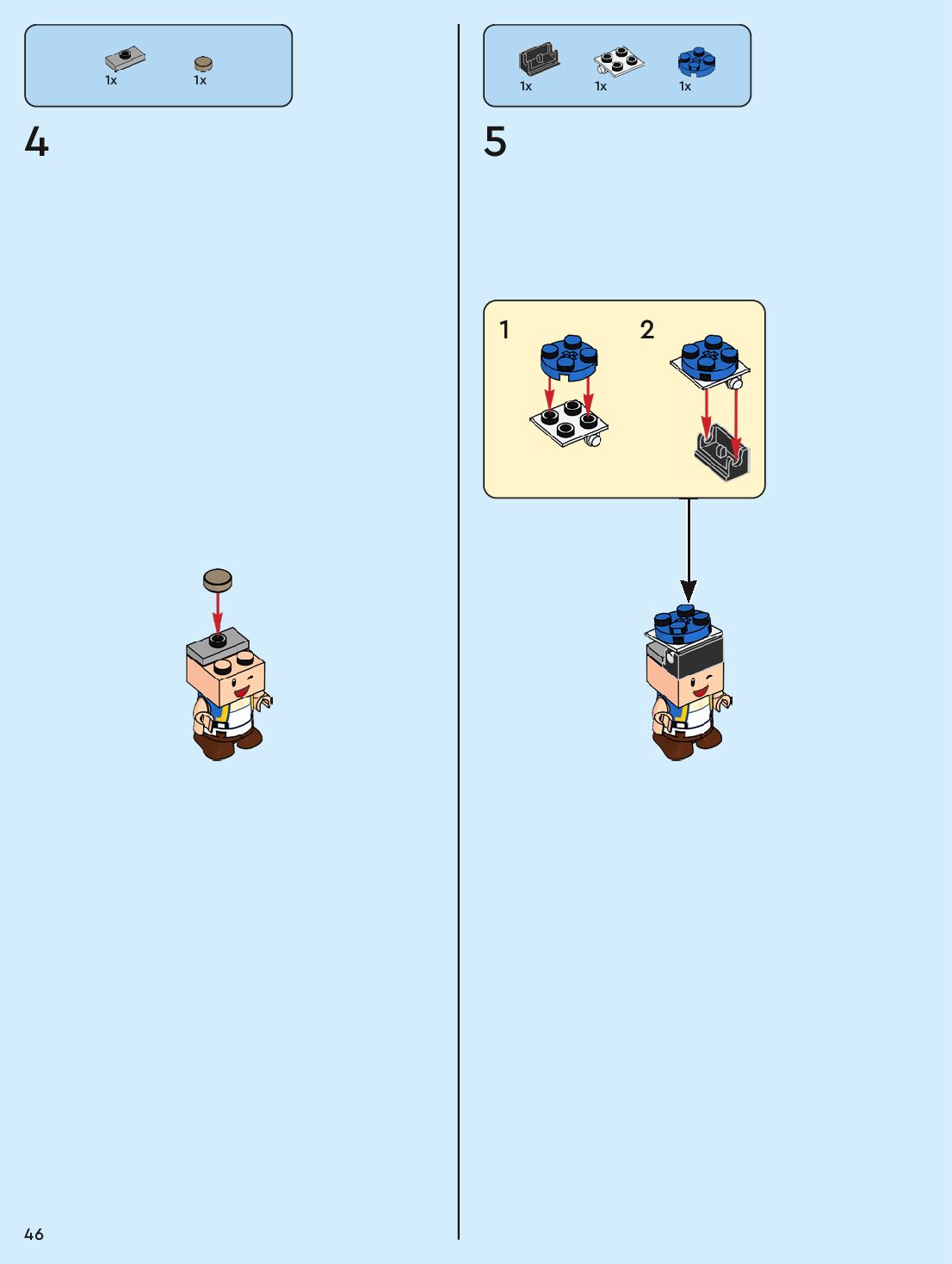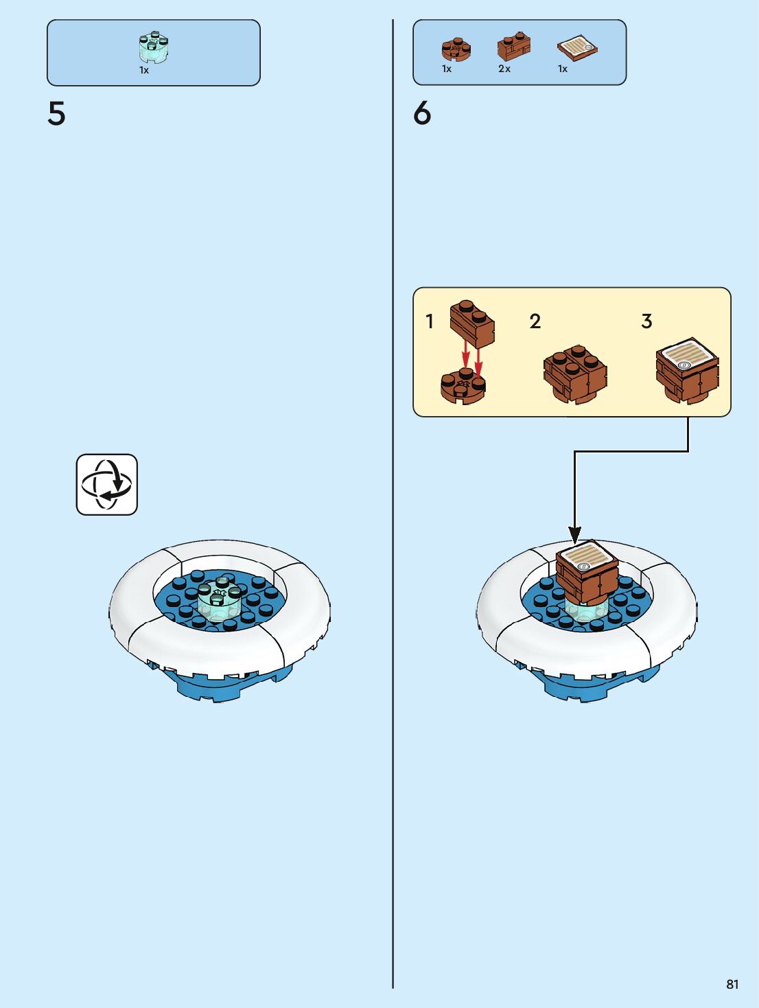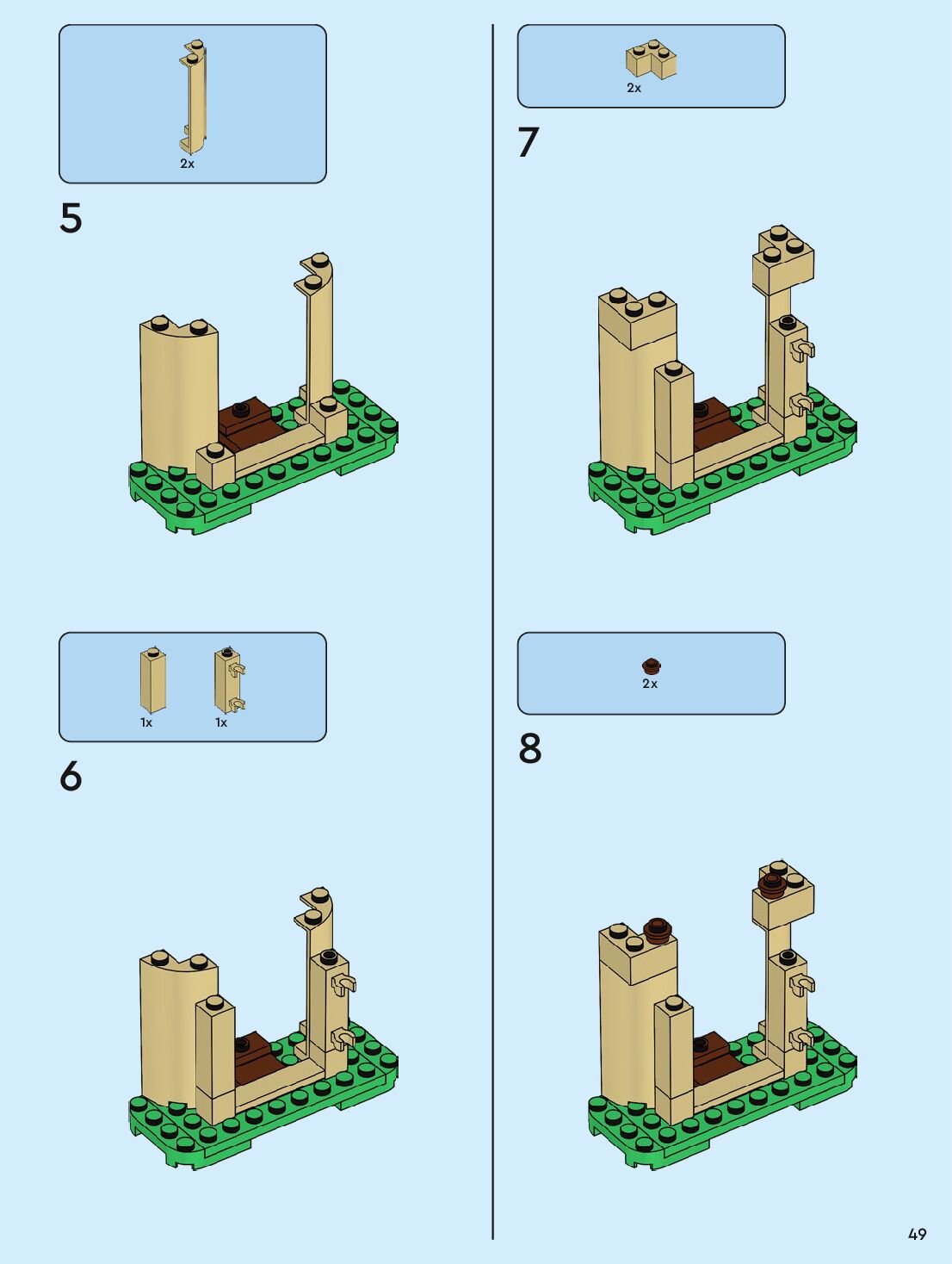 The assembly guide is prepared in a very understandable way for children and adult LEGO enthusiasts. A total of 112 picture galleries are shown, explaining the step-by-step construction stages for 2 different structures.