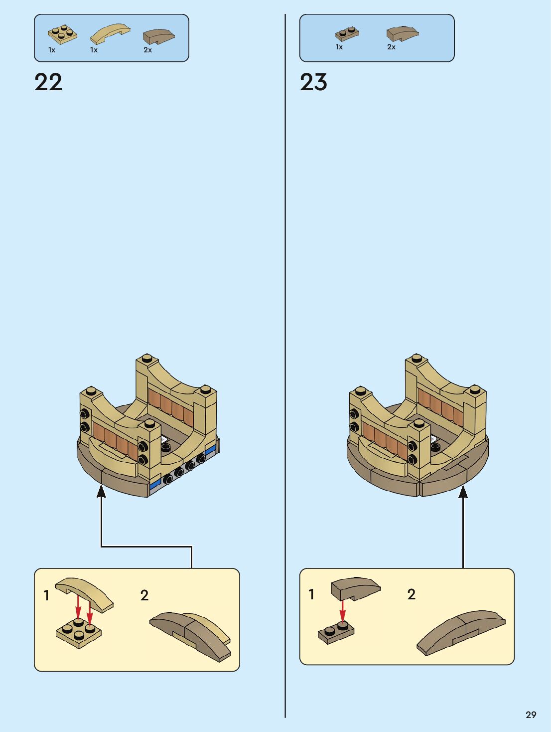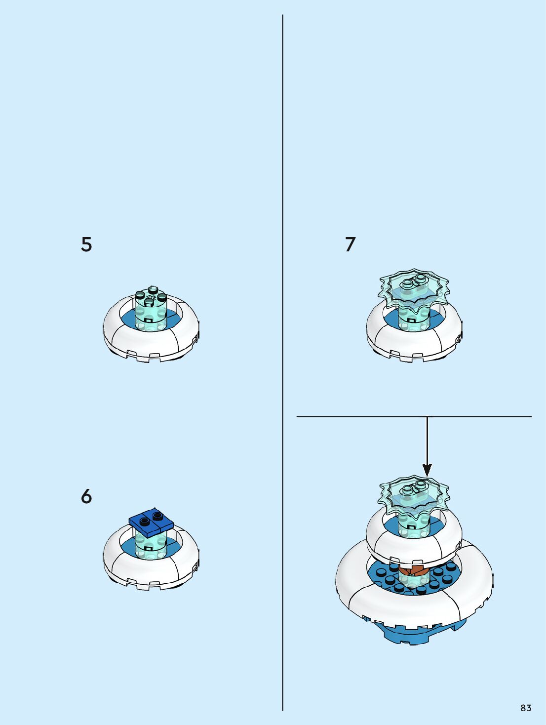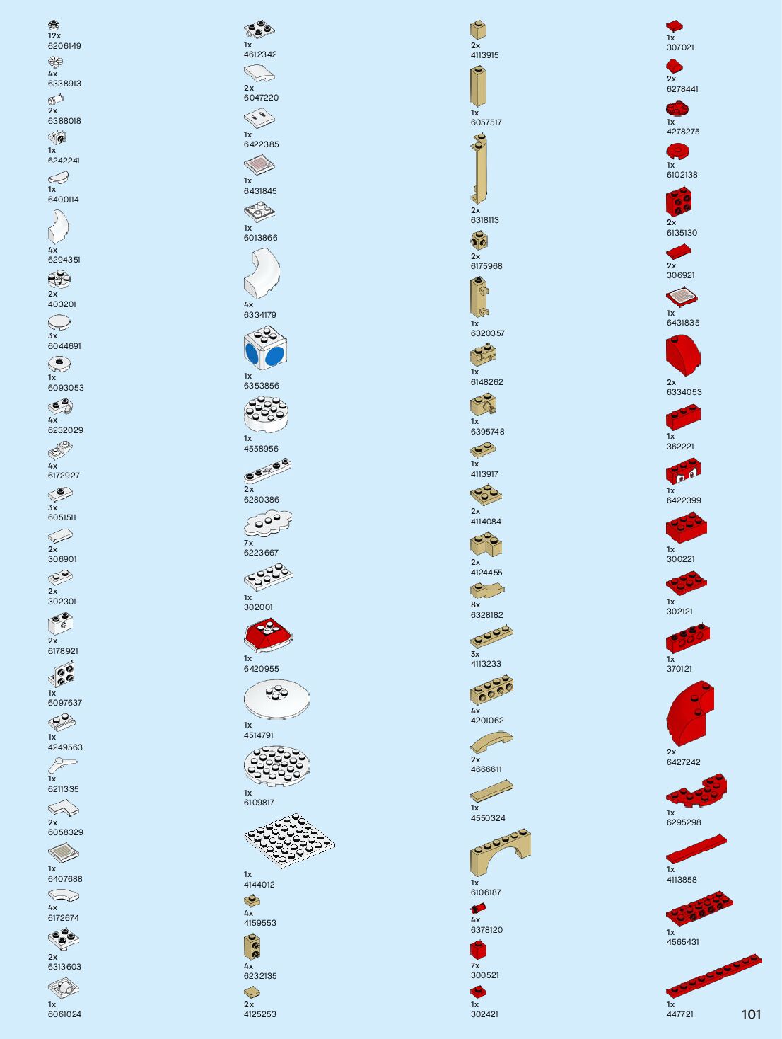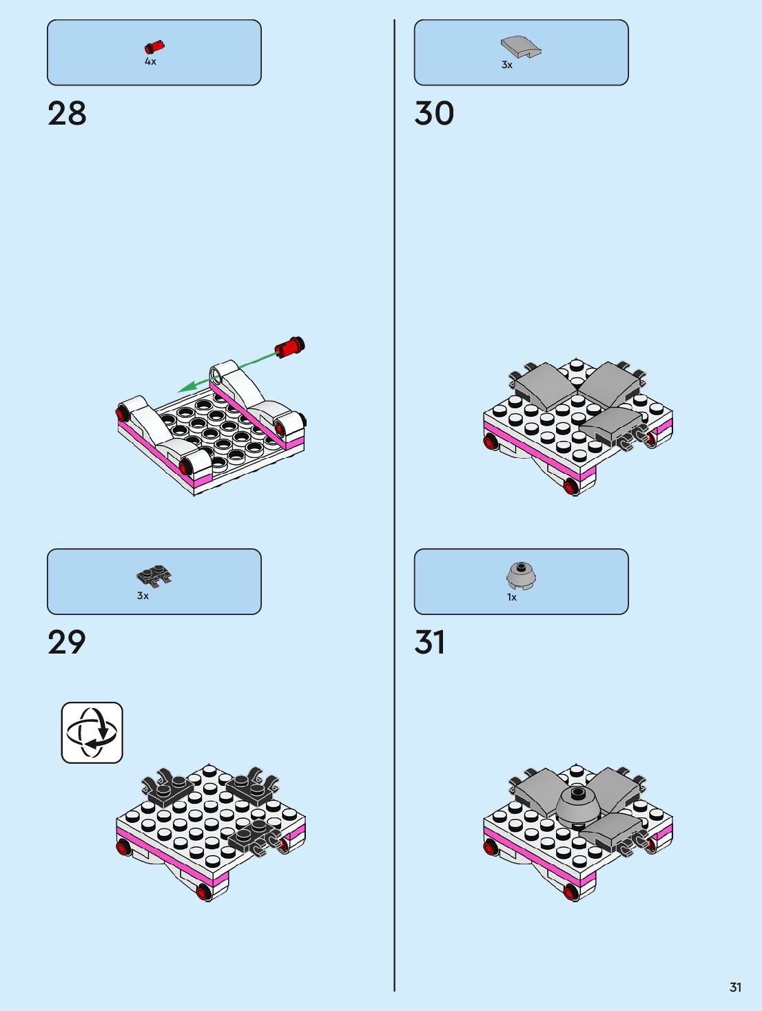 The assembly guide is prepared in a very understandable way for children and adult LEGO enthusiasts. A total of 112 picture galleries are shown, explaining the step-by-step construction stages for 2 different structures.
