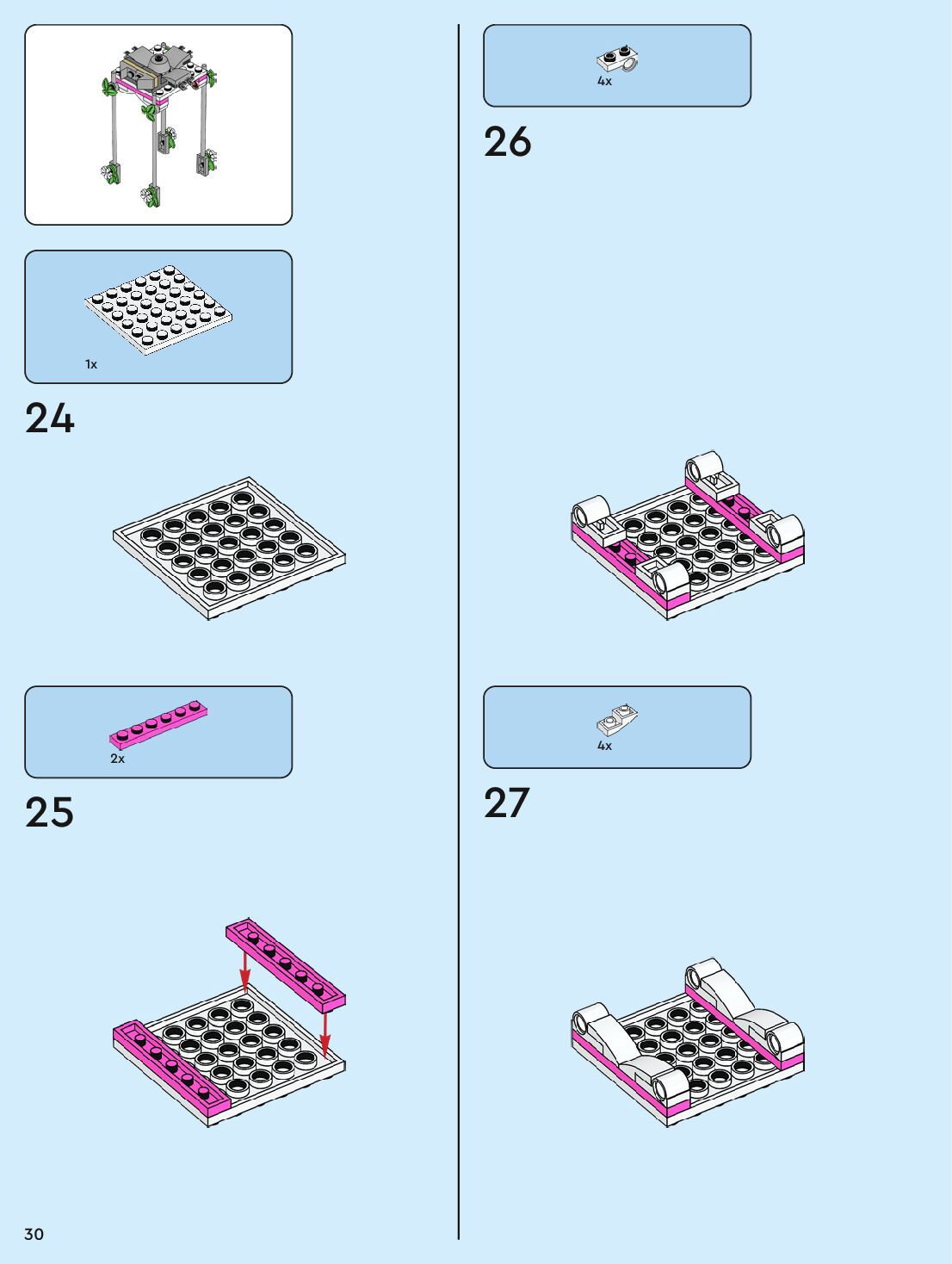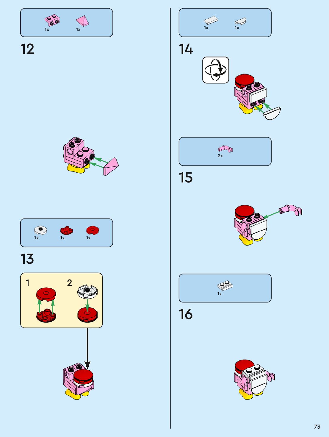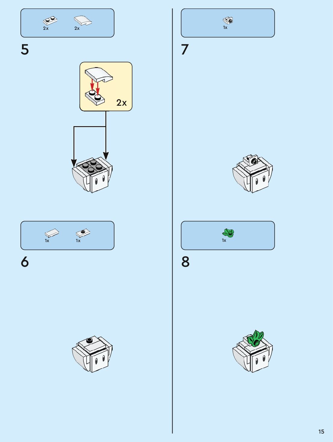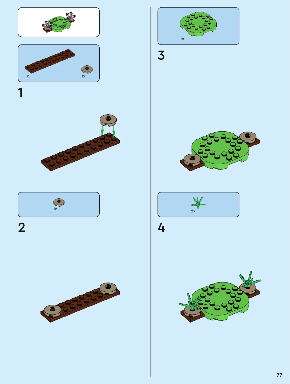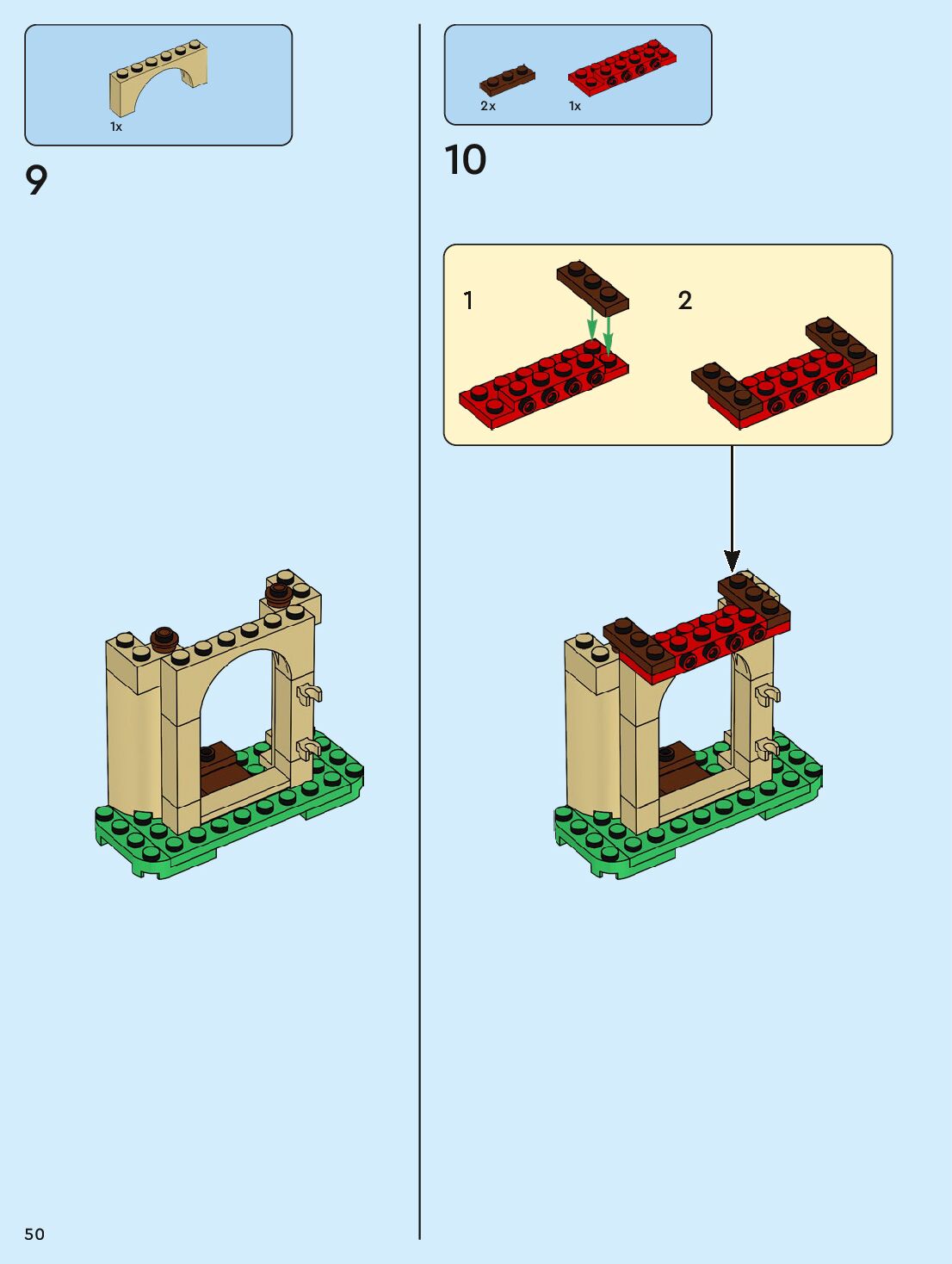 The assembly guide is prepared in a very understandable way for children and adult LEGO enthusiasts. A total of 112 picture galleries are shown, explaining the step-by-step construction stages for 2 different structures.