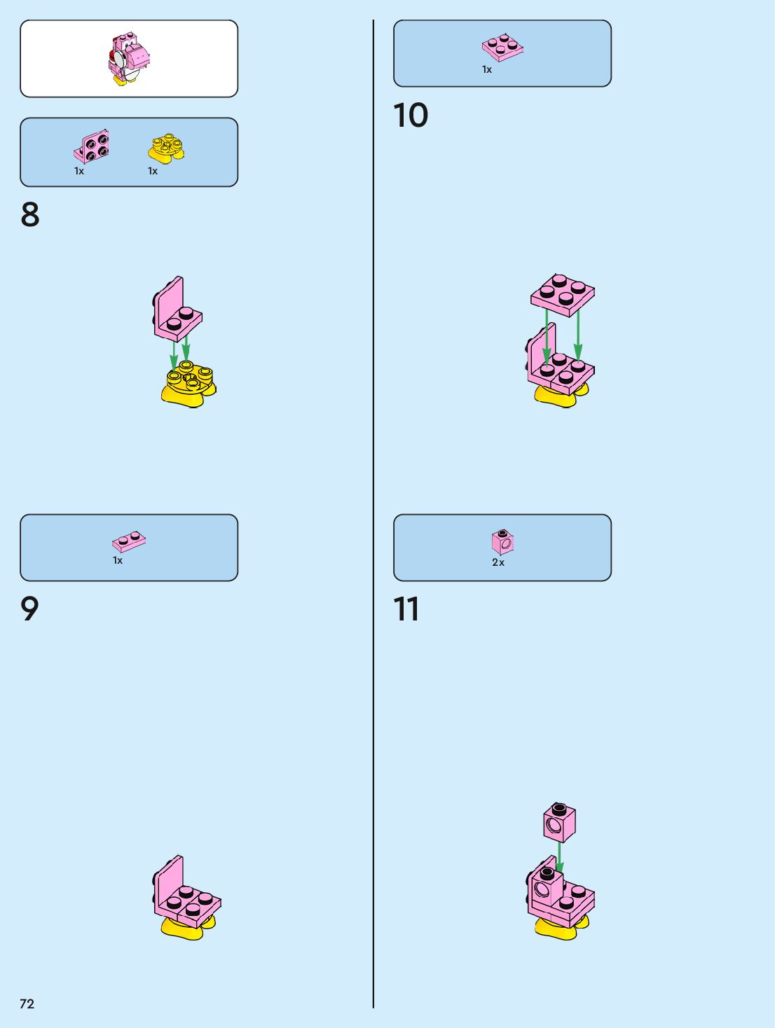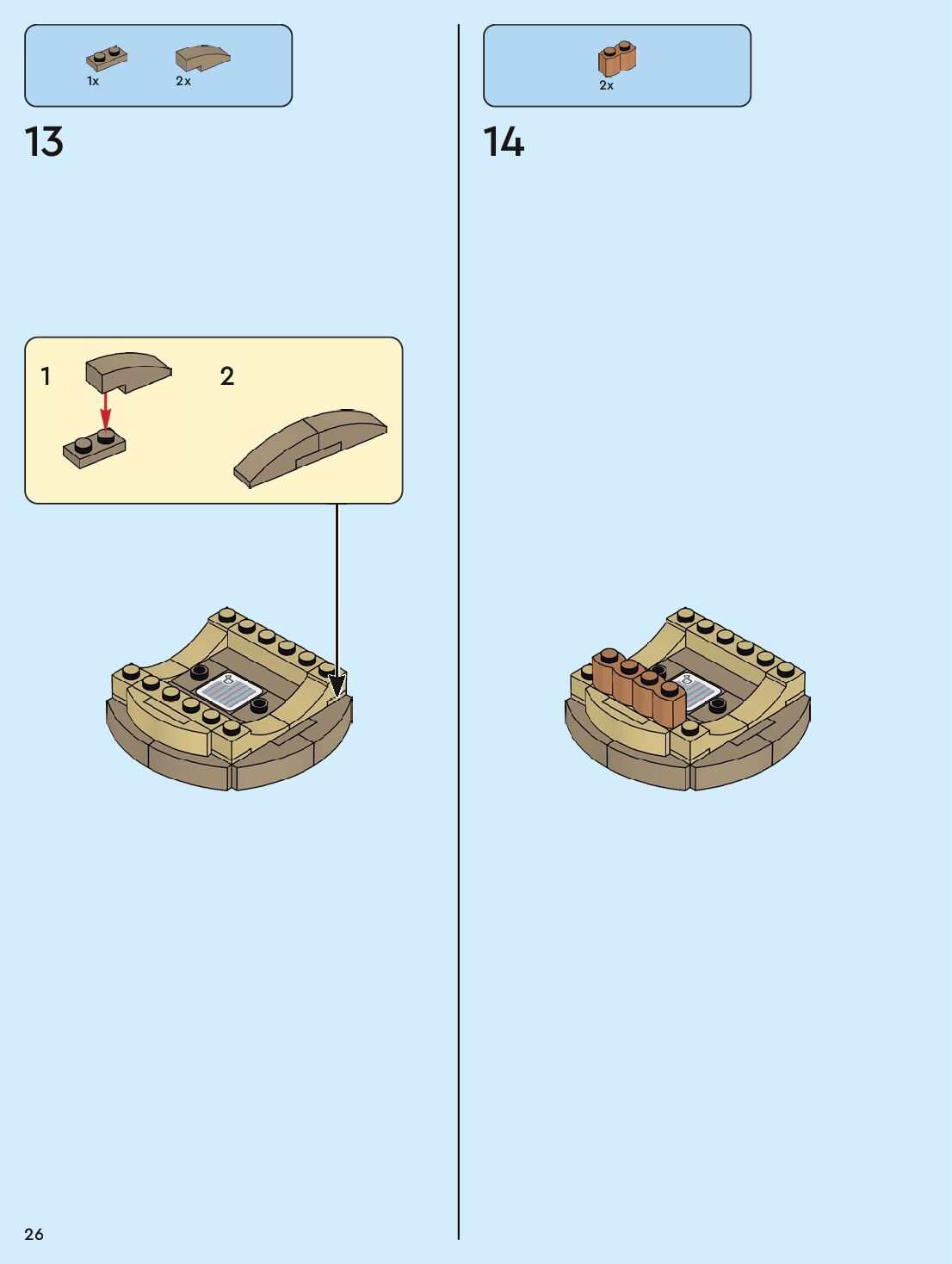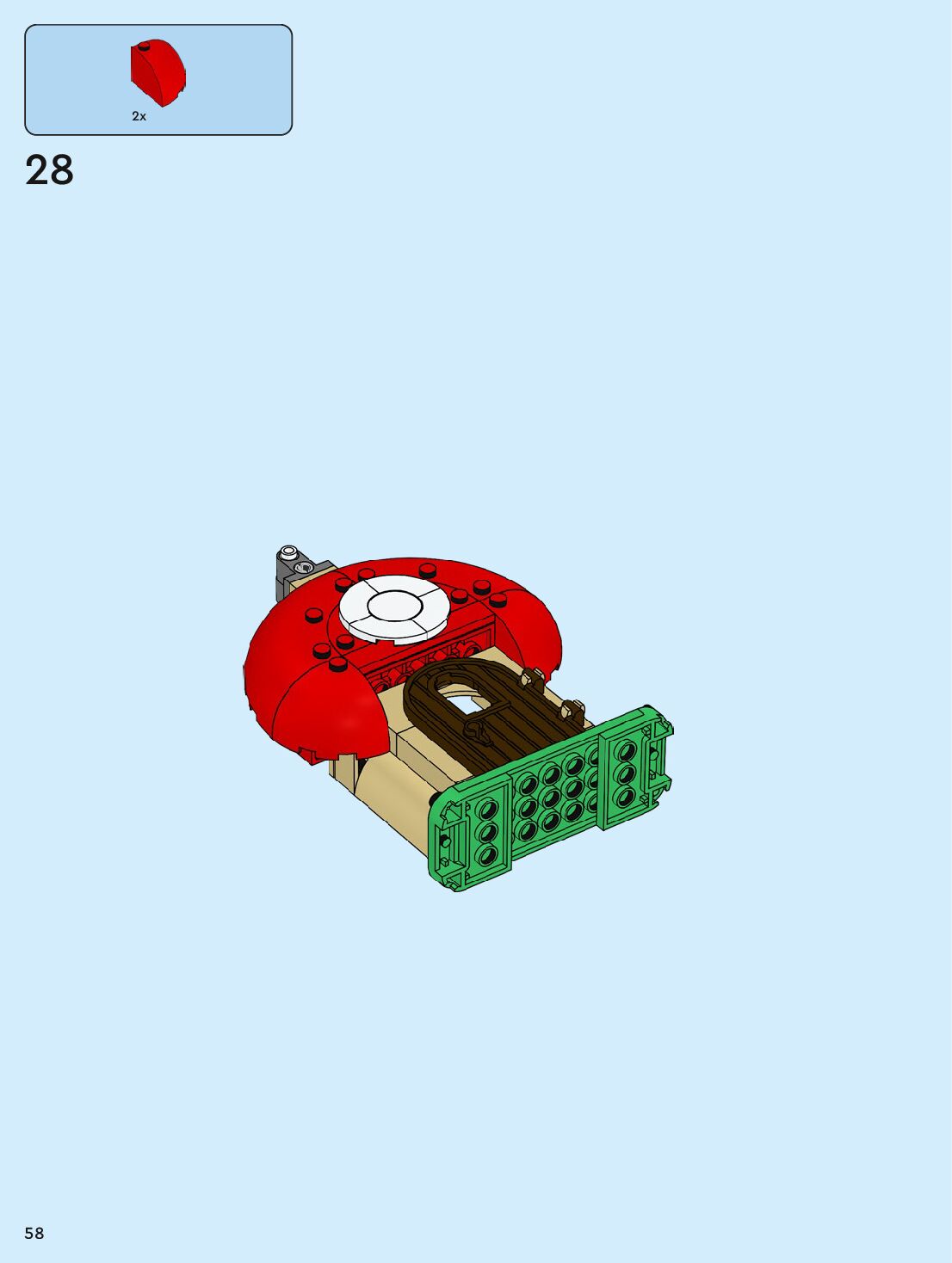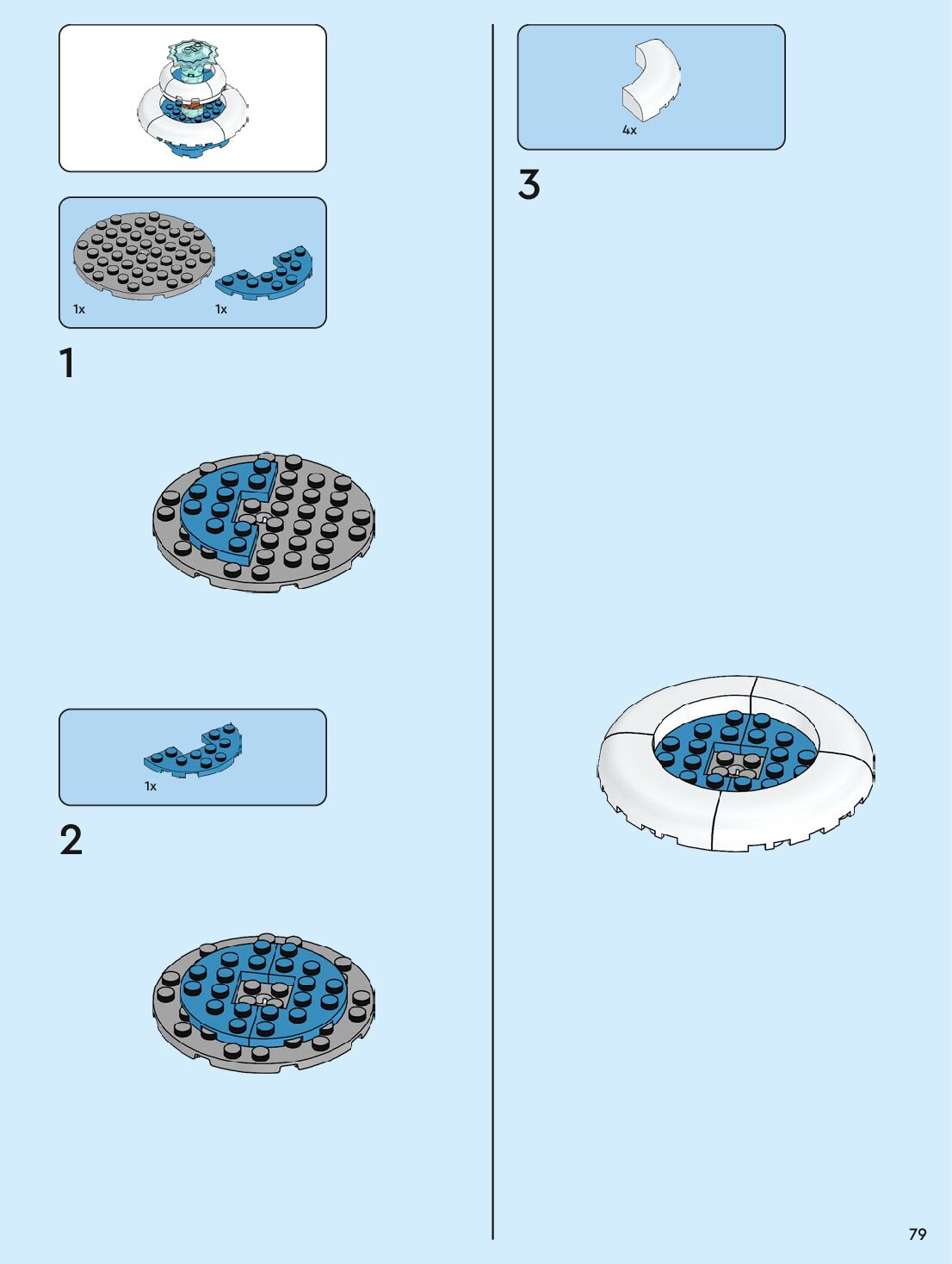 The assembly guide is prepared in a very understandable way for children and adult LEGO enthusiasts. A total of 112 picture galleries are shown, explaining the step-by-step construction stages for 2 different structures.