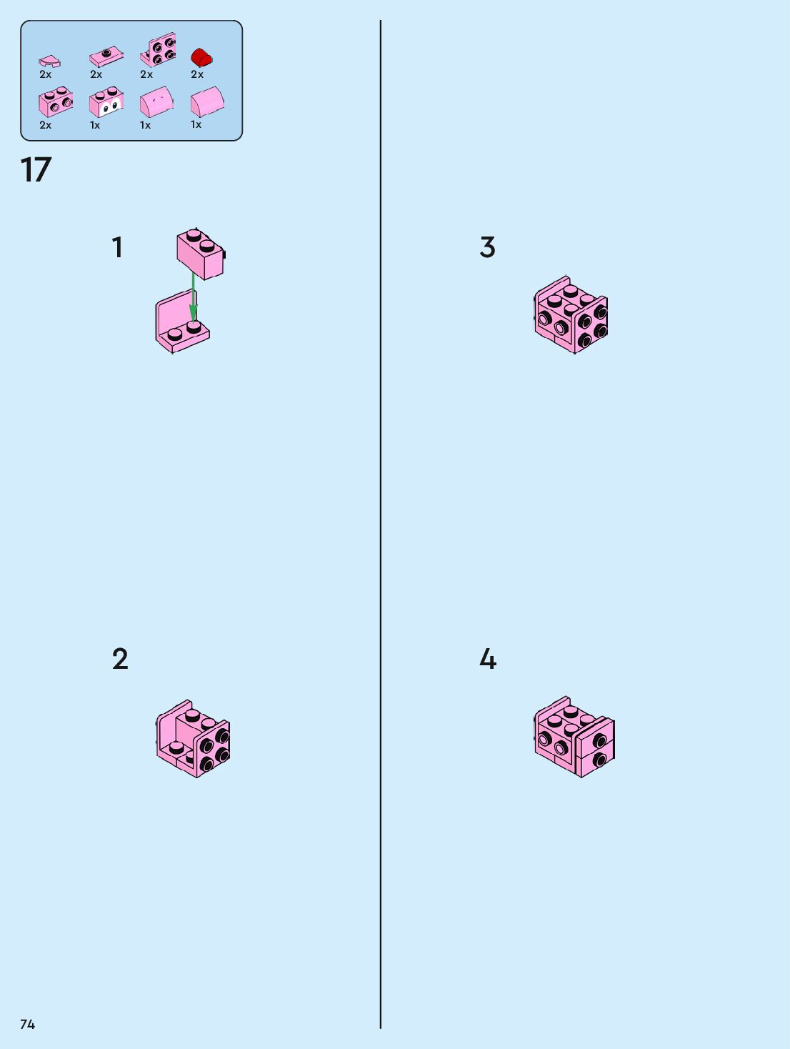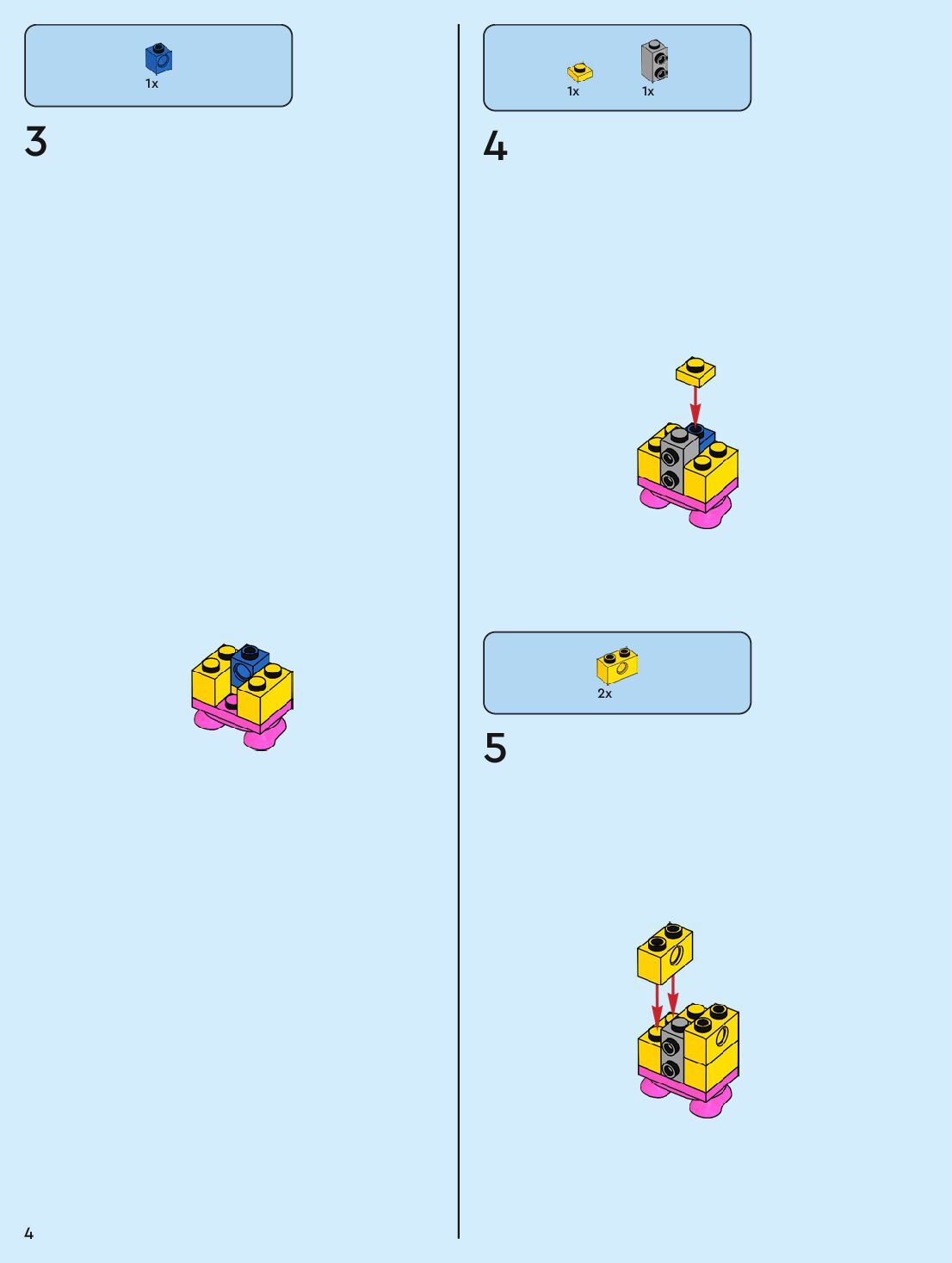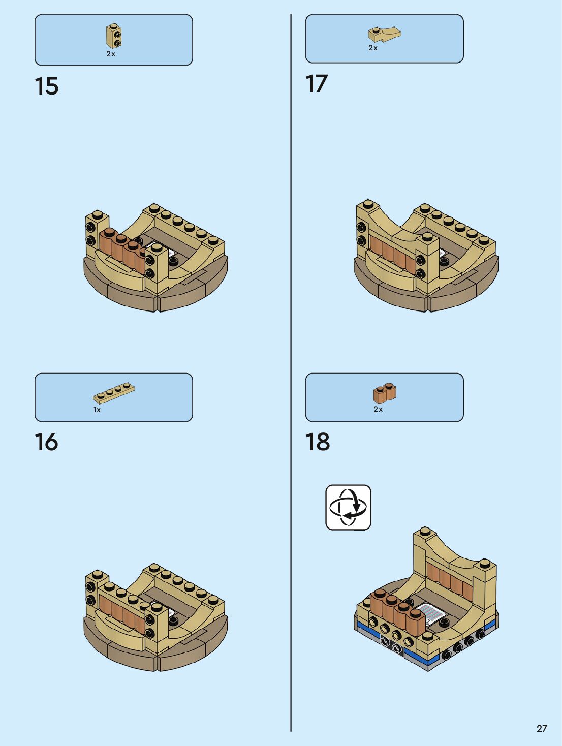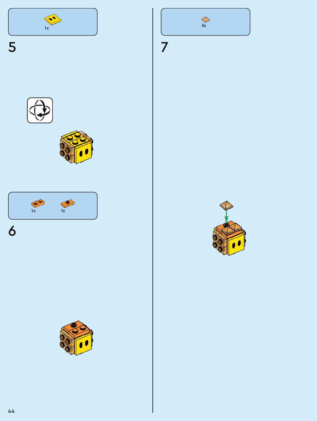 The assembly guide is prepared in a very understandable way for children and adult LEGO enthusiasts. A total of 112 picture galleries are shown, explaining the step-by-step construction stages for 2 different structures.
