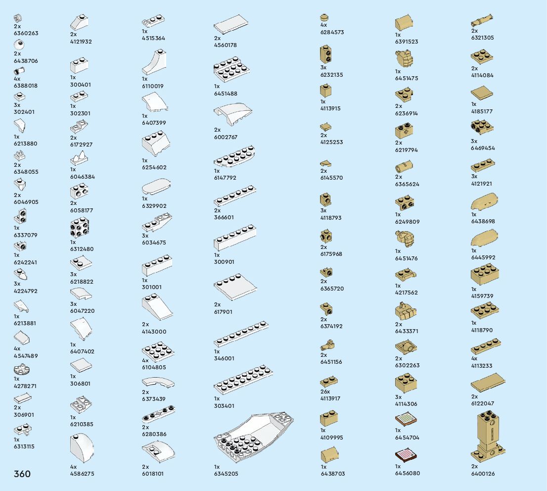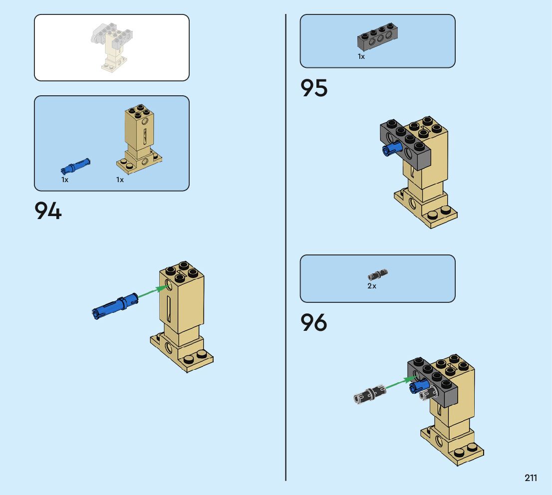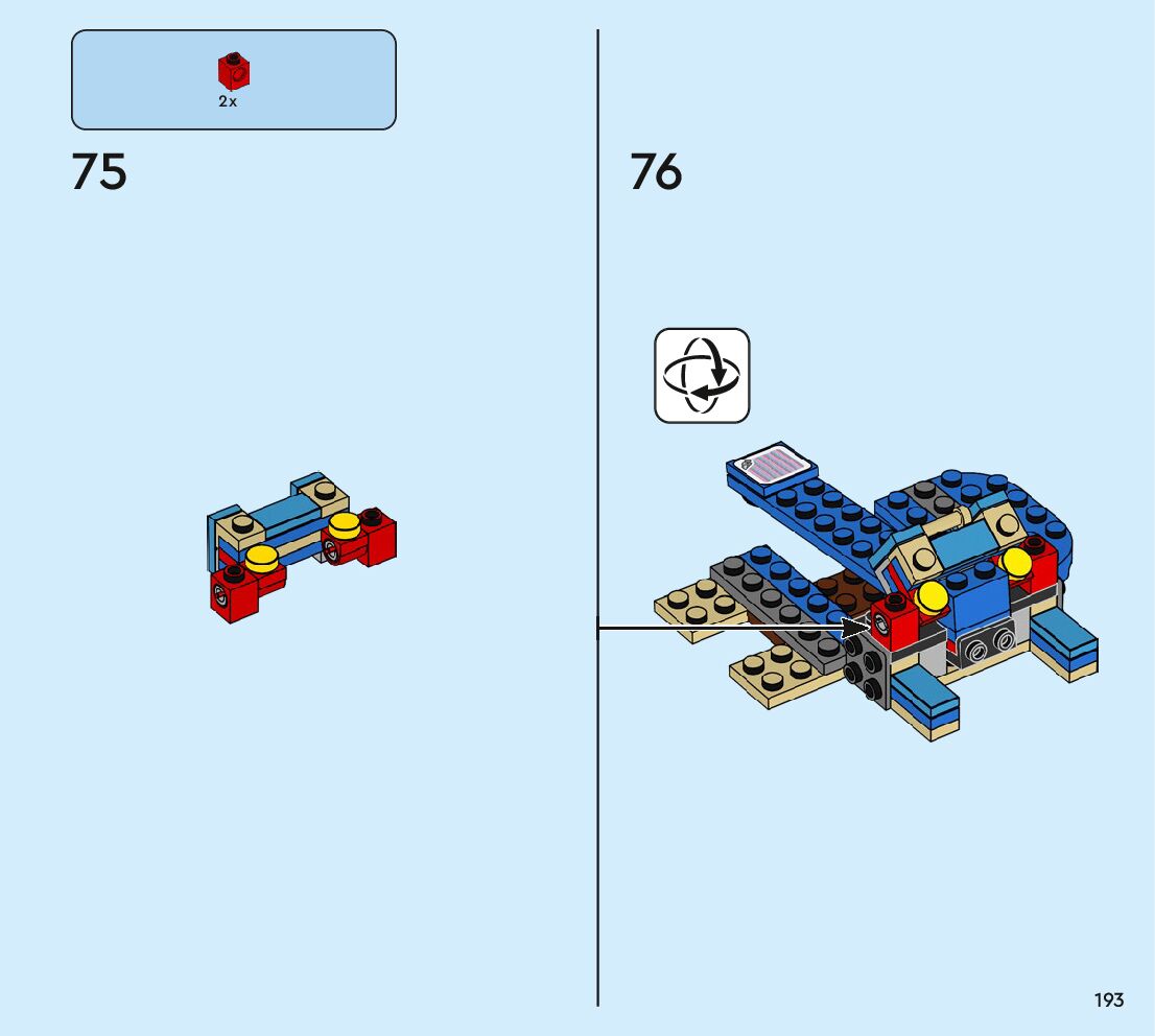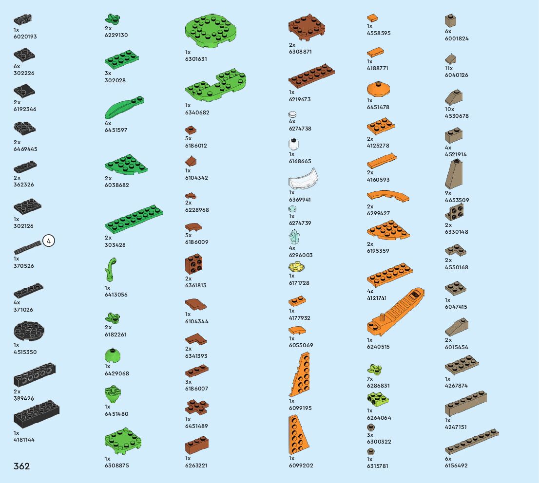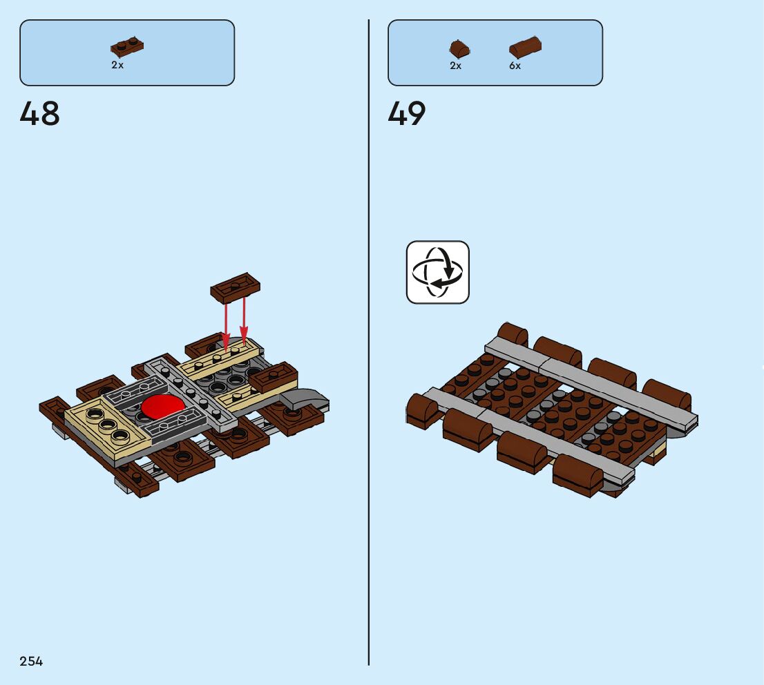 The assembly guide is prepared in a very understandable way for children and adult LEGO enthusiasts. A total of 374 picture galleries are shown, explaining the step-by-step construction stages for 2 different structures.