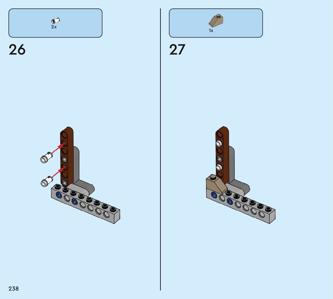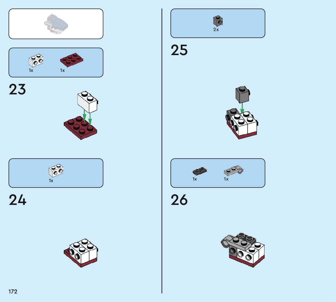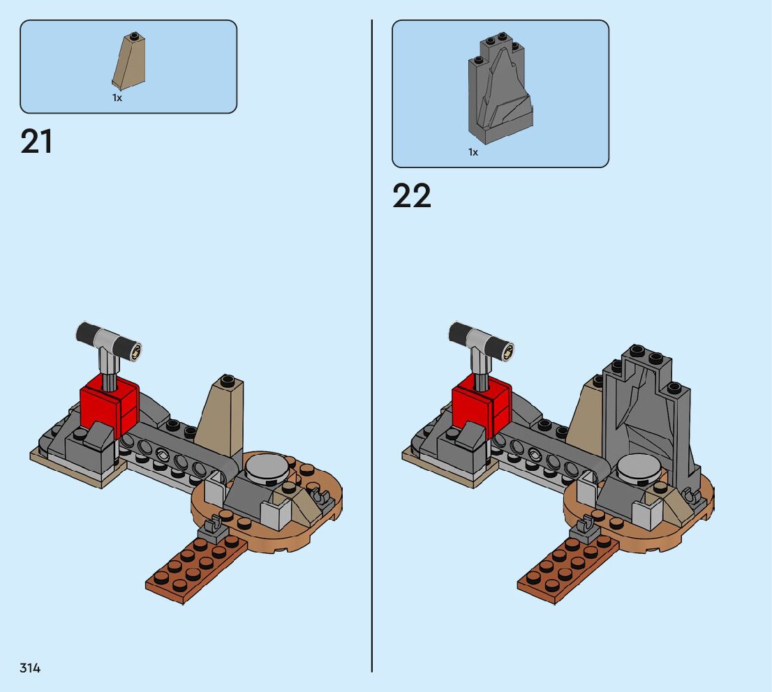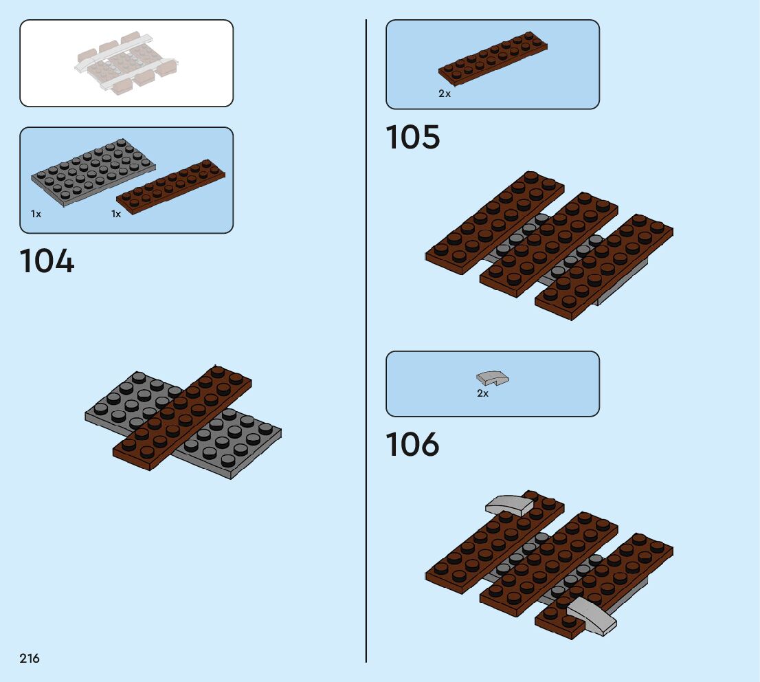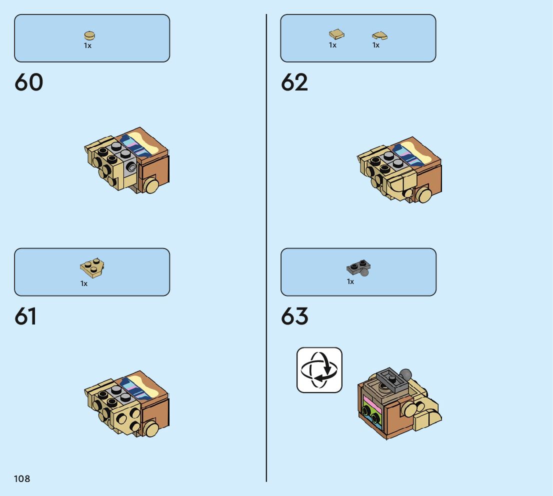 The assembly guide is prepared in a very understandable way for children and adult LEGO enthusiasts. A total of 374 picture galleries are shown, explaining the step-by-step construction stages for 2 different structures.