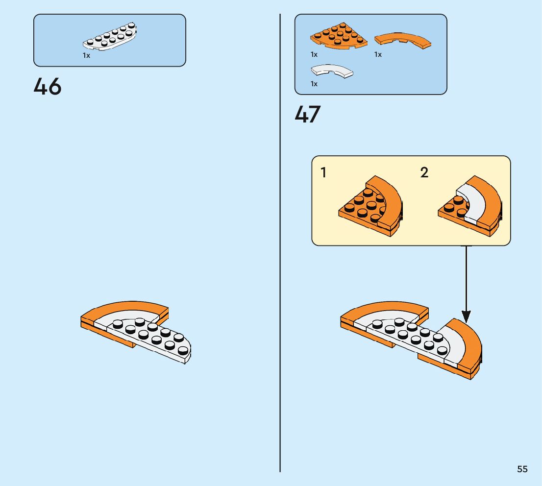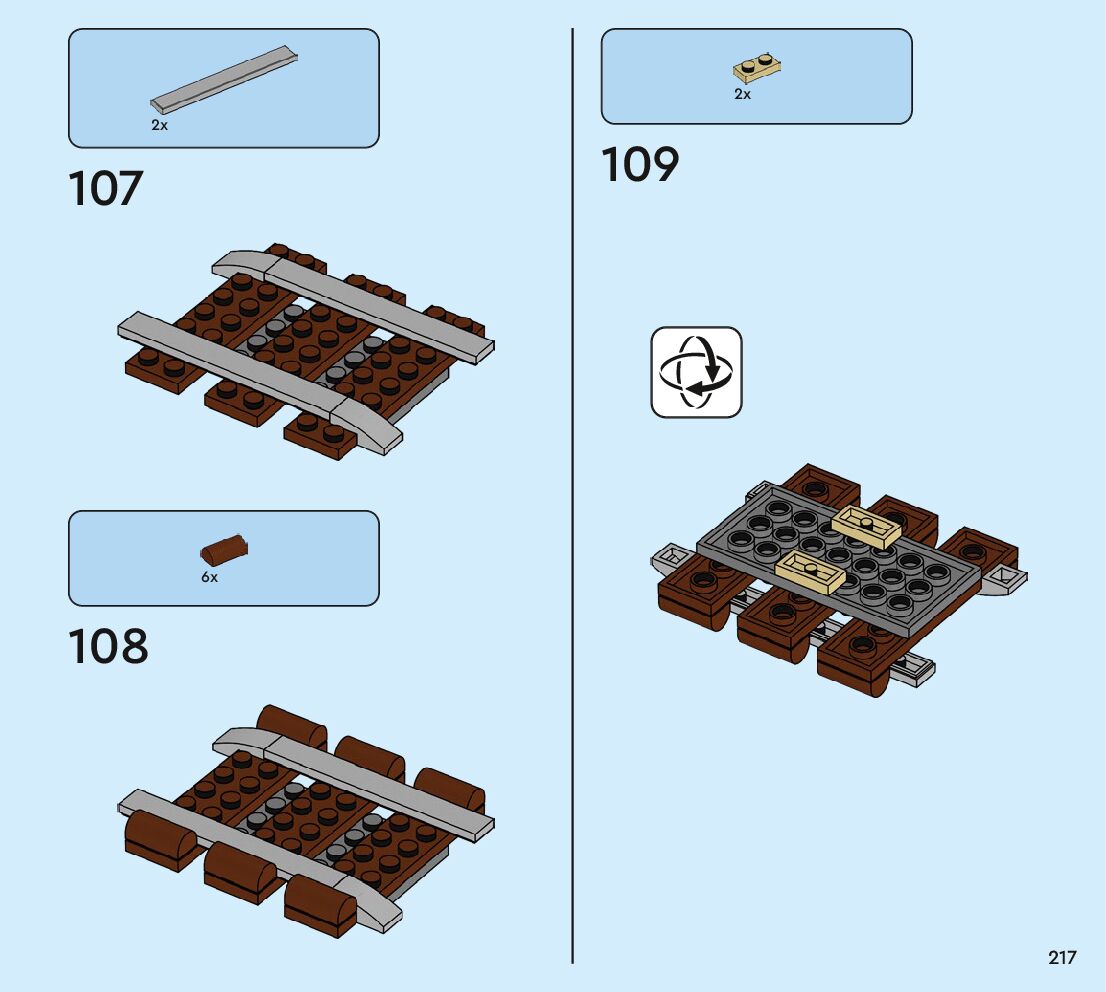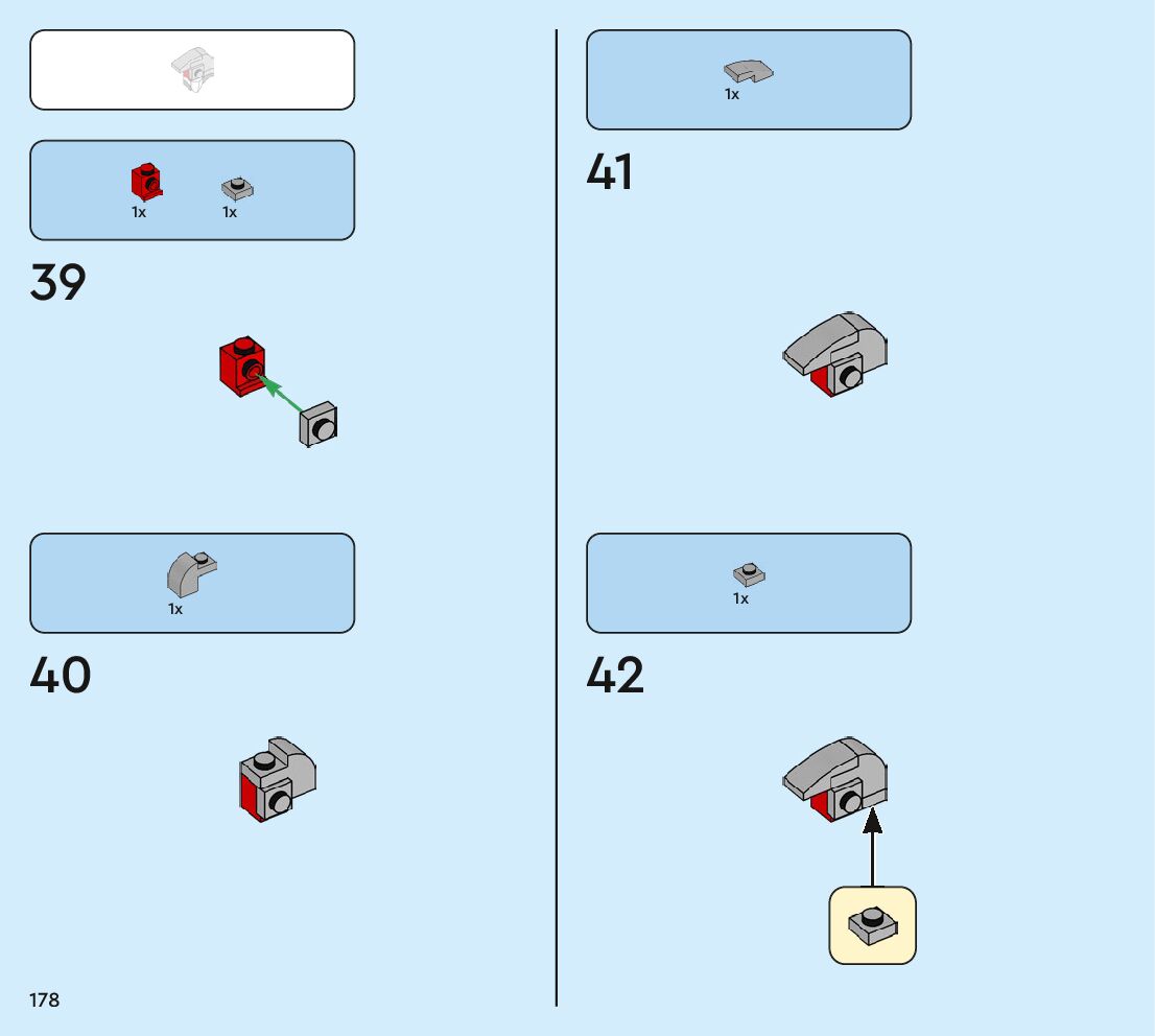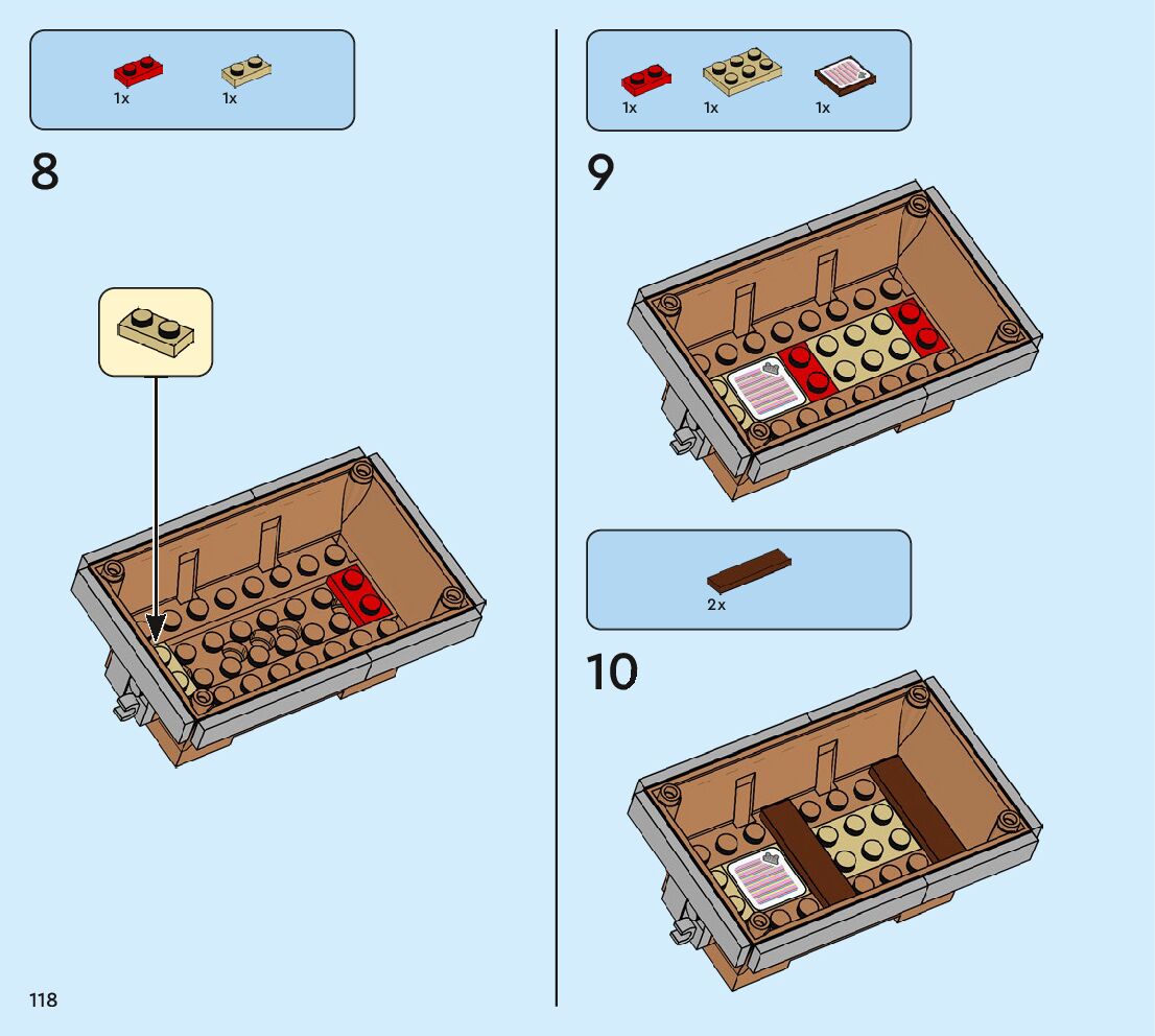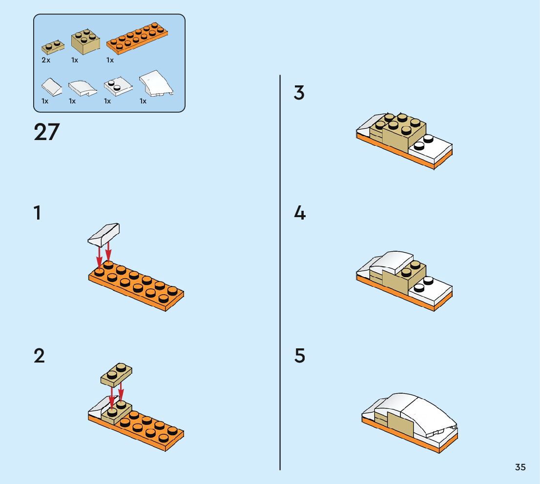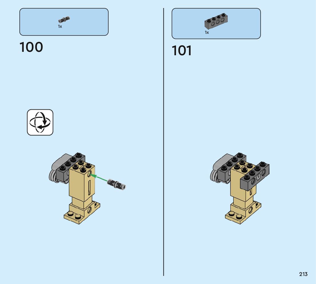 The assembly guide is prepared in a very understandable way for children and adult LEGO enthusiasts. A total of 374 picture galleries are shown, explaining the step-by-step construction stages for 2 different structures.
