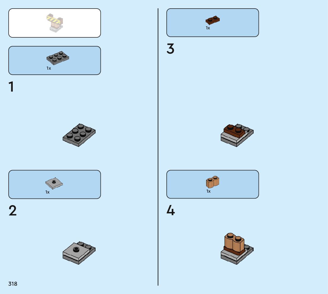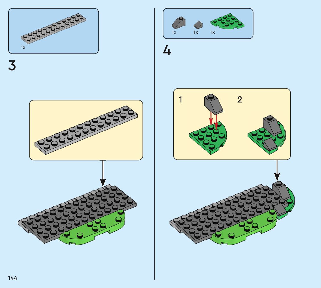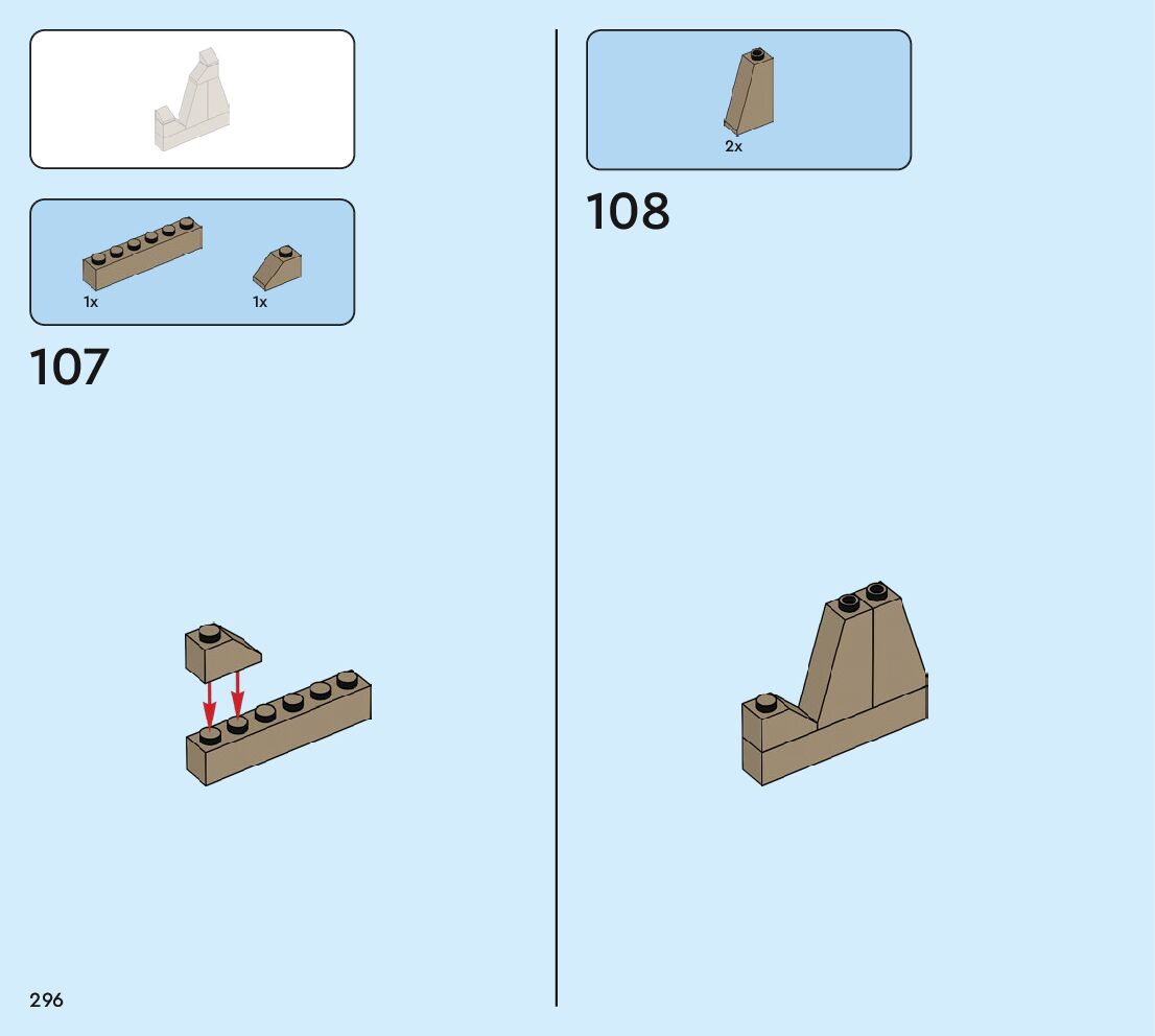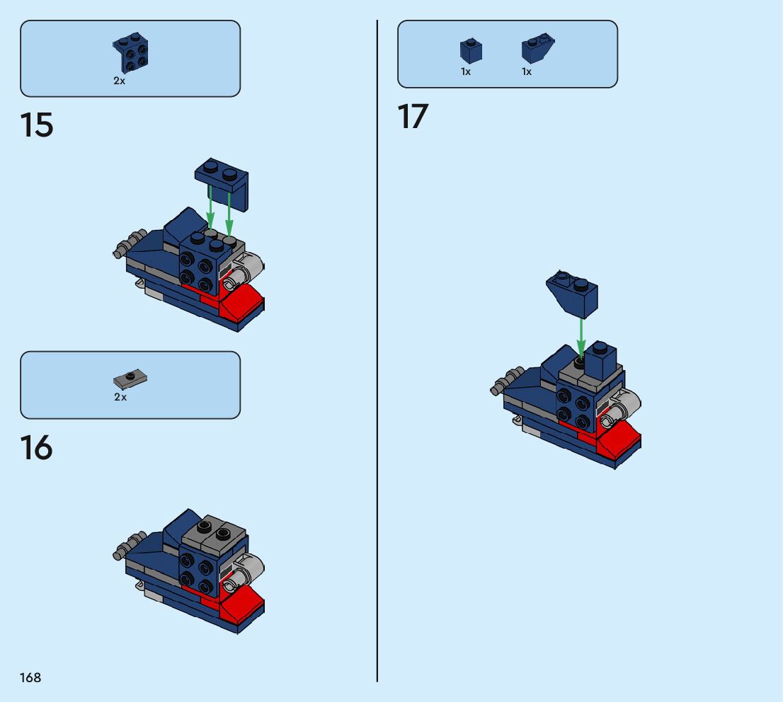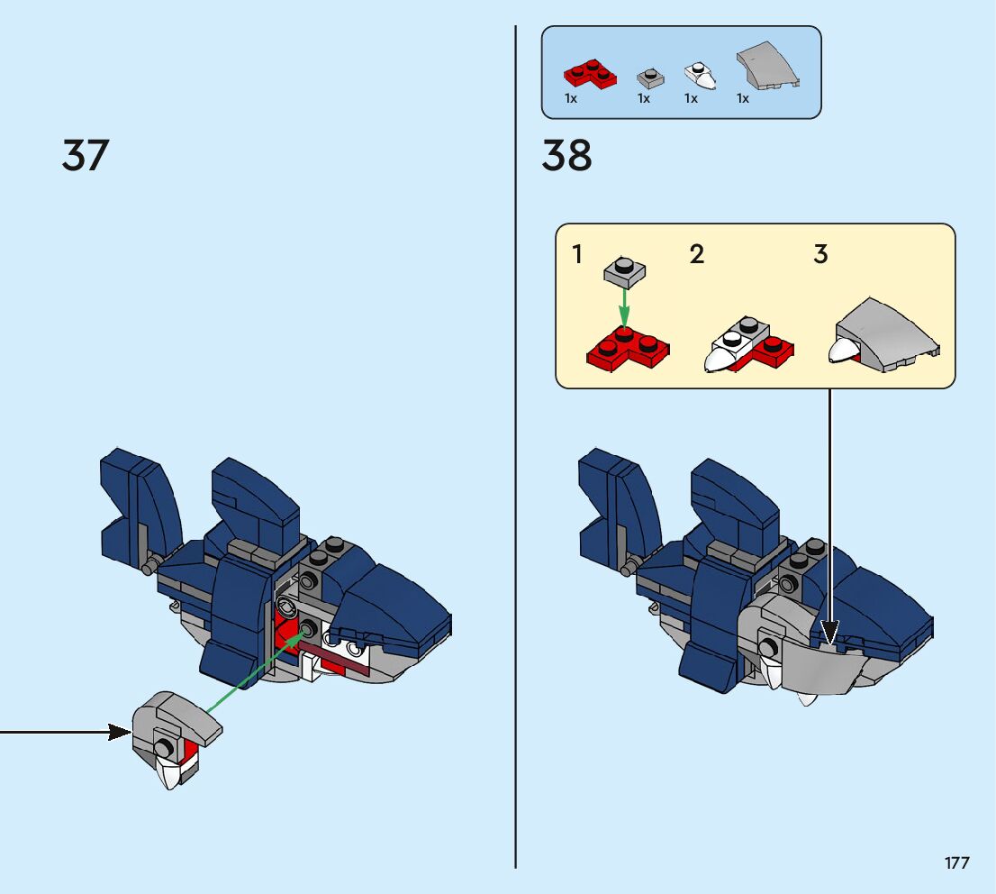 The assembly guide is prepared in a very understandable way for children and adult LEGO enthusiasts. A total of 374 picture galleries are shown, explaining the step-by-step construction stages for 2 different structures.