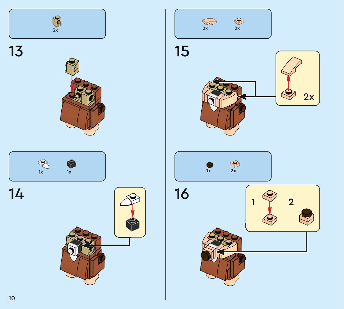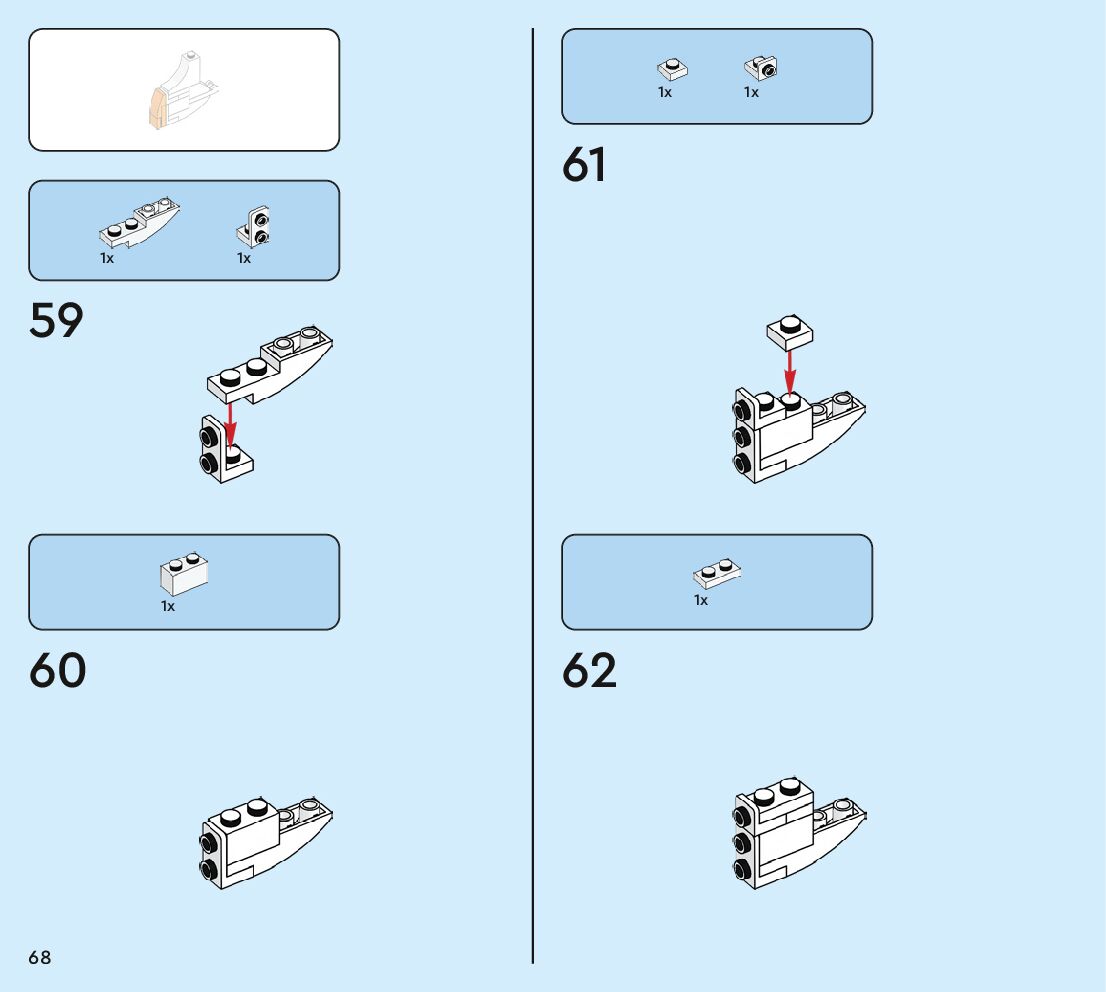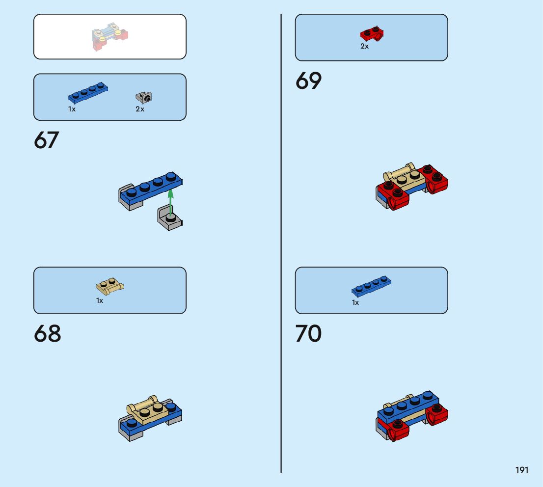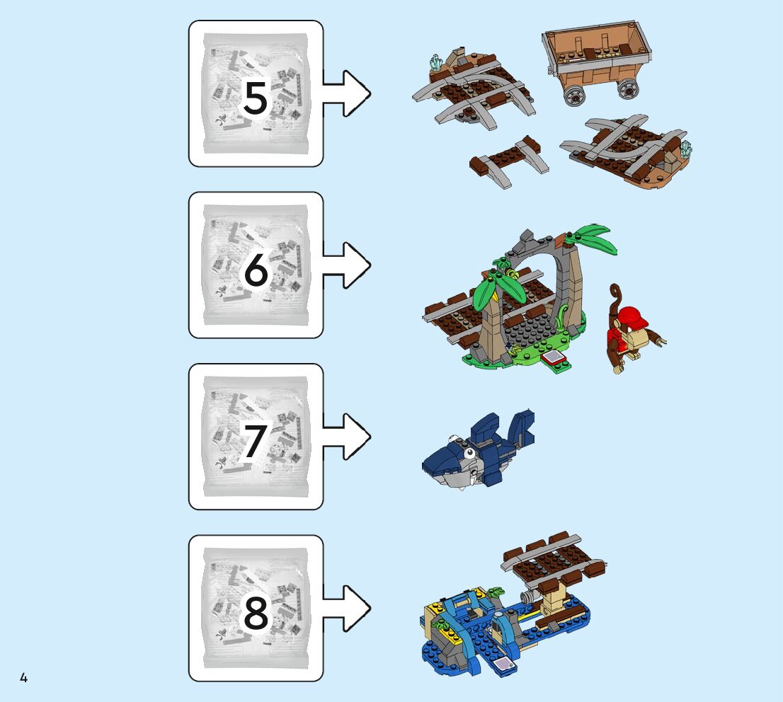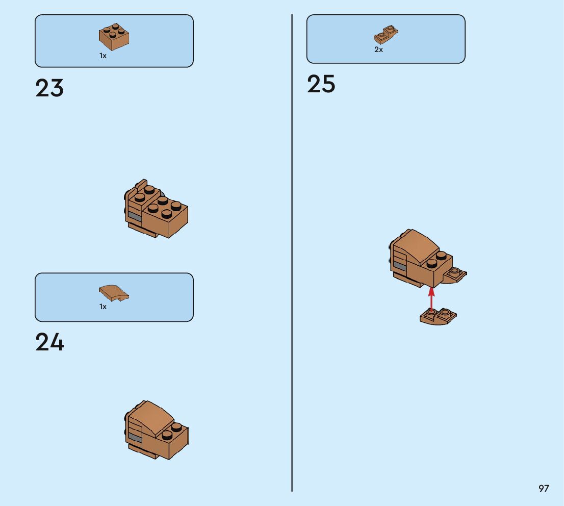 The assembly guide is prepared in a very understandable way for children and adult LEGO enthusiasts. A total of 374 picture galleries are shown, explaining the step-by-step construction stages for 2 different structures.