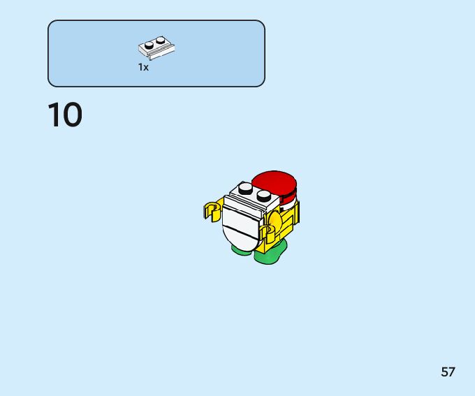 The assembly guide is prepared in a very understandable way for children and adult LEGO enthusiasts. A total of 84 picture galleries are shown, explaining the step-by-step construction stages for 1 different structures.