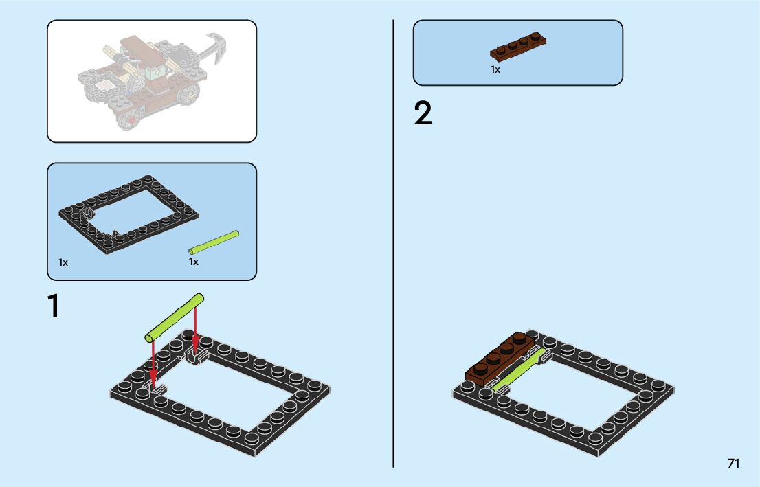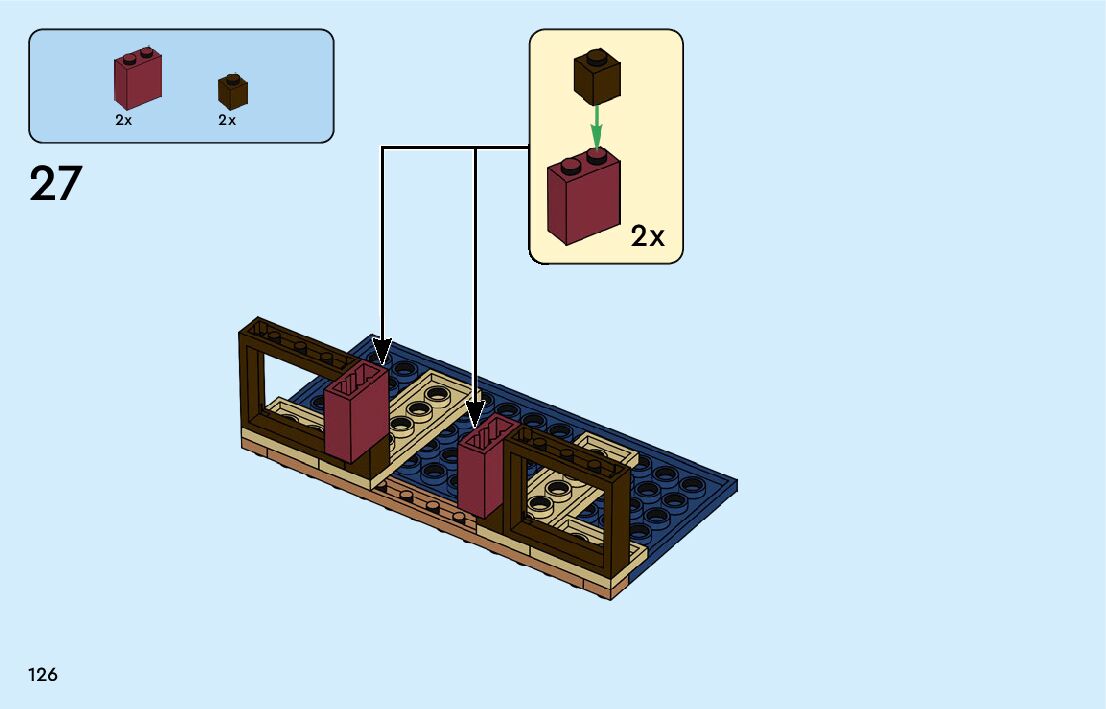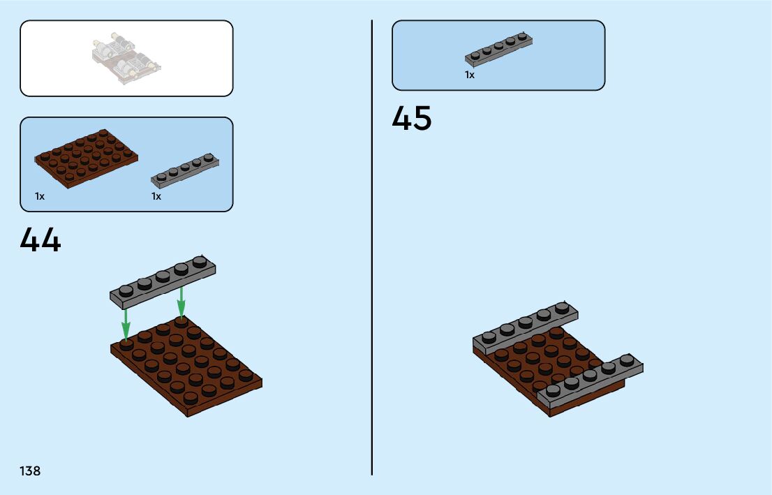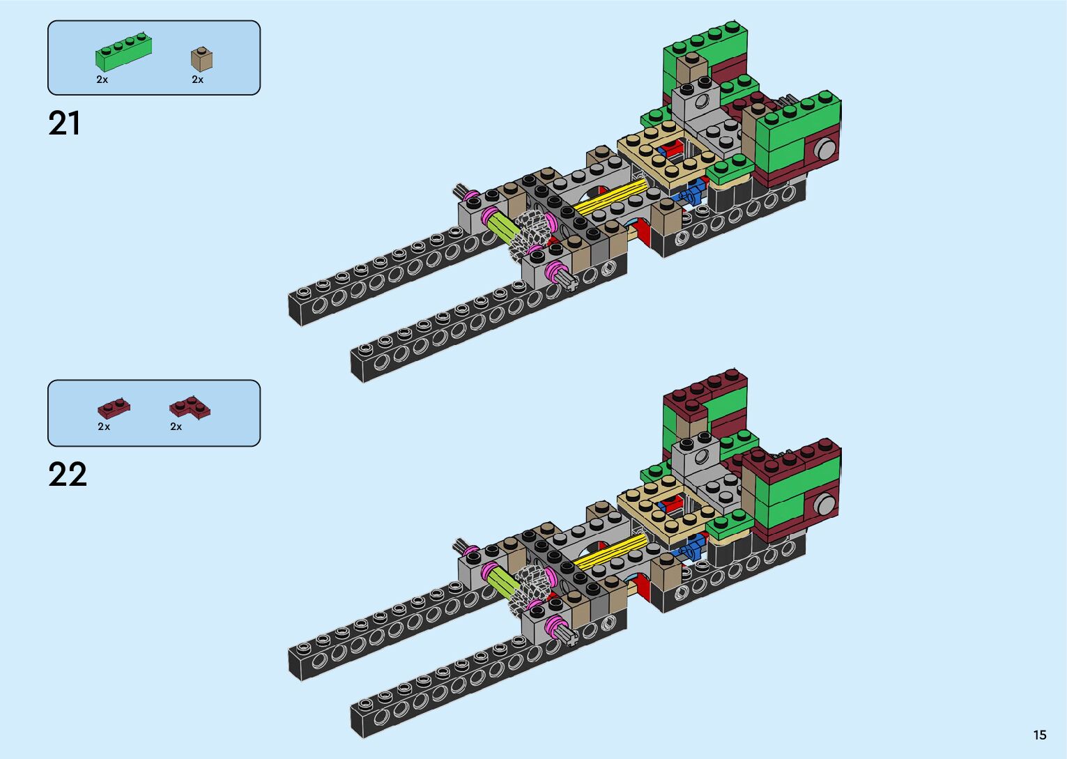 The assembly guide is prepared in a very understandable way for children and adult LEGO enthusiasts. A total of 336 picture galleries are shown, explaining the step-by-step construction stages for 2 different structures.