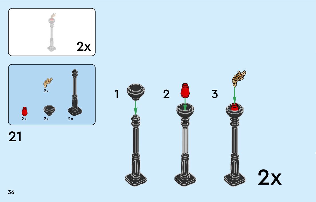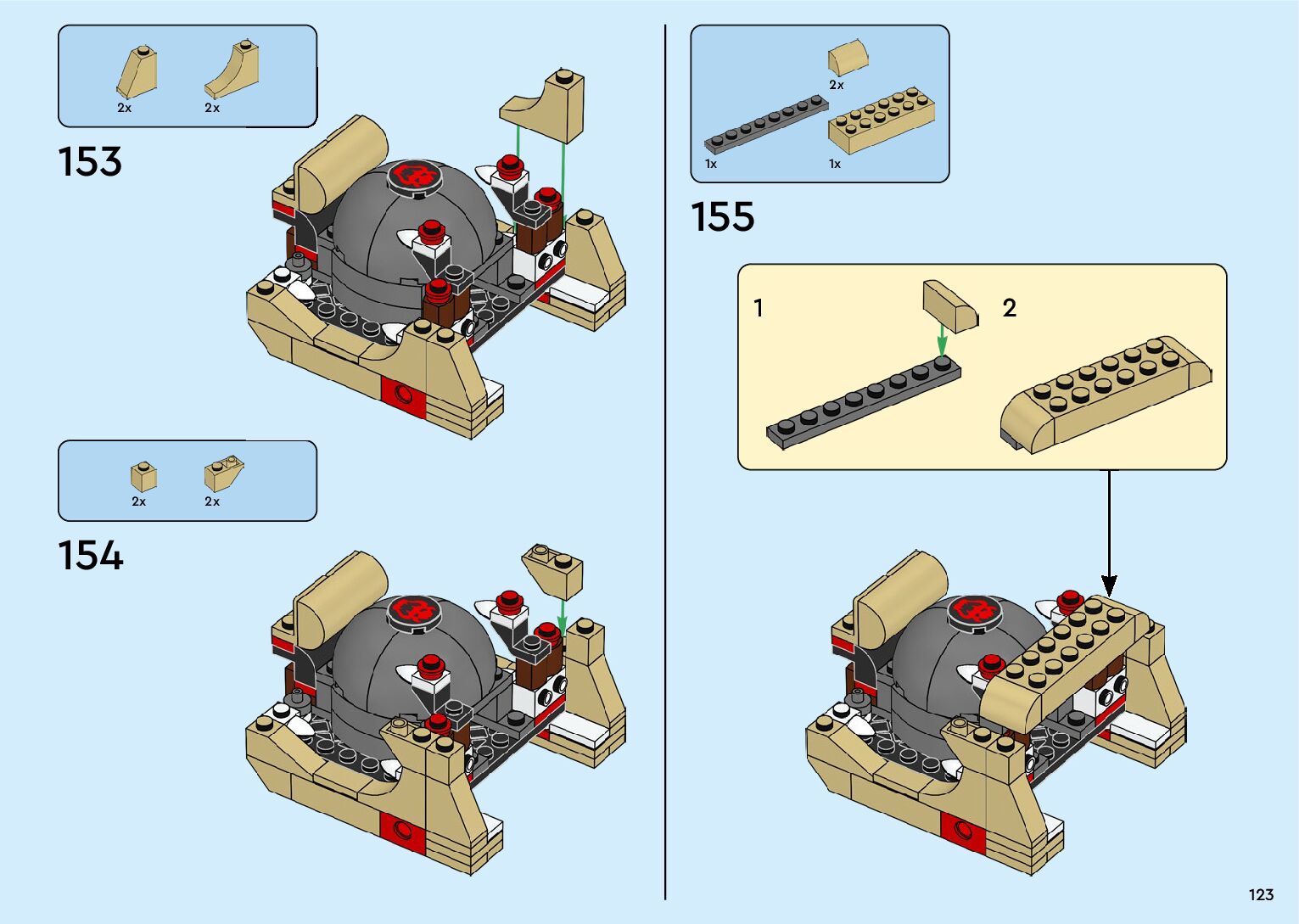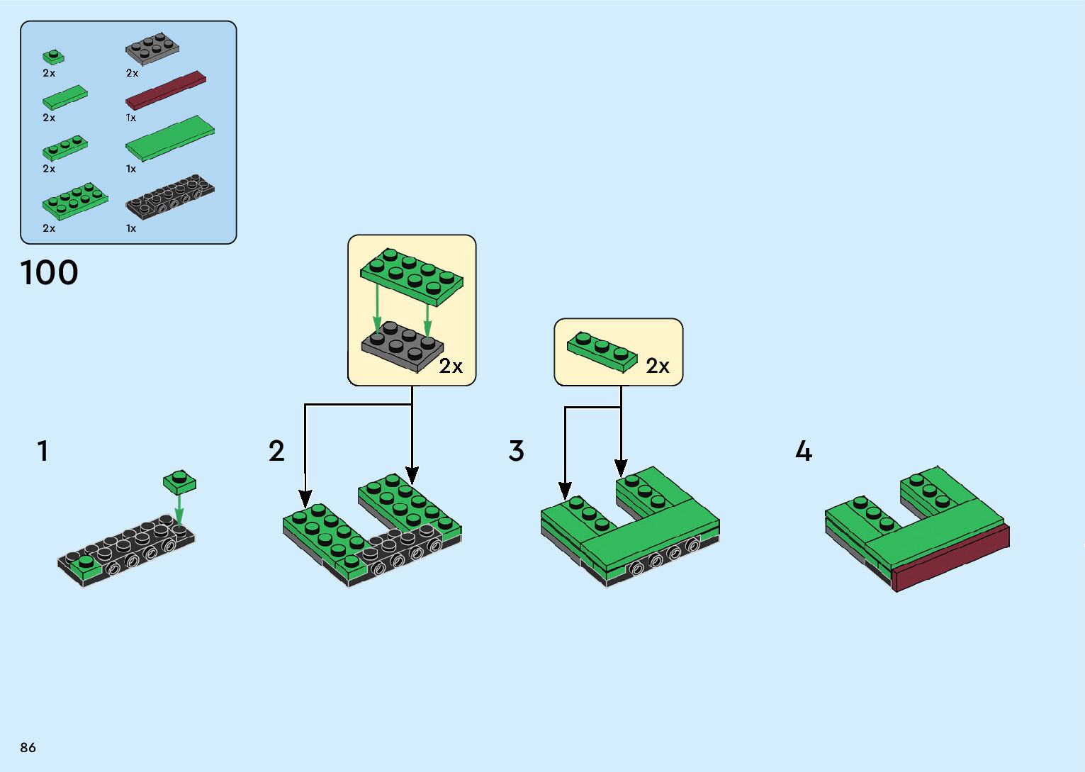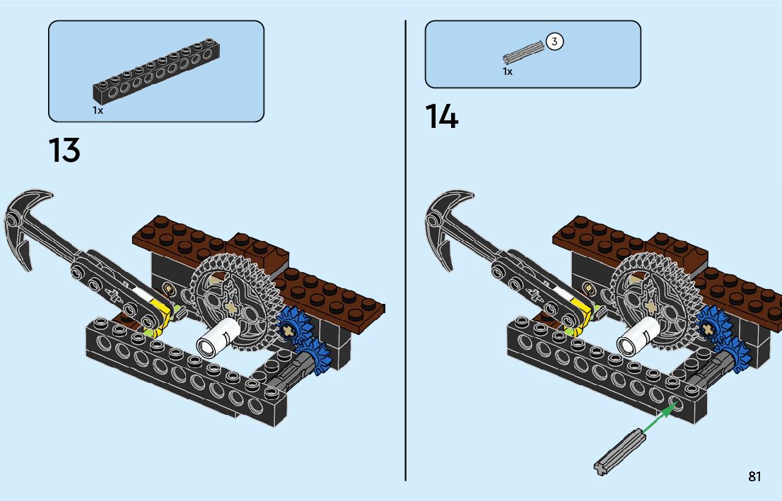 The assembly guide is prepared in a very understandable way for children and adult LEGO enthusiasts. A total of 336 picture galleries are shown, explaining the step-by-step construction stages for 2 different structures.