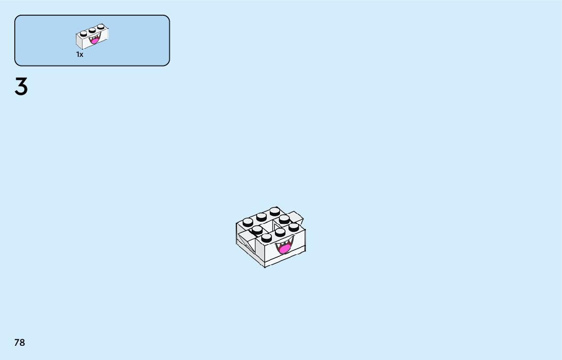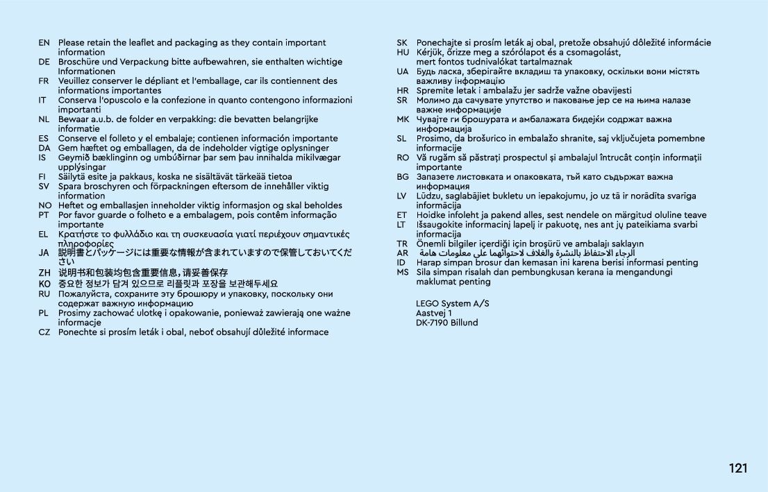 The assembly guide is prepared in a very understandable way for children and adult LEGO enthusiasts. A total of 132 picture galleries are shown, explaining the step-by-step construction stages for 1 different structures.