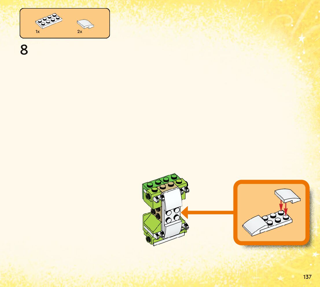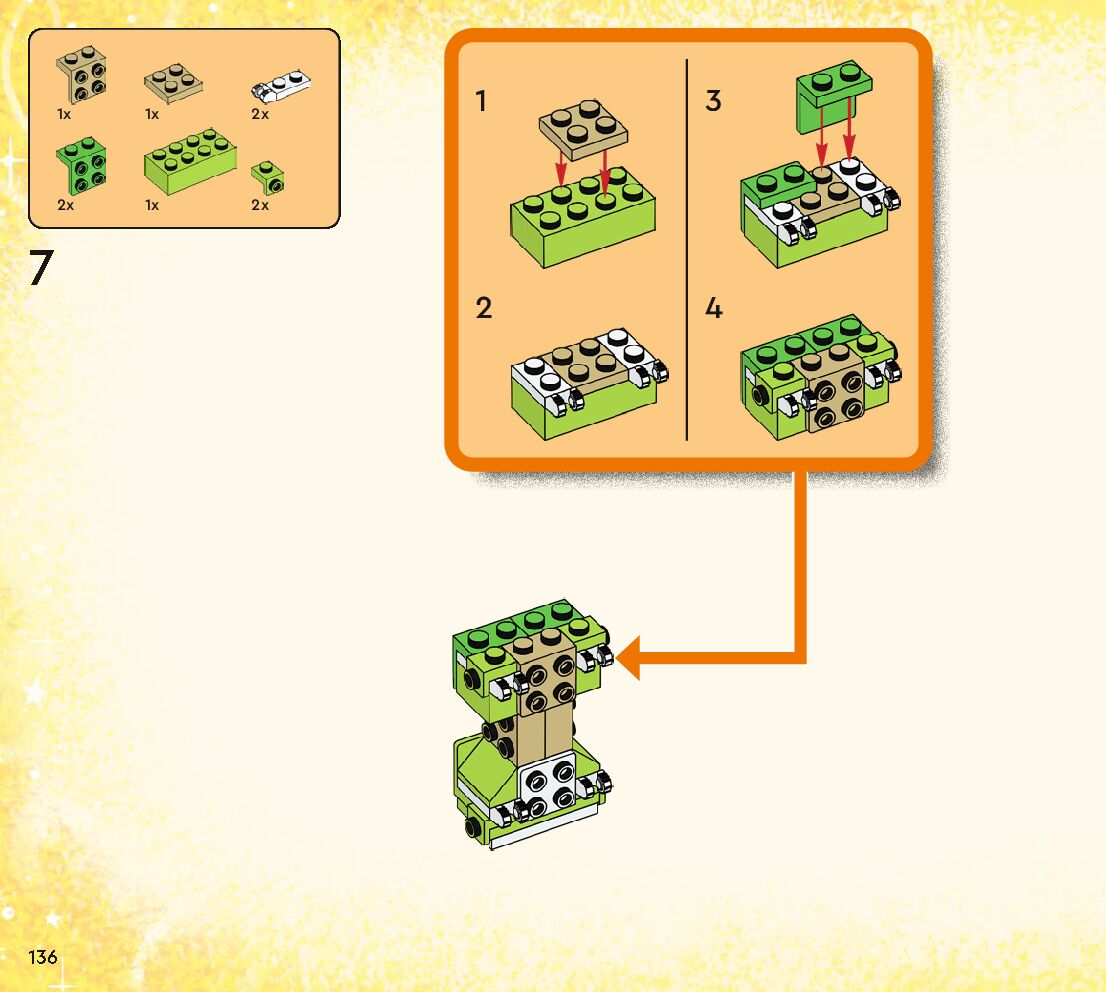 The assembly guide is prepared in a very understandable way for children and adult LEGO enthusiasts. A total of 184 picture galleries are shown, explaining the step-by-step construction stages for 1 different structures.