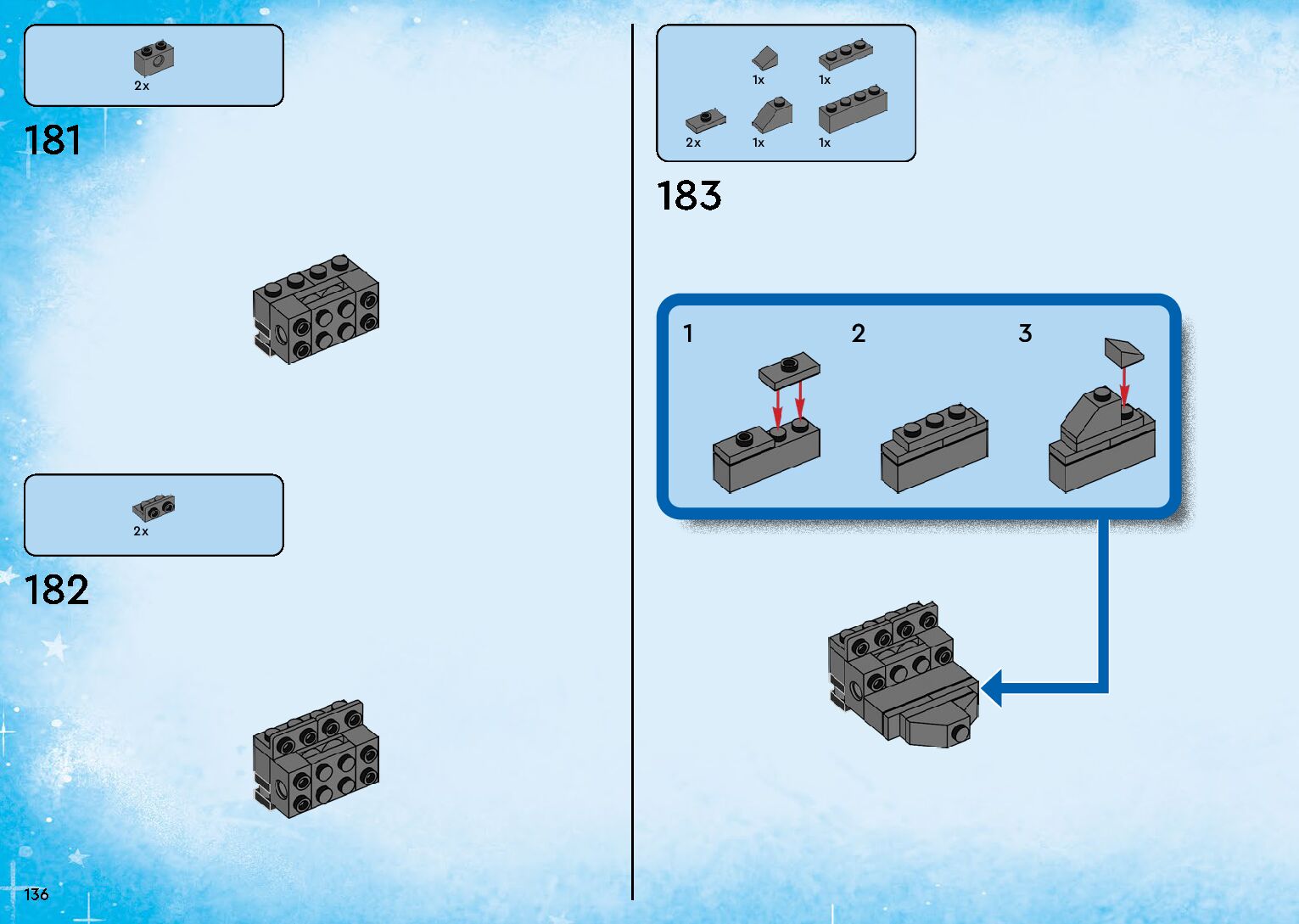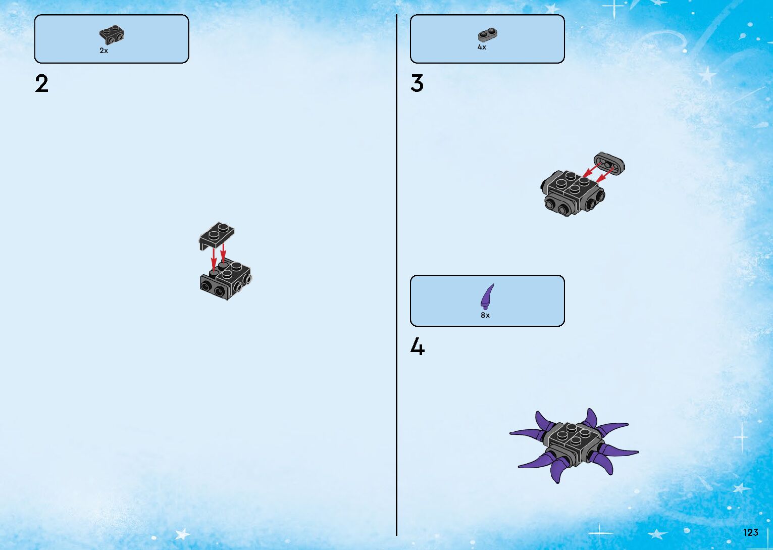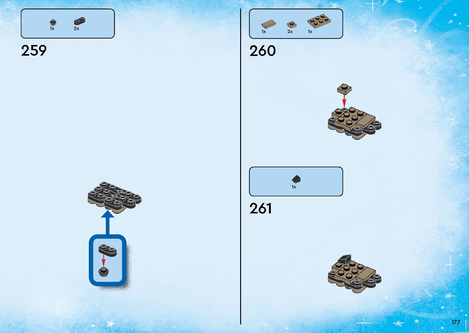 The assembly guide is prepared in a very understandable way for children and adult LEGO enthusiasts. A total of 264 picture galleries are shown, explaining the step-by-step construction stages for 1 different structures.