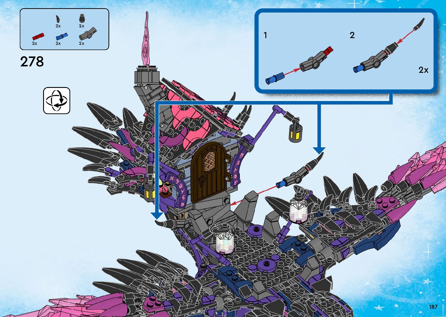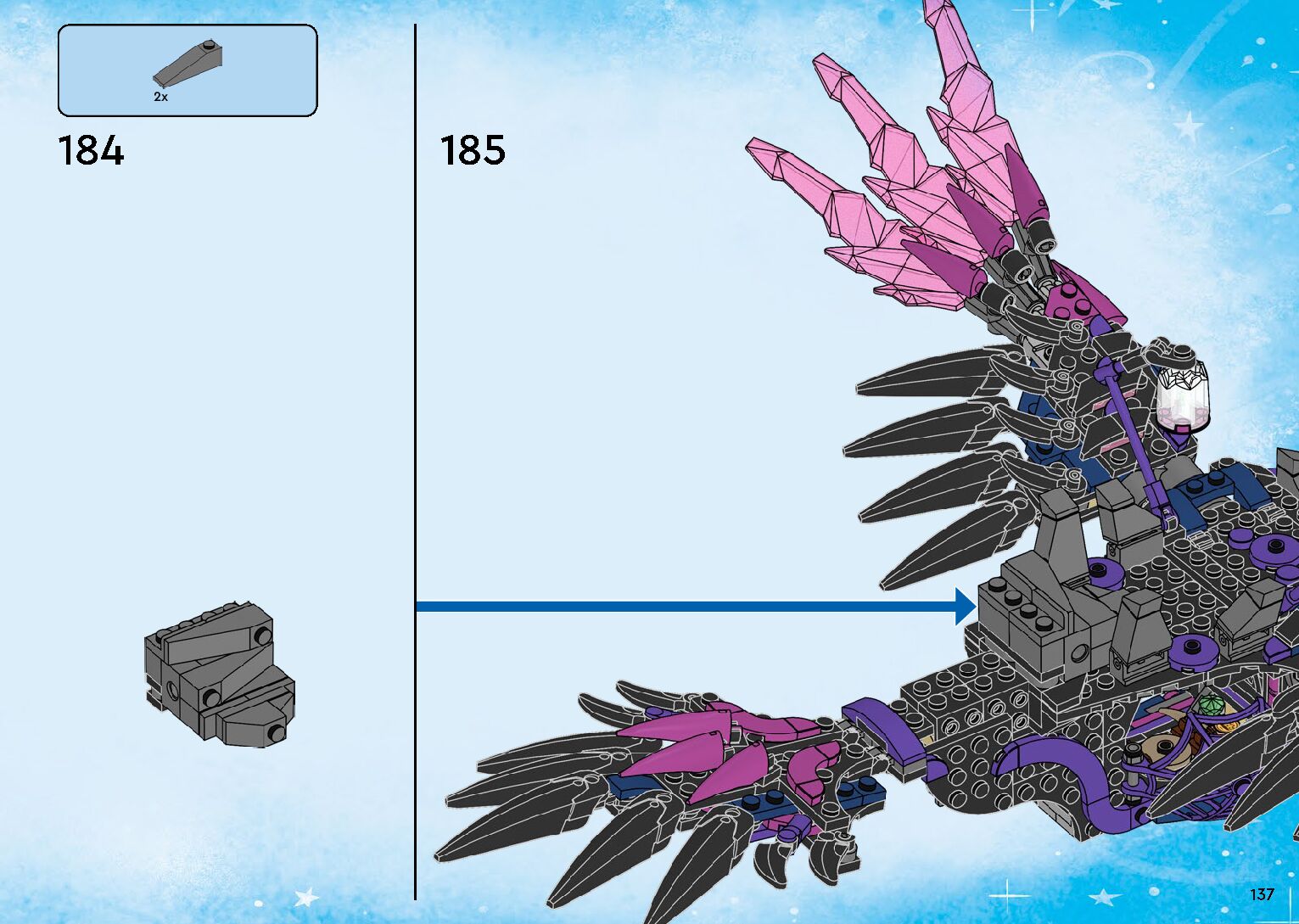 On this page you can find the original construction manual for the LEGO 71478 set. With the assembly manual you can easily learn how to build the 71478 The Never Witch's Midnight Raven step by step. The set was released in 2024.