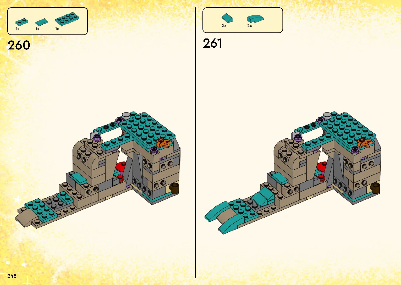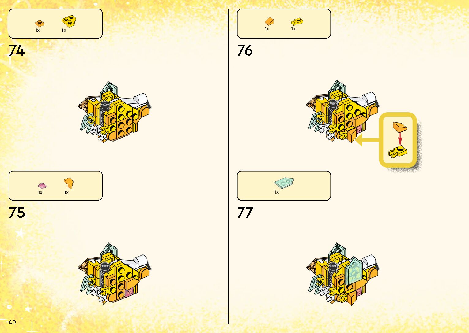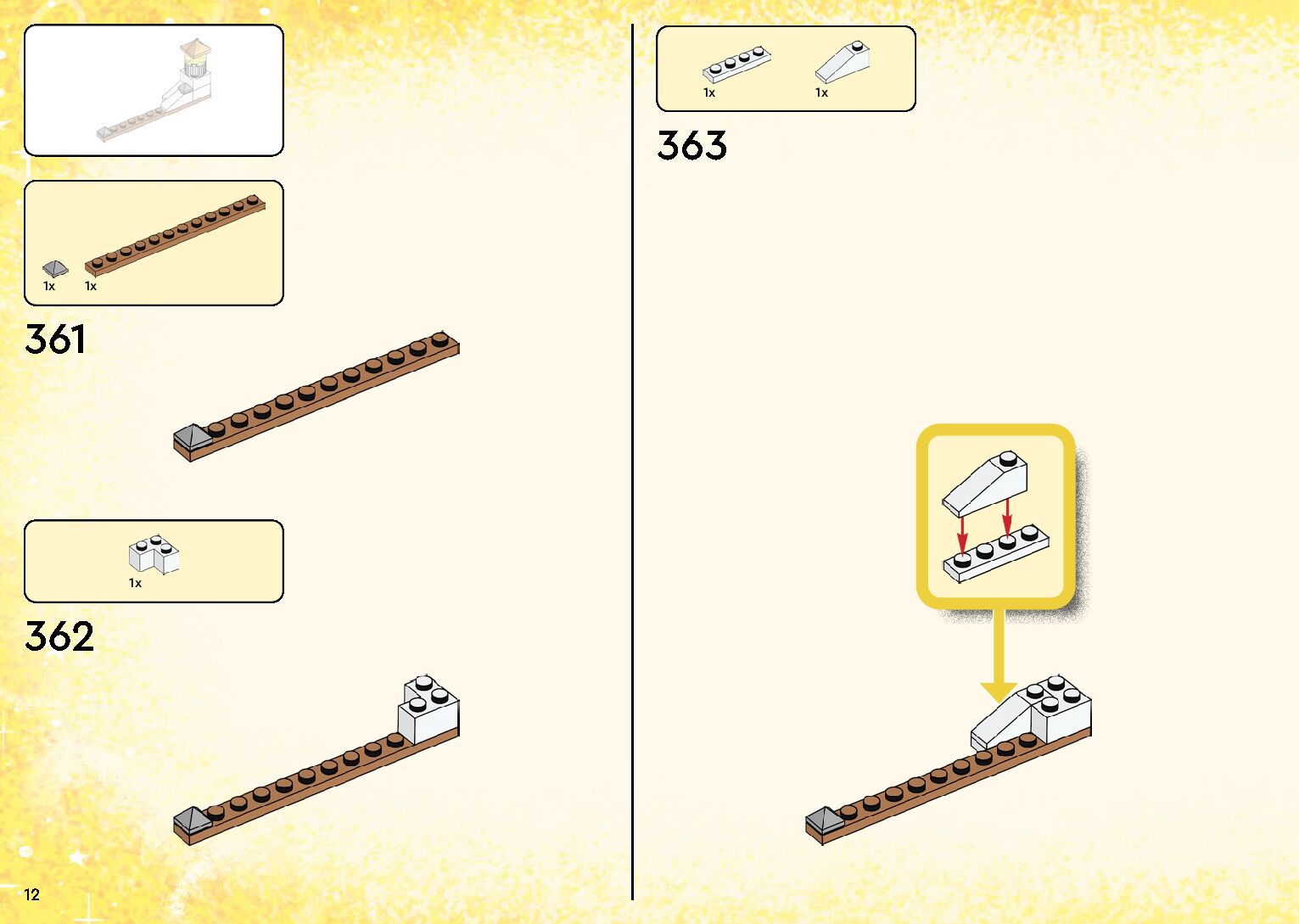 The assembly guide is prepared in a very understandable way for children and adult LEGO enthusiasts. A total of 472 picture galleries are shown, explaining the step-by-step construction stages for 2 different structures.