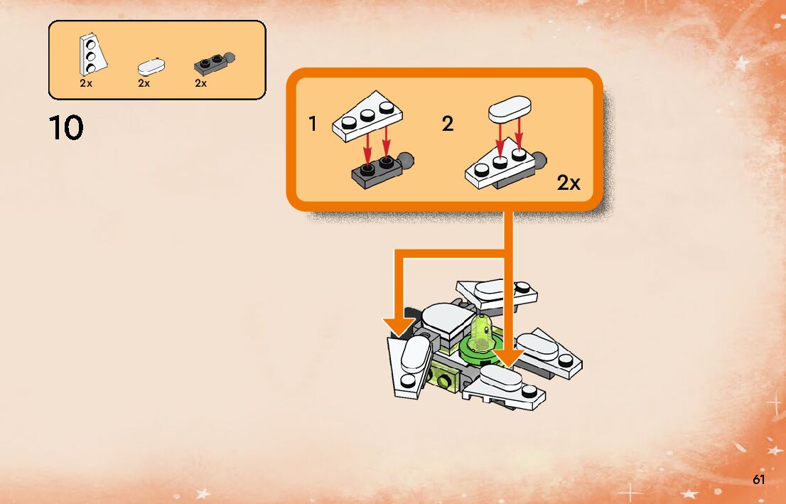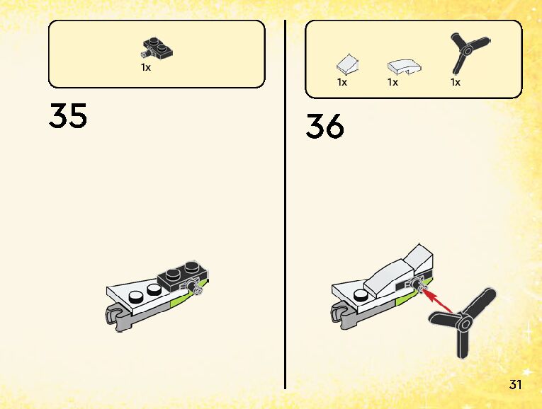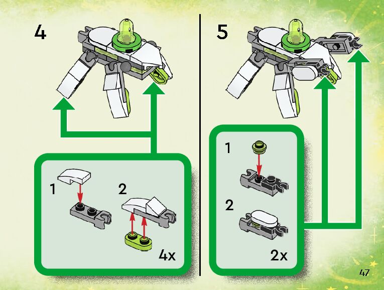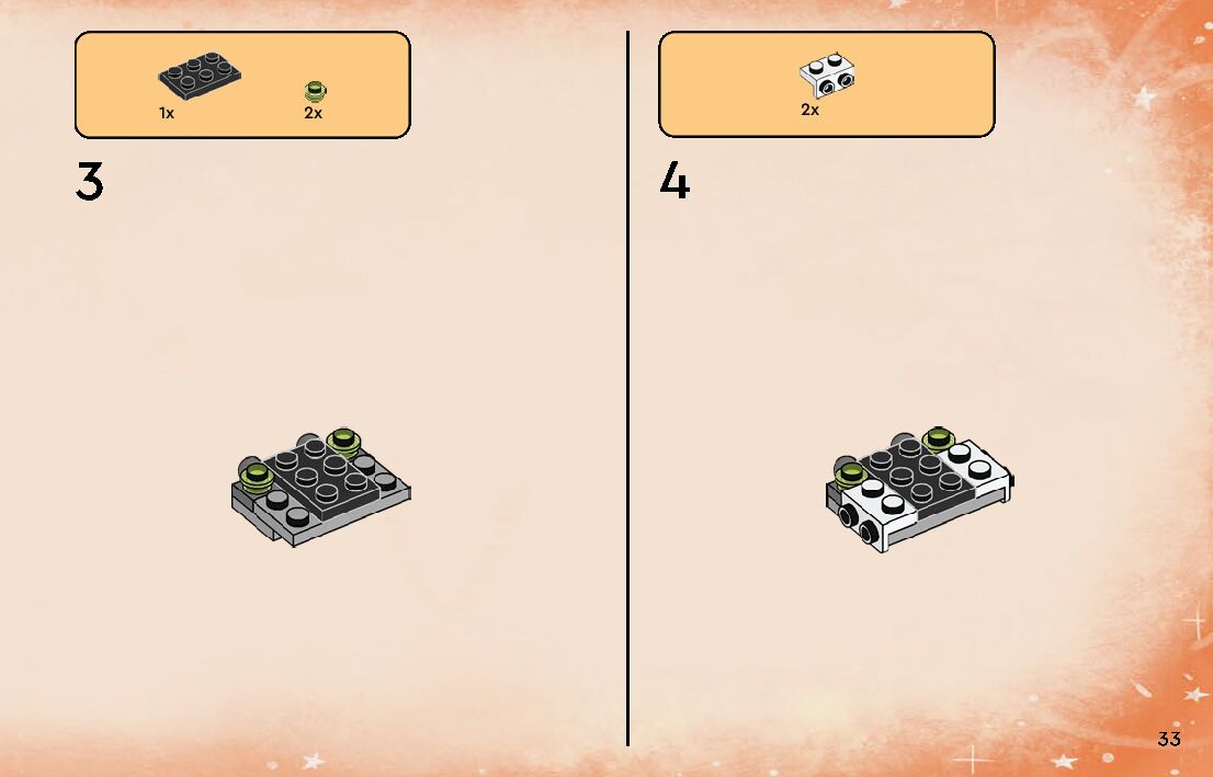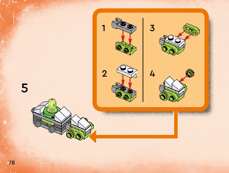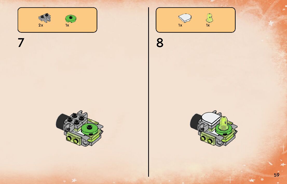 The assembly guide is prepared in a very understandable way for children and adult LEGO enthusiasts. A total of 152 picture galleries are shown, explaining the step-by-step construction stages for 2 different structures.