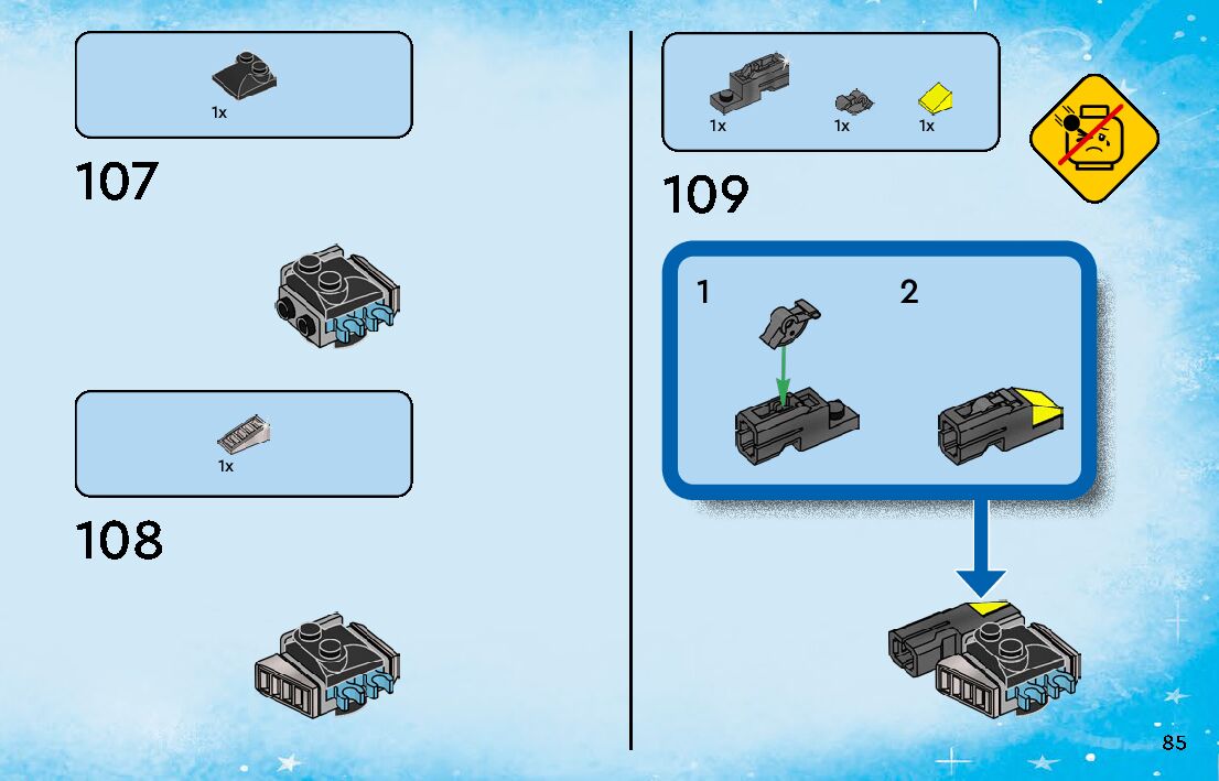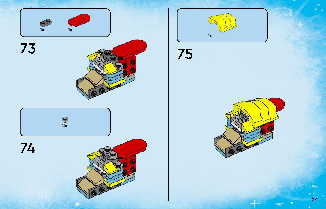 The assembly guide is prepared in a very understandable way for children and adult LEGO enthusiasts. A total of 132 picture galleries are shown, explaining the step-by-step construction stages for 1 different structures.