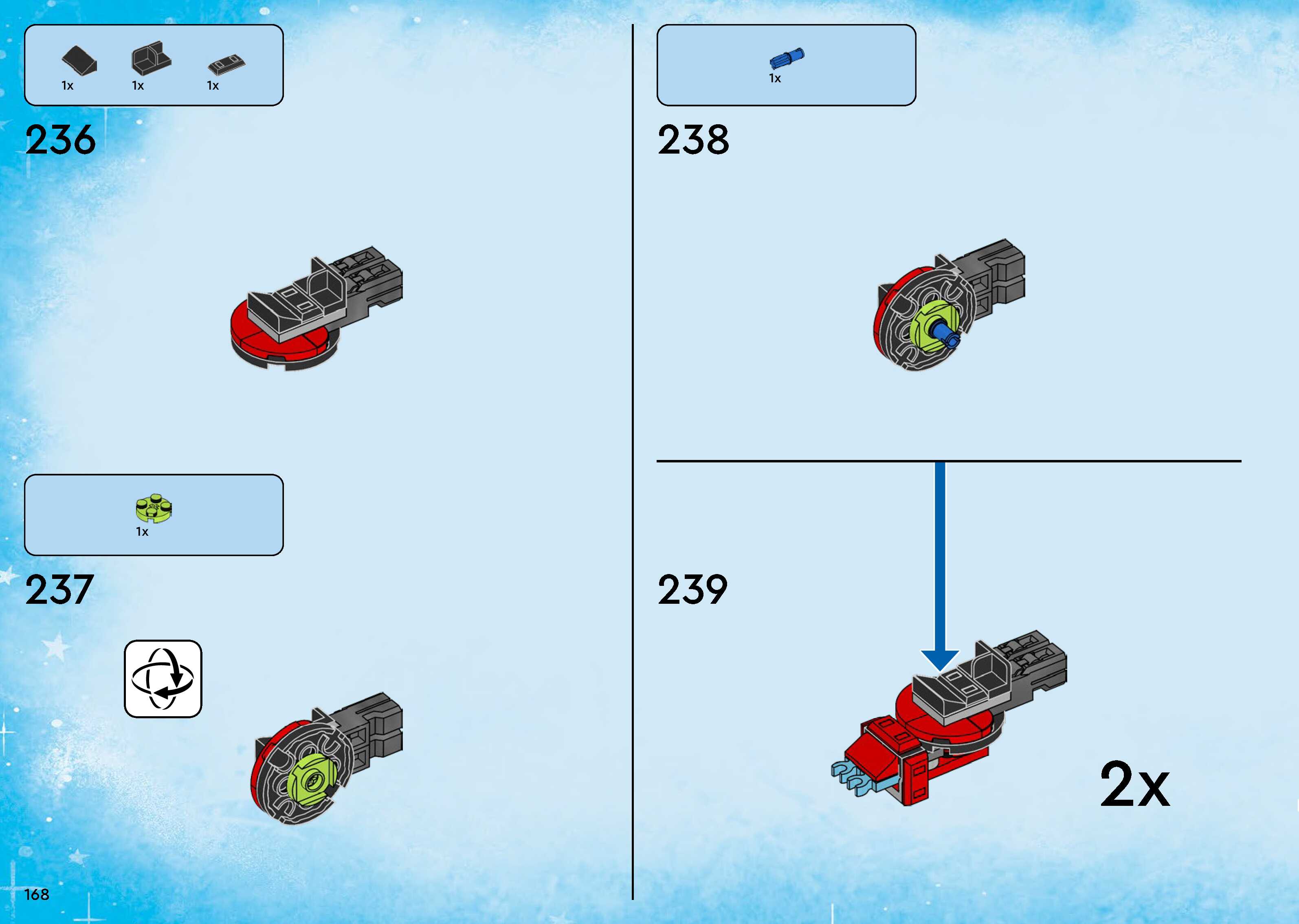 The assembly guide is prepared in a very understandable way for children and adult LEGO enthusiasts. A total of 236 picture galleries are shown, explaining the step-by-step construction stages for 1 different structures.
