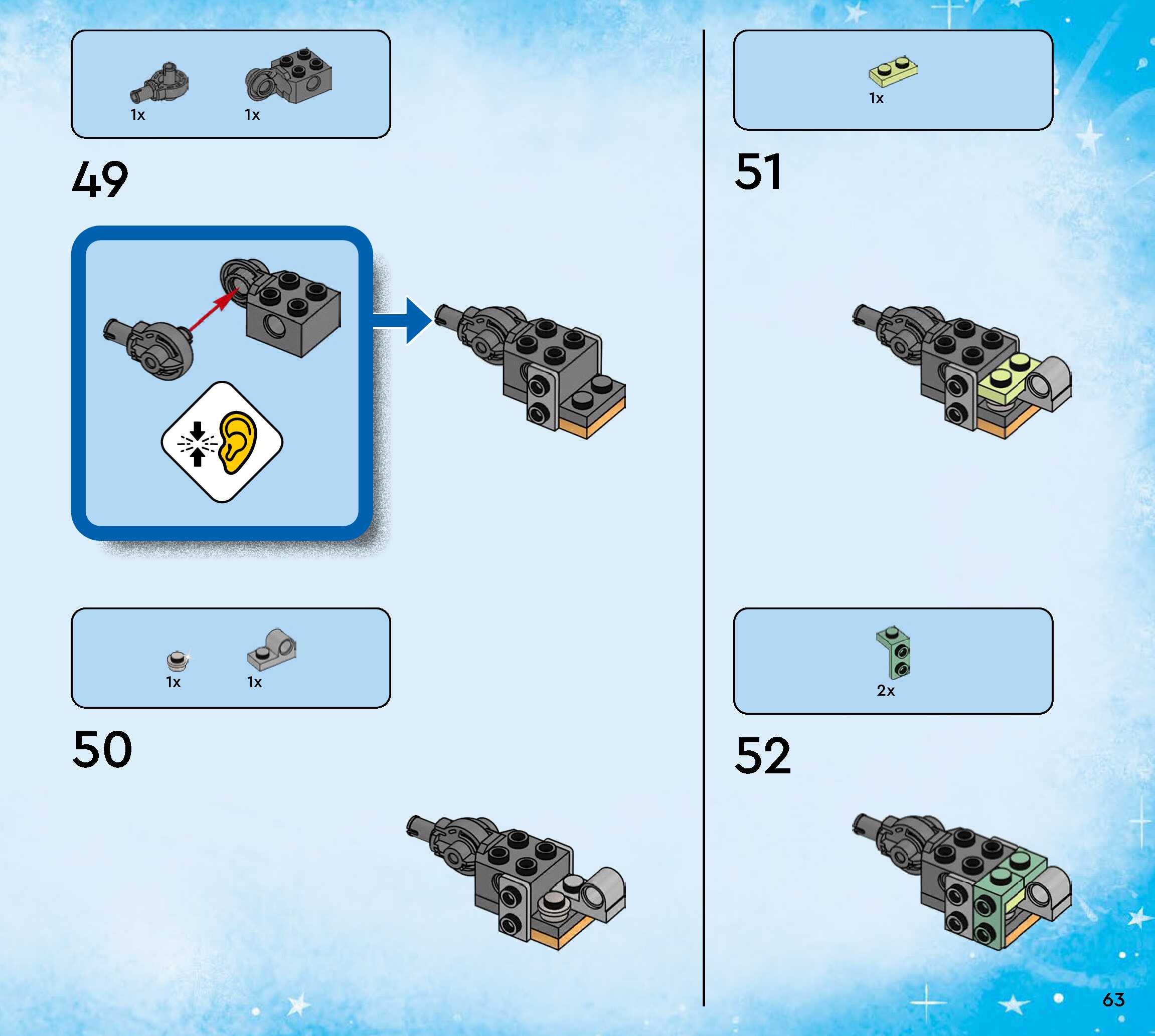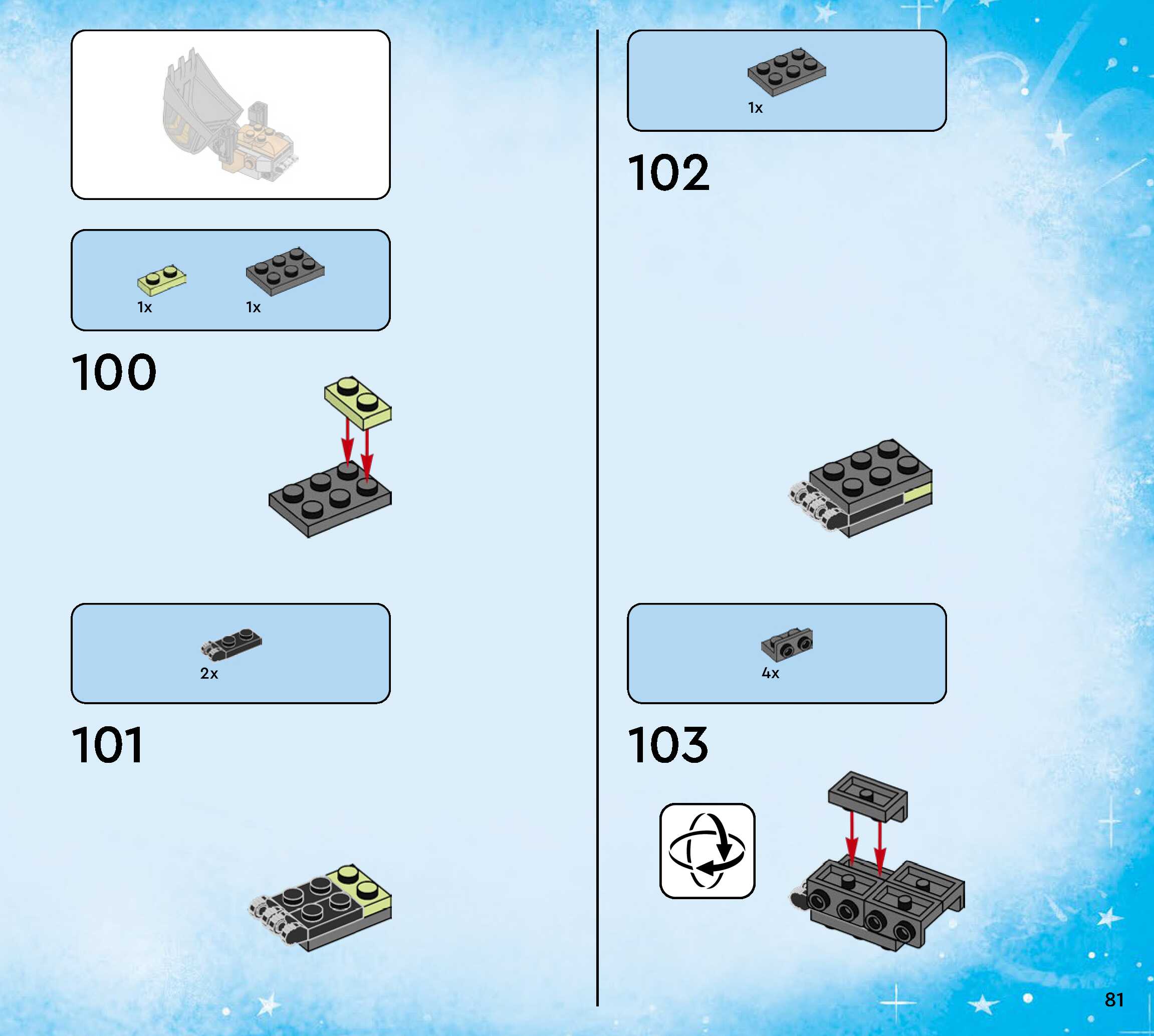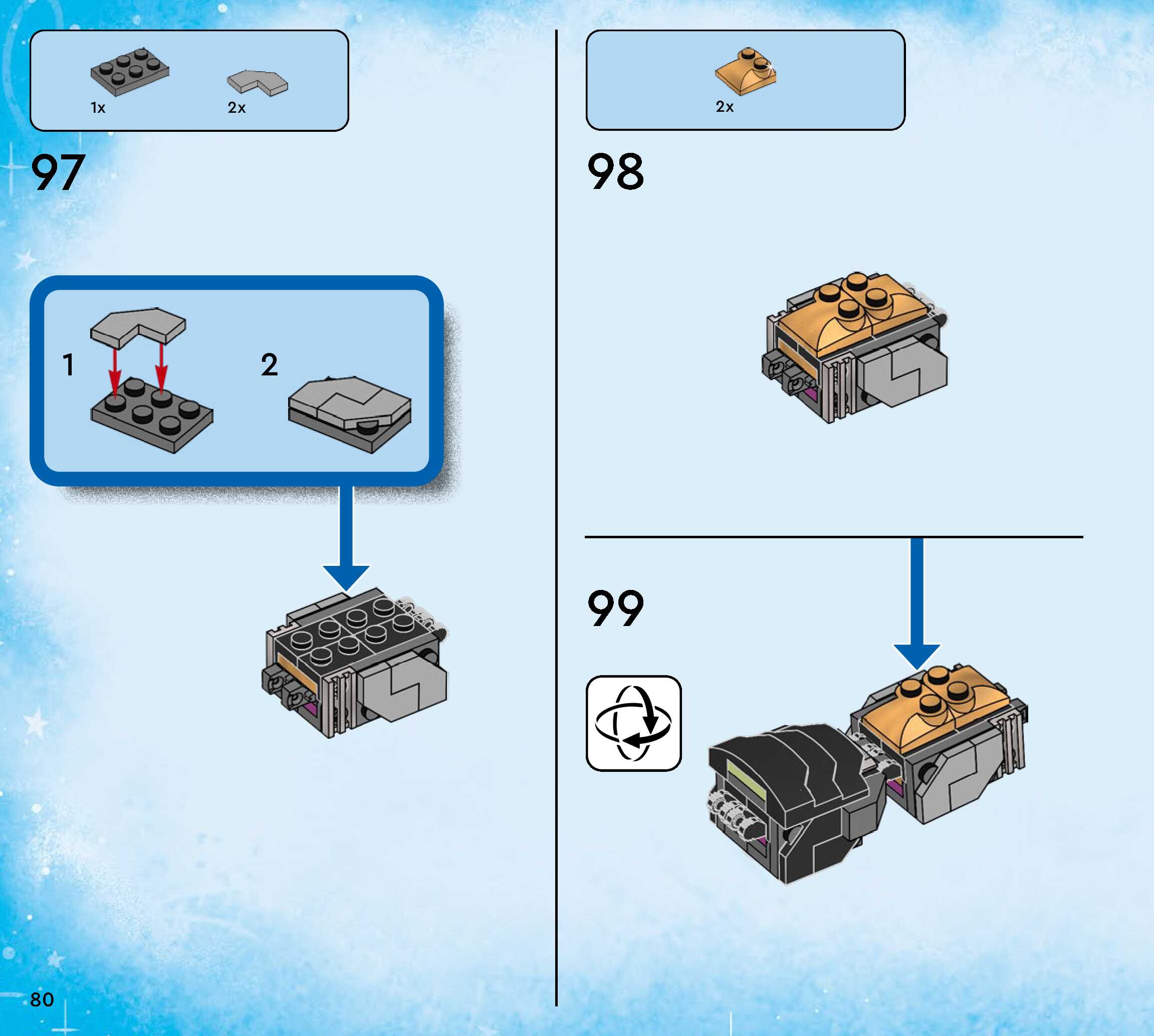 The assembly guide is prepared in a very understandable way for children and adult LEGO enthusiasts. A total of 164 picture galleries are shown, explaining the step-by-step construction stages for 1 different structures.