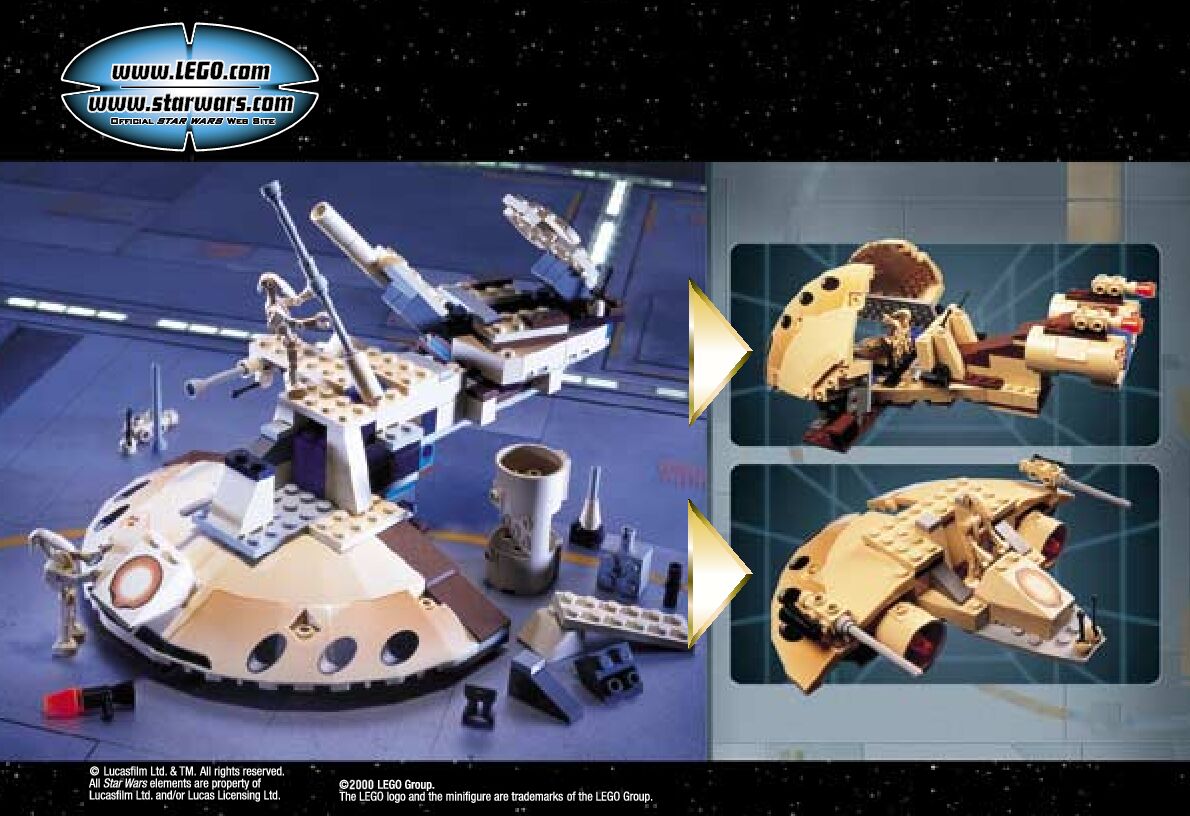 On this page you can find the original construction manual for the LEGO 7155 set. With the assembly manual you can easily learn how to build the 7155 Trade Federation AAT step by step. The set was released in 2000.