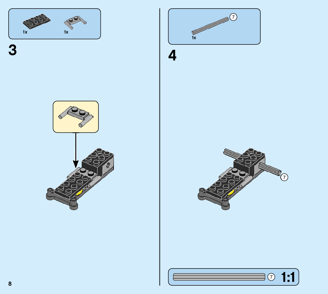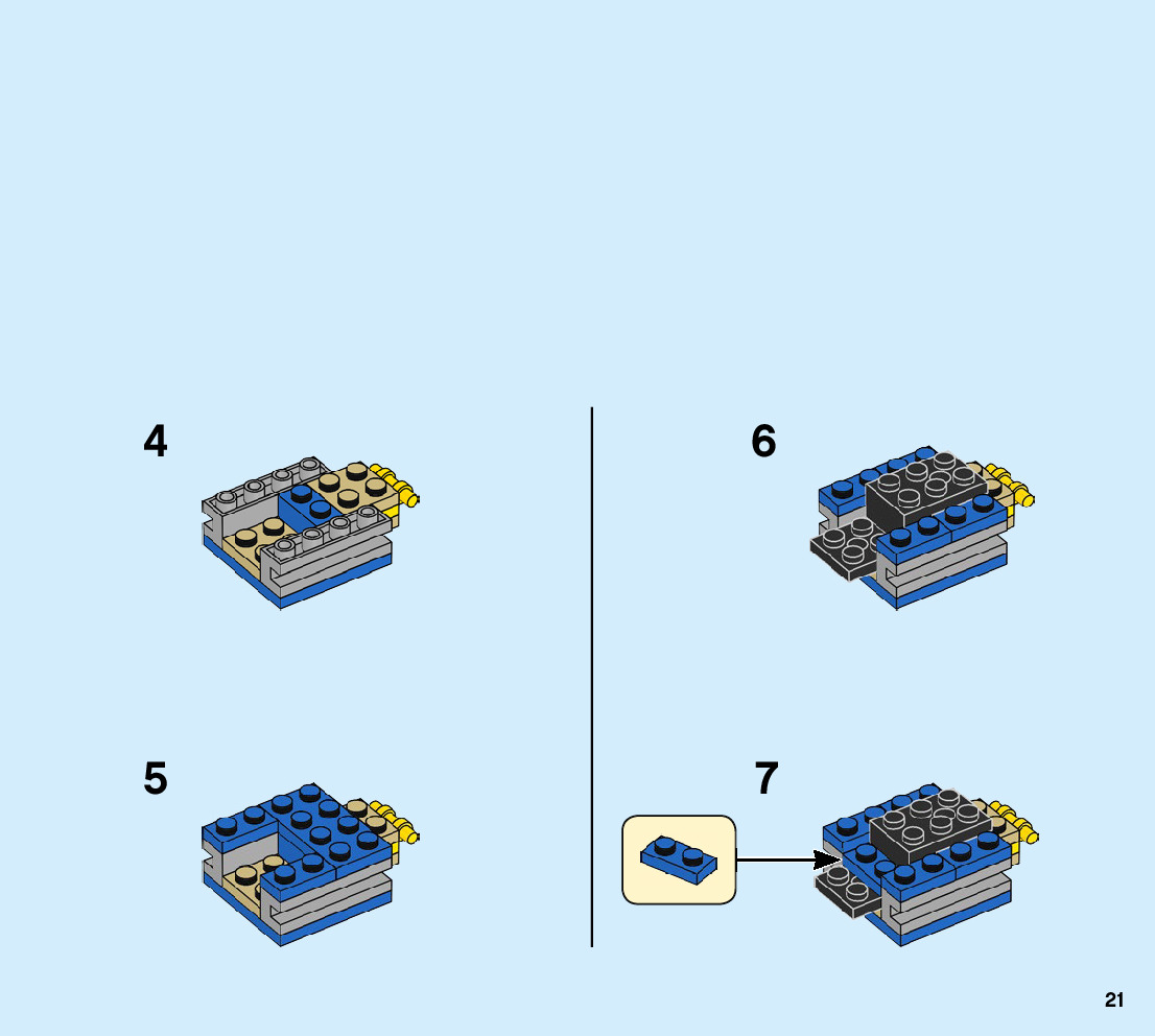 The assembly guide is prepared in a very understandable way for children and adult LEGO enthusiasts. A total of 148 picture galleries are shown, explaining the step-by-step construction stages for 2 different structures.