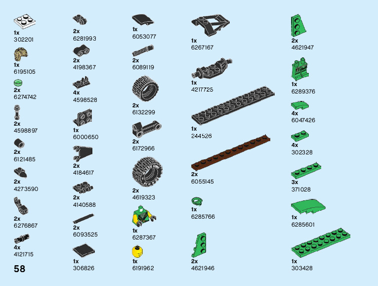 The assembly guide is prepared in a very understandable way for children and adult LEGO enthusiasts. A total of 60 picture galleries are shown, explaining the step-by-step construction stages for 1 different structures.